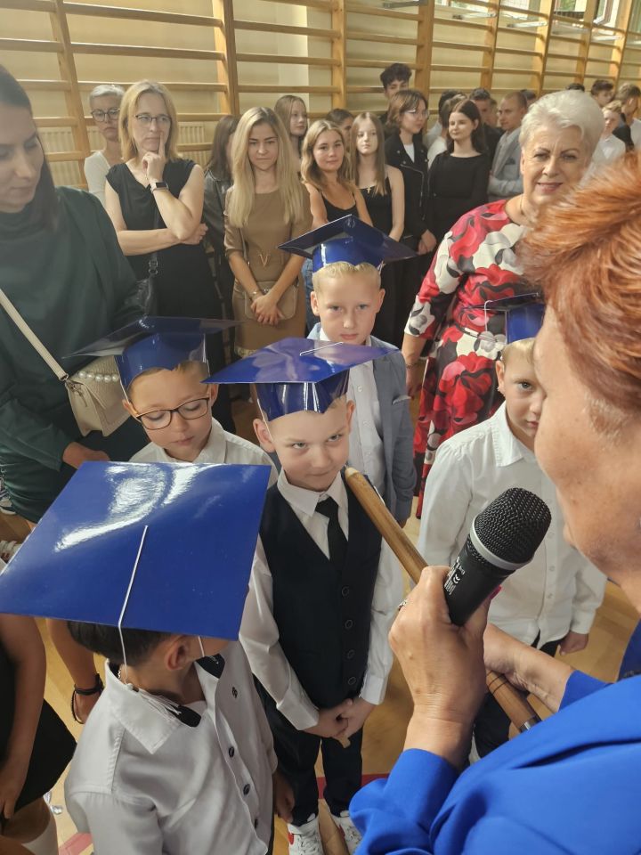 Już za Pierwszoklasistami miesiąc wytężonej pracy. Warto więc powrócić do dnia 1 września, kiedy odbyła się uroczystość pasowania na ucznia. Pierwszoklasiści zostali wówczas powitani w gronie społeczności szkolnej. Po złożeniu ślubowania i symbolicznym pasowaniu wielkim ołówkiem, otrzymali pamiątkowe dyplomy i drobne upominki. Uroczystość uświetnił występ uczniów klas czwartych. To był wyjątkowy i radosny dzień, pełen oczekiwań co przyniesie jutro.