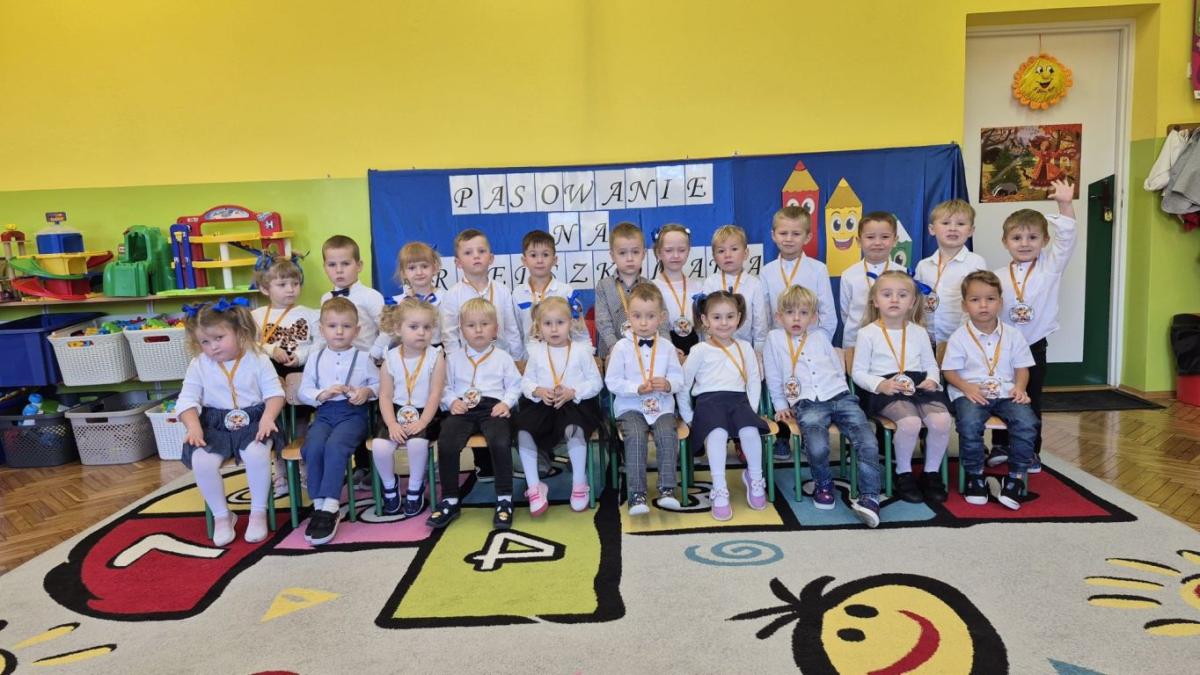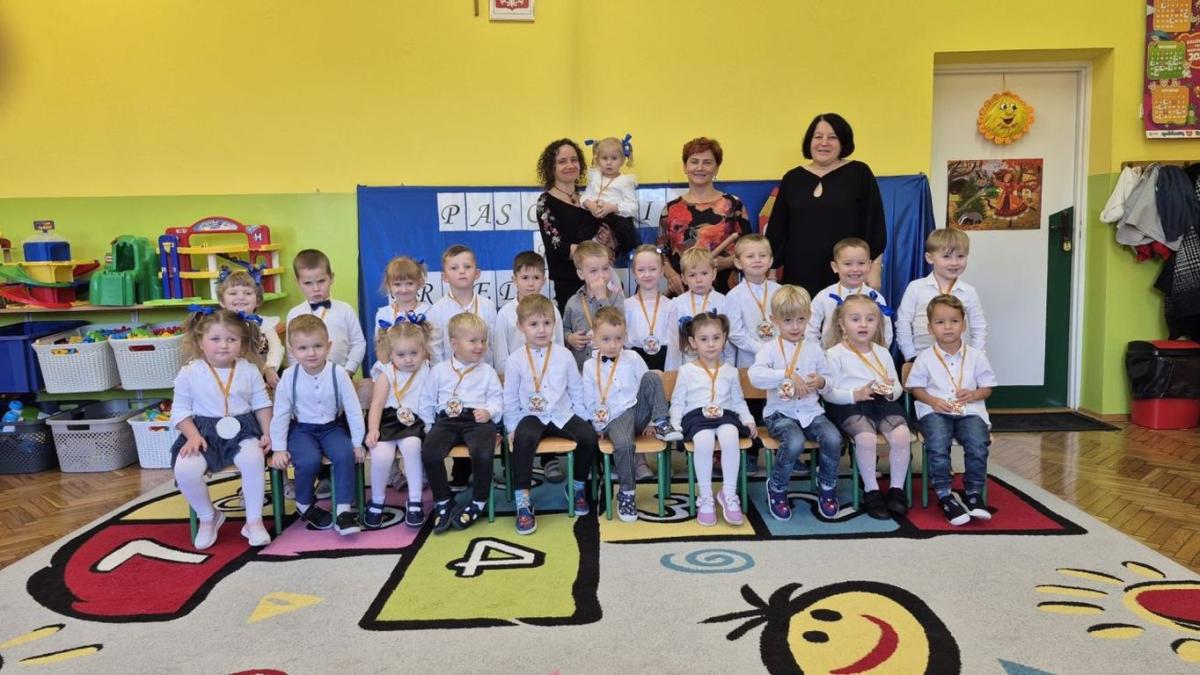 Dnia 23 października w grupie Słoneczka odbyła się wielka uroczystość „Pasowanie na Przedszkolaka”. Dzieci wystąpiły z programem artystycznym, a rodzice przygotowali słodki poczęstunek. Po części artystycznej dzieci złożyły przyrzeczenie i zostały oficjalnie przez Panią Dyrektor przyjęte do społeczności przedszkolnej. Na pamiątkę Słoneczka otrzymały medale i upominek.