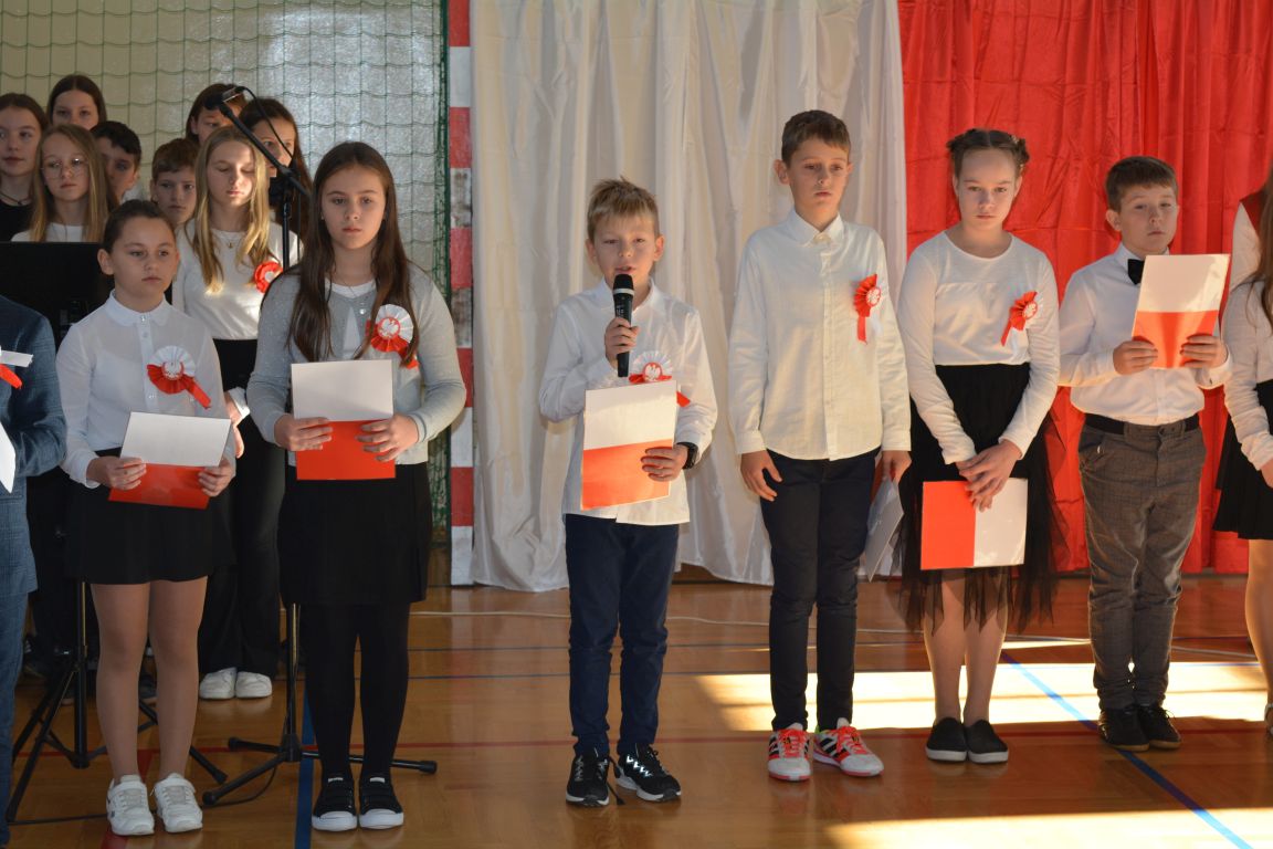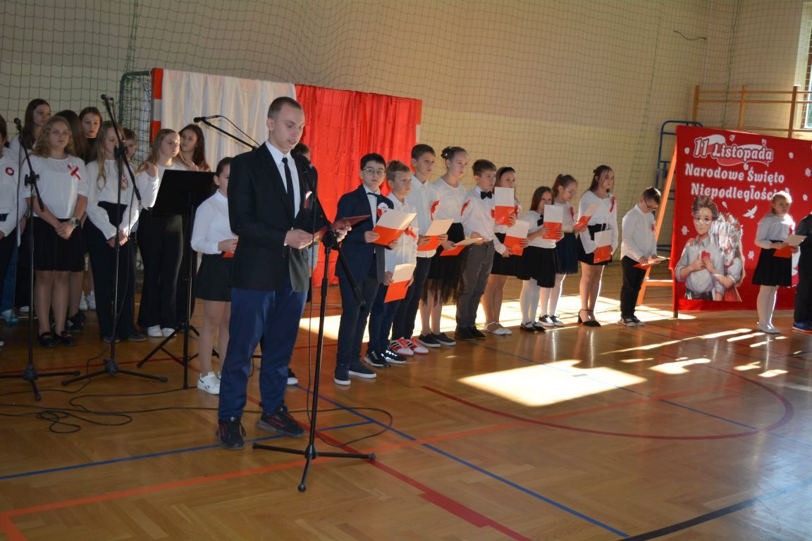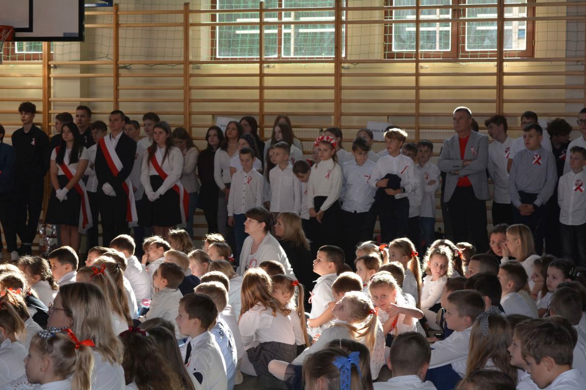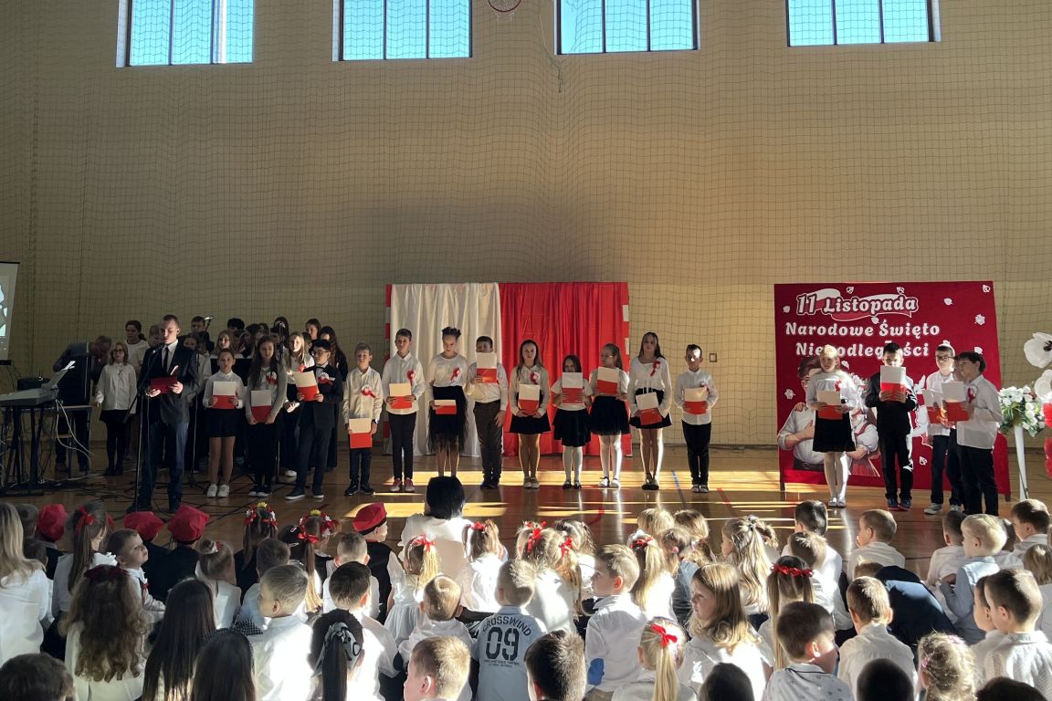 W dniu 07.11.2025 r. z okazji Narodowego Święta Niepodległości społeczność naszej szkoły wzięła udział w ogólnopolskiej akcji „Szkoła do hymnu”, wspólnie śpiewając „Mazurka Dąbrowskiego”. Następnie odbyła się uroczysta akademia, podczas której uczniowie ukazali trudną drogę Polaków do wolności. Recytacje, pieśni patriotyczne przypomniały nam, jak cenna jest wolność i jak ważna jest pamięć o tych, którzy o nią walczyli. Akademię przygotowała młodzież wraz z opiekunami - p. A. Januś, p. L. Woch, p. W. Szarowiczem i p. M. Kawą.