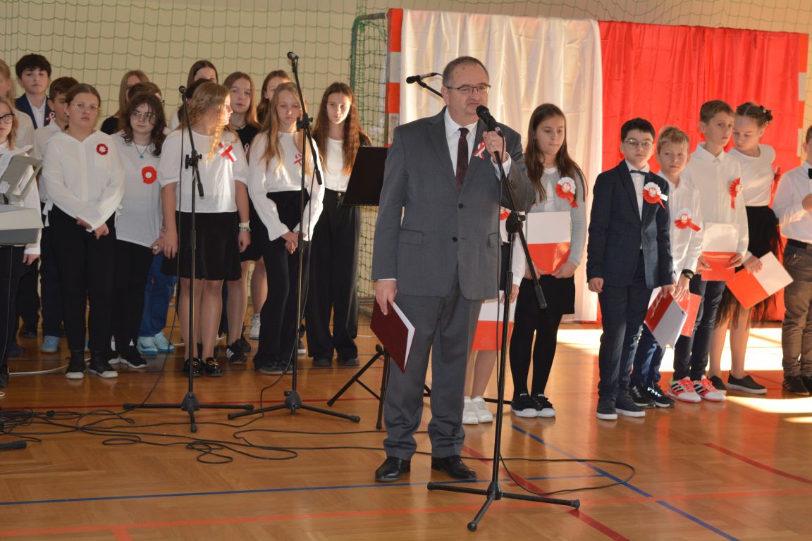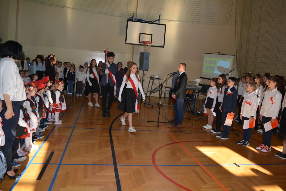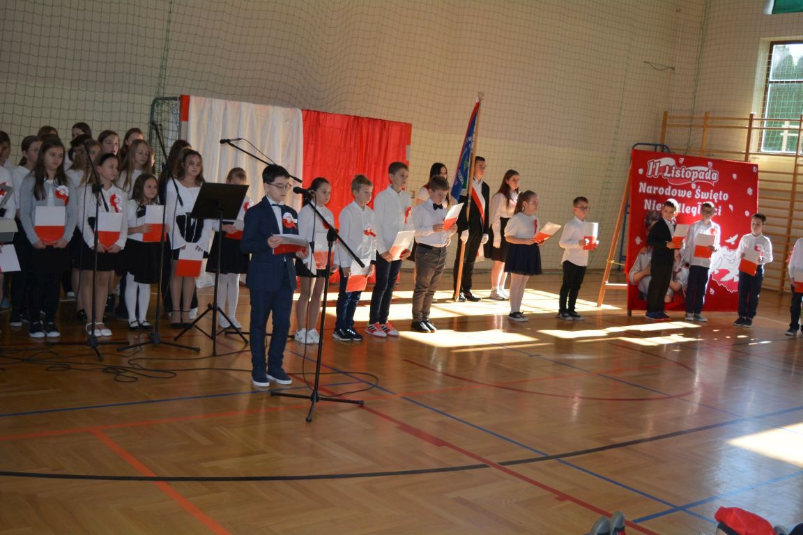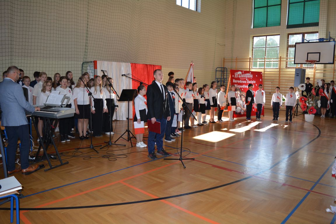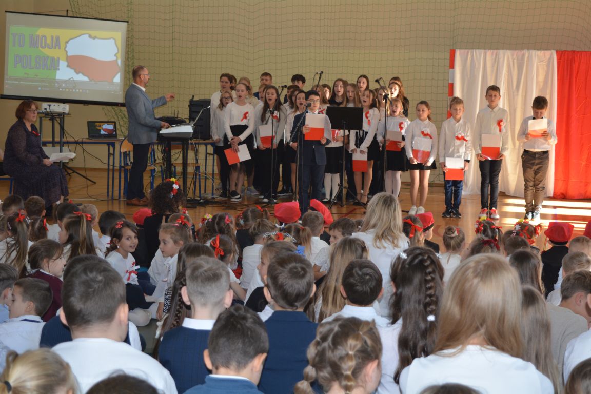 W dniu 07.11.2025 r. z okazji Narodowego Święta Niepodległości społeczność naszej szkoły wzięła udział w ogólnopolskiej akcji „Szkoła do hymnu”, wspólnie śpiewając „Mazurka Dąbrowskiego”. Następnie odbyła się uroczysta akademia, podczas której uczniowie ukazali trudną drogę Polaków do wolności. Recytacje, pieśni patriotyczne przypomniały nam, jak cenna jest wolność i jak ważna jest pamięć o tych, którzy o nią walczyli. Akademię przygotowała młodzież wraz z opiekunami - p. A. Januś, p. L. Woch, p. W. Szarowiczem i p. M. Kawą.