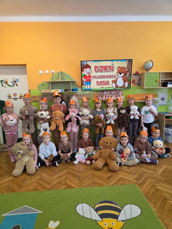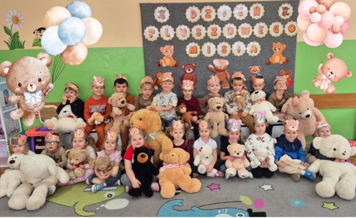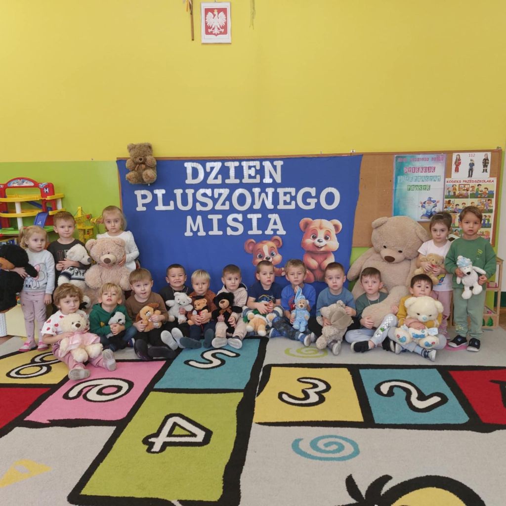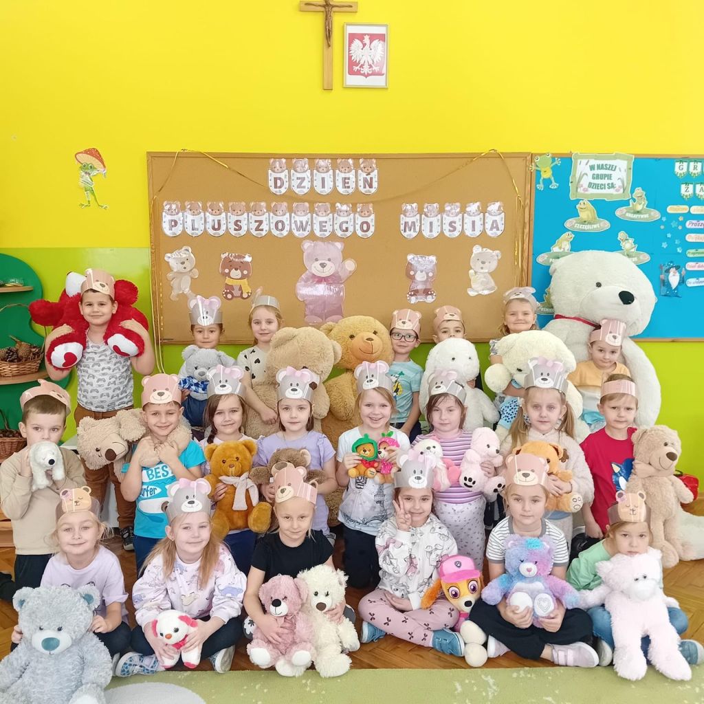 . Dzieci przyszły do przedszkola ze swoimi ukochanymi pluszakami, które towarzyszyły im przez cały dzień. Przedszkolaki brały udział w różnorodnych zabawach ruchowych i muzycznych, wspólnie śpiewały piosenki oraz tańczyły do ulubionych melodii. Nie zabrakło również zagadek, puzzli i układanek związanych z pluszowymi bohaterami. Podczas zajęć dzieci poznały historię powstania pluszowego misia. Był to dzień pełen uśmiechu, ciepła i dobrej zabawy.