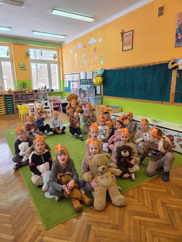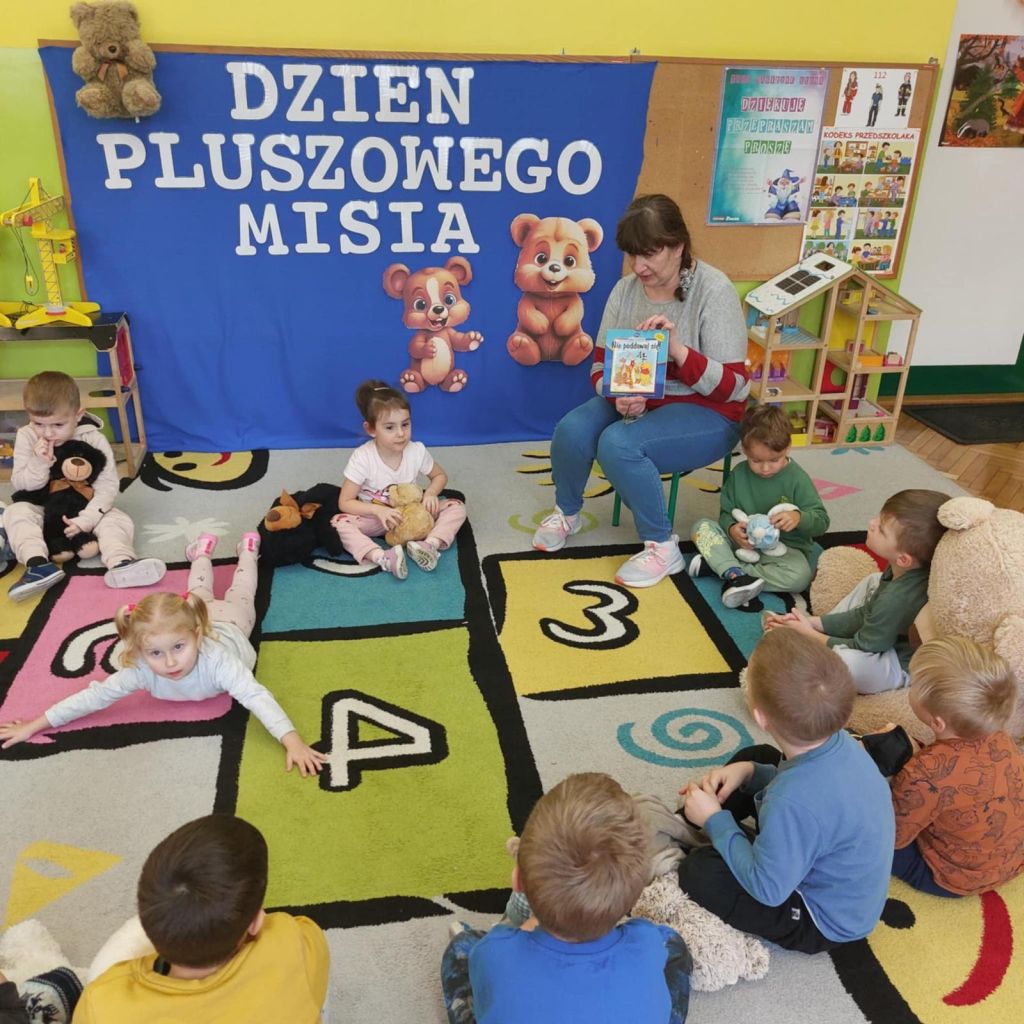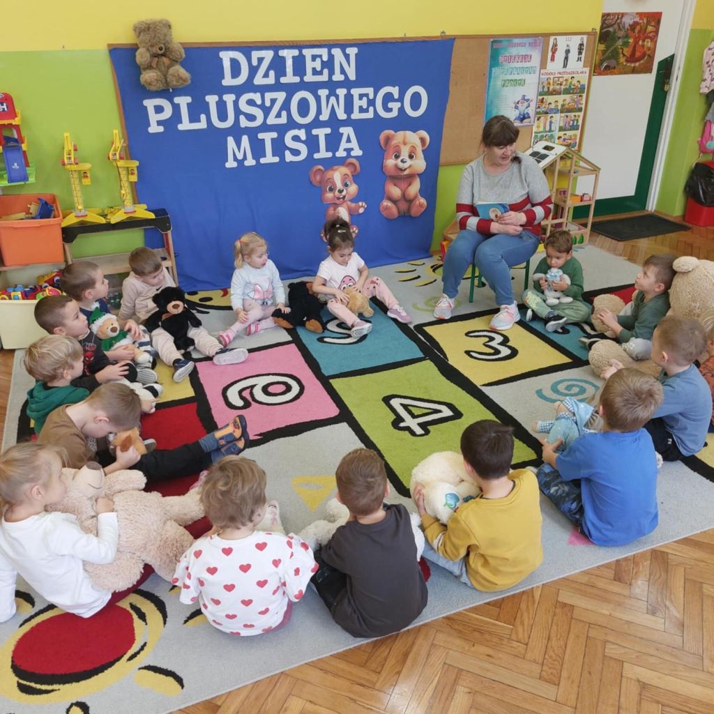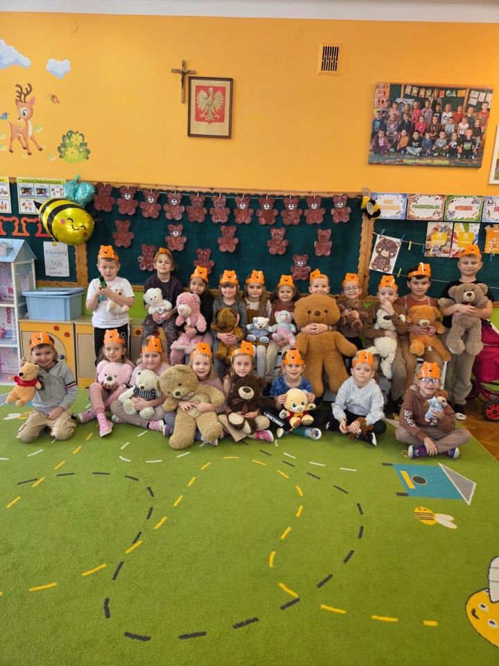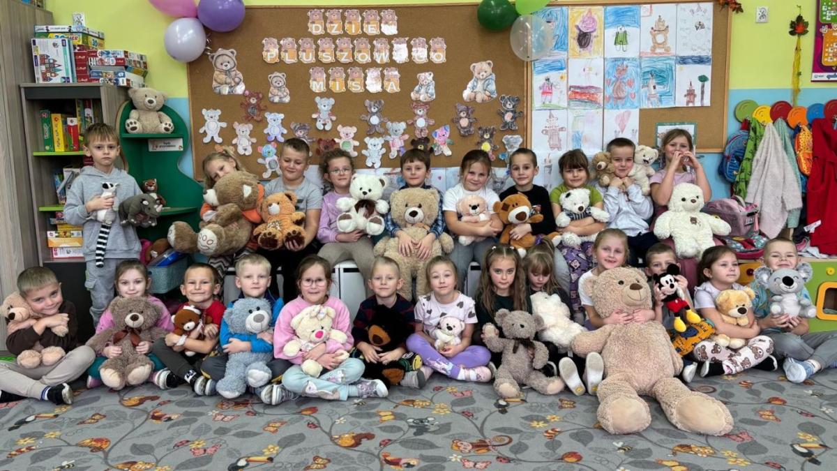 . Dzieci przyszły do przedszkola ze swoimi ukochanymi pluszakami, które towarzyszyły im przez cały dzień. Przedszkolaki brały udział w różnorodnych zabawach ruchowych i muzycznych, wspólnie śpiewały piosenki oraz tańczyły do ulubionych melodii. Nie zabrakło również zagadek, puzzli i układanek związanych z pluszowymi bohaterami. Podczas zajęć dzieci poznały historię powstania pluszowego misia. Był to dzień pełen uśmiechu, ciepła i dobrej zabawy.
