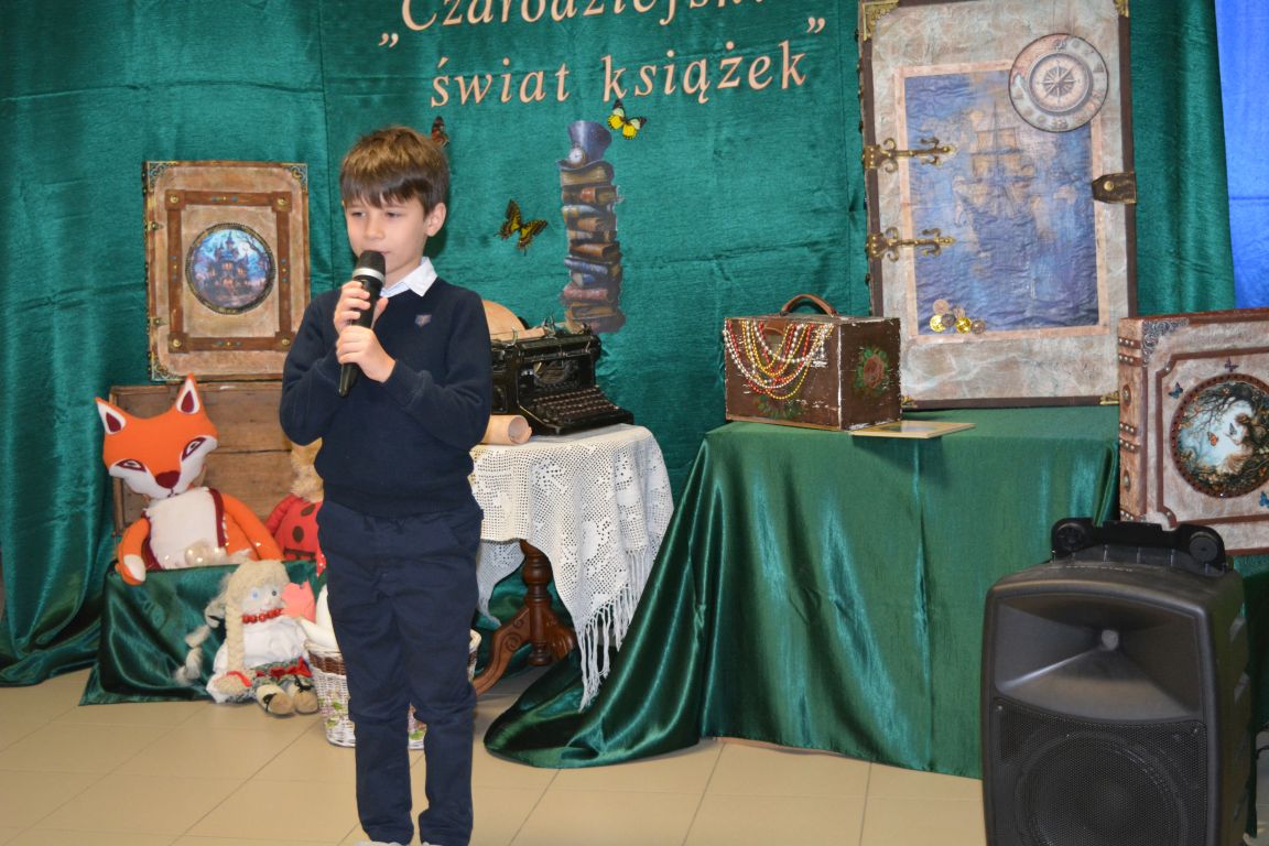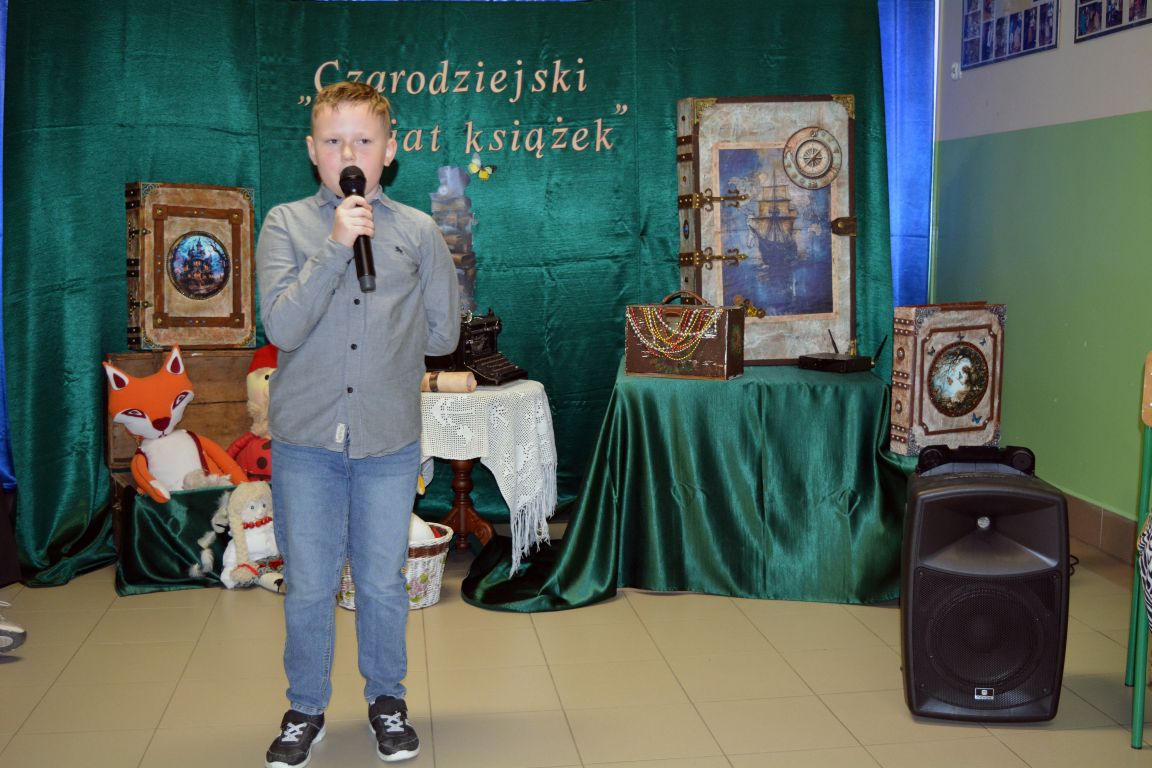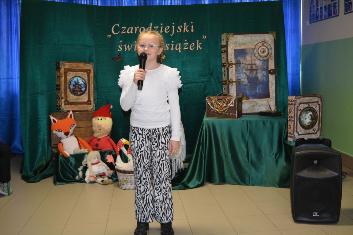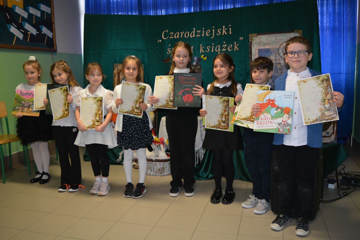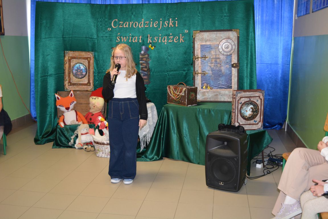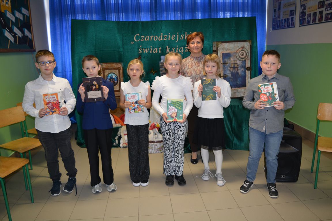 2 i 3 grudnia 2025 roku odbył się zorganizowany przez bibliotekę szkolną konkurs recytatorski, w którym udział wzięli uczniowie z klas I- IV. Konkurs ph. „Czarodziejski świat książek” poświęcony był książkom i czytaniu. Celem konkursu było kształtowanie wrażliwości na piękno języka polskiego oraz rozwijanie umiejętności językowych najmłodszych uczestników. Udział w nim wzięło aż 26 utalentowanych recytatorów, a rywalizacja była naprawdę zacięta. Zadanie jury było niezwykle trudne, ale po długich i burzliwych naradach, udało się wyłonić najlepszych z najlepszych. Oto wyniki: