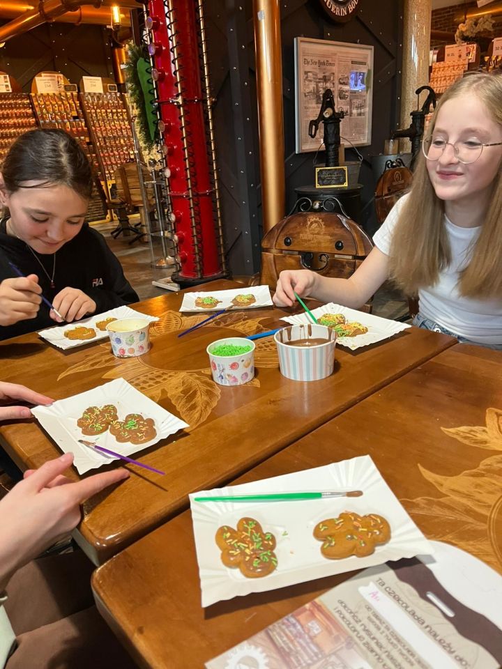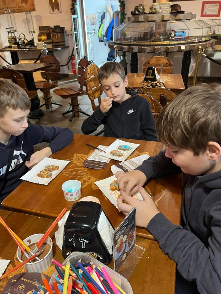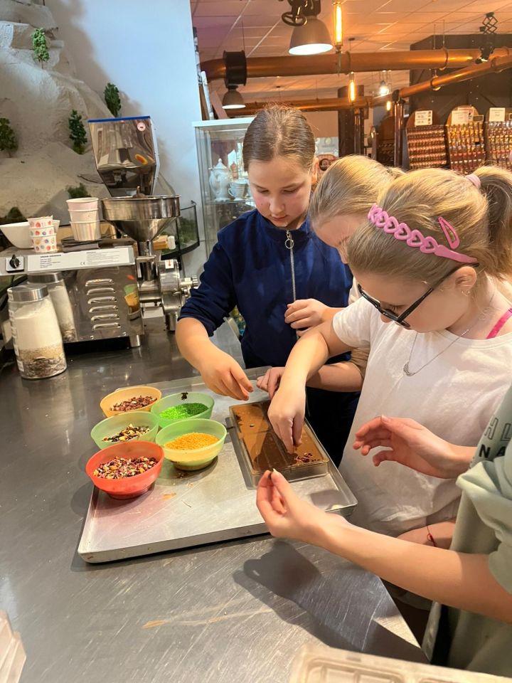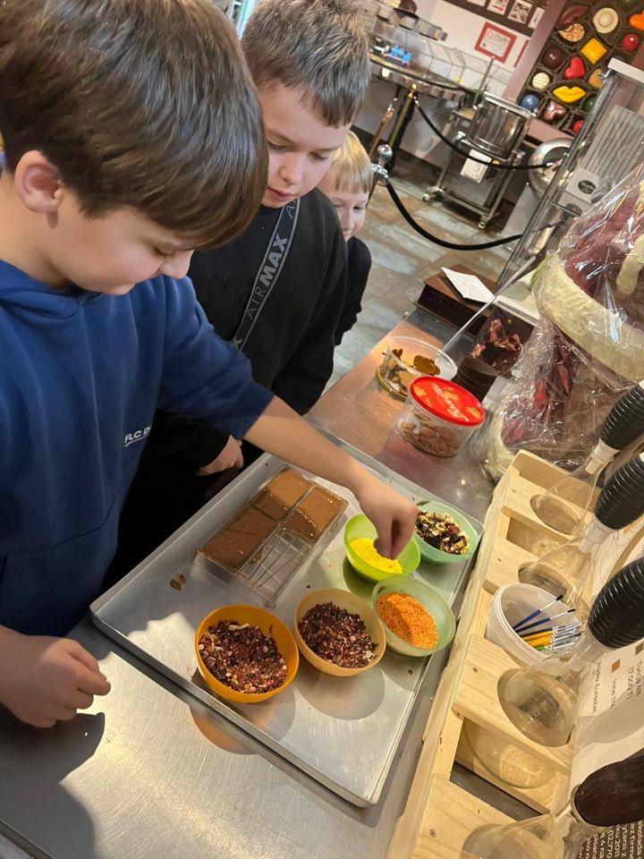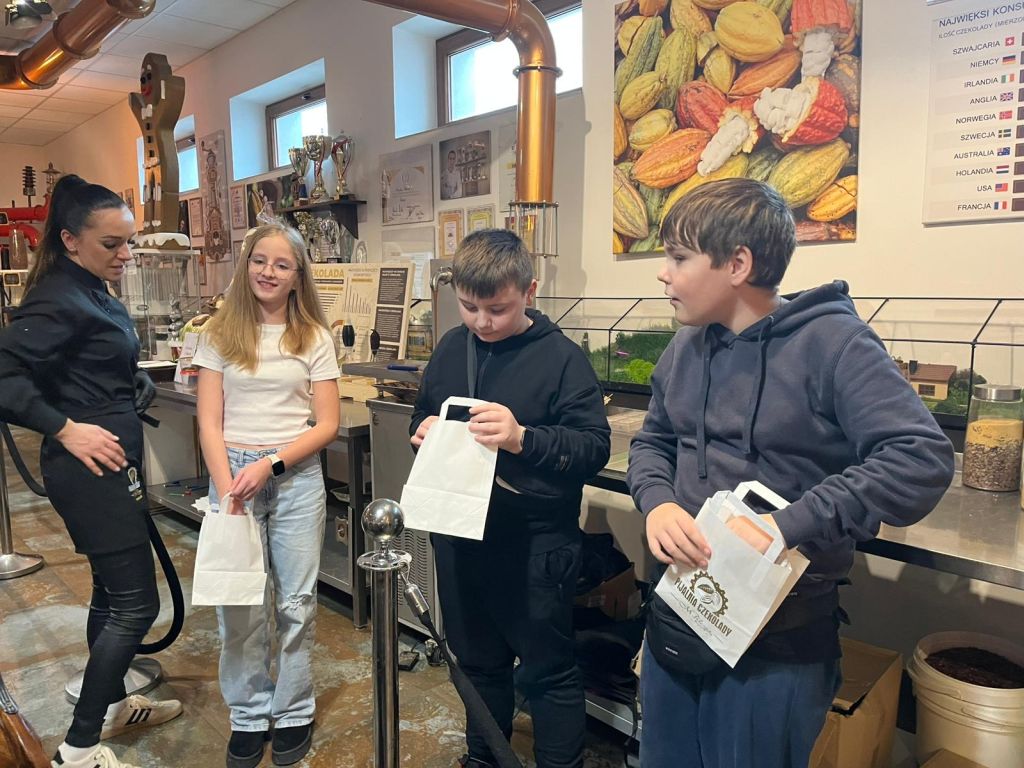 Podczas tej wyjątkowej wyprawy do fabryki czekolady, uczniowie poznali proces powstawania smakołyku oraz degustowali różne rodzaje czekolad. W sali kinowej podczas seansu filmowego zapoznali się z procesem wydobywania kabosów, poszczególnymi etapami tworzenia czekolady, od ziarenka kakaowca aż po dotarcie produktu na półki sklepowe. Dzieci brały udział w warsztatach tworzenia tego słodkiego przysmaku oraz ozdabiali pierniczki. Nie zabrakło również spotkania z Mikołajem oraz prezentów, niespodzianek i konkursów.