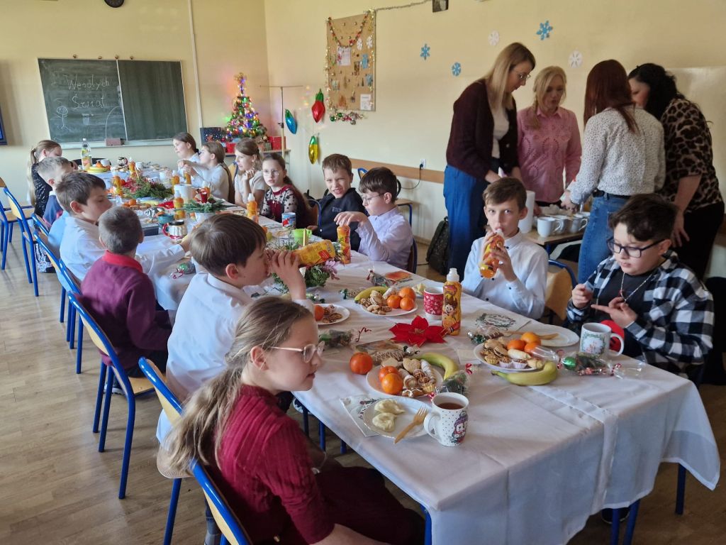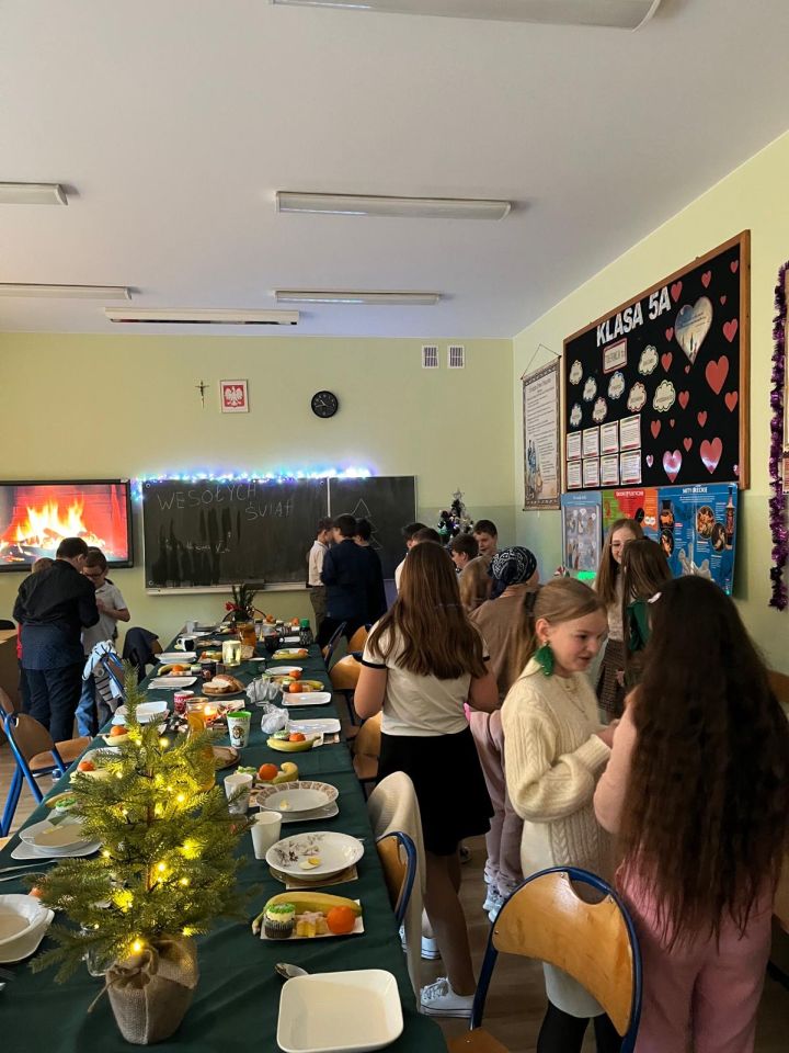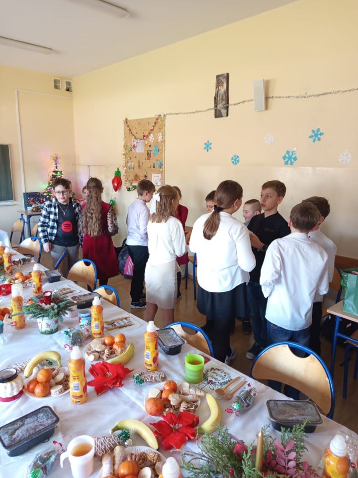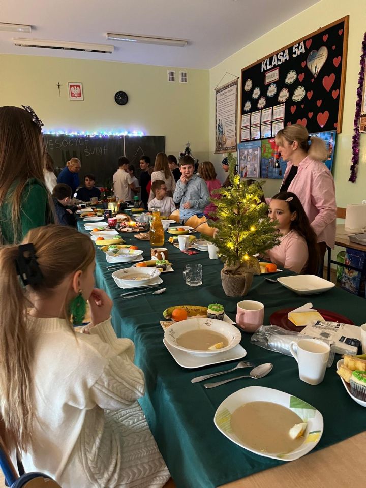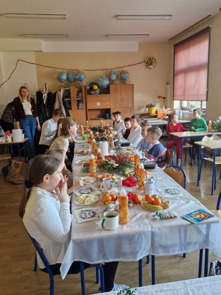 W dniach 17 grudnia i 18 grudnia 2025 roku odbyły się Wigilie klasy 4a oraz klasy 5a. Stoły przystrojono świątecznymi stroikami, a rodzice pomogli w przygotowaniu dań i słodkości na klasowe spotkania opłatkowe. Uczniowie wraz z wychowawcami złożyli sobie świąteczne życzenia i podzielili się opłatkiem. Spotkaniia przebiegały w miłej, radosnej atmosferze przy wspólnym poczęstunku i kolędach. Wigilia była okazją do integracji oraz wprowadziła wszystkich w świąteczny nastrój.