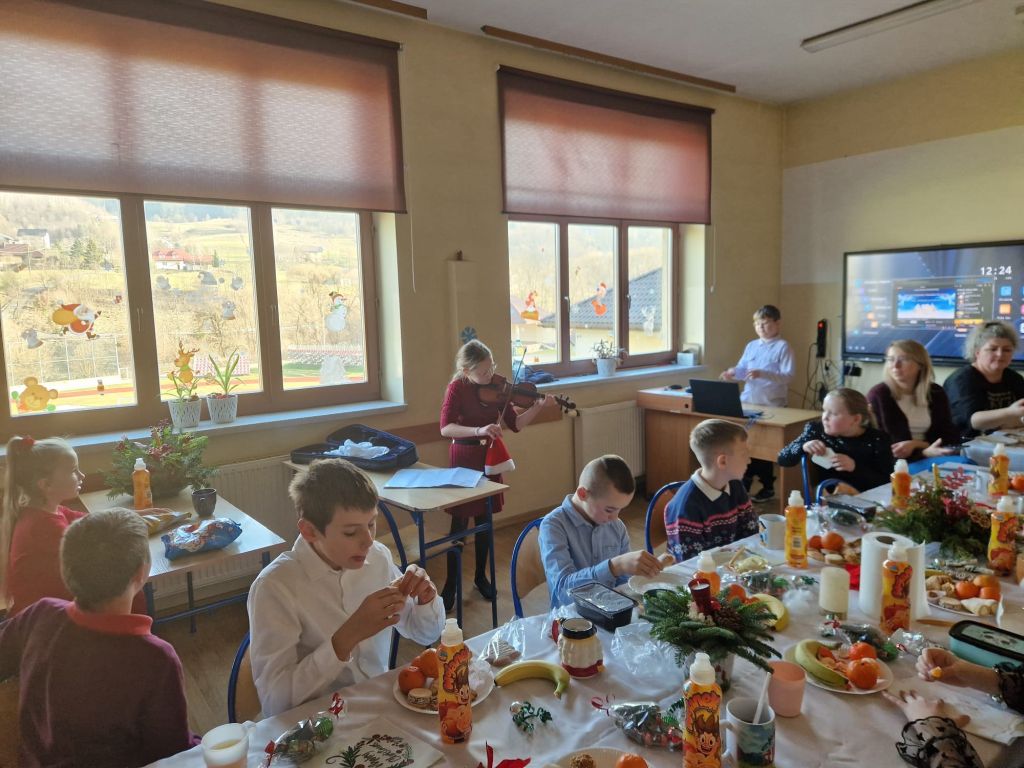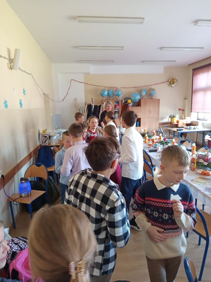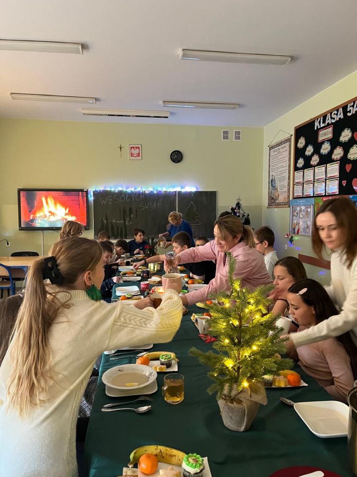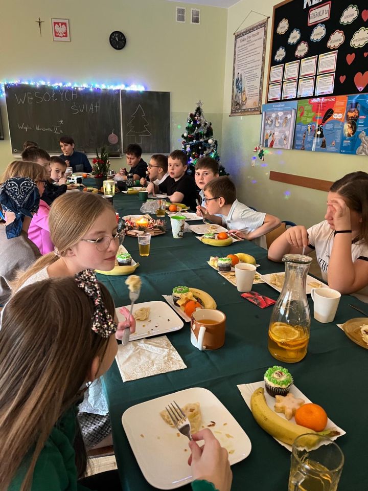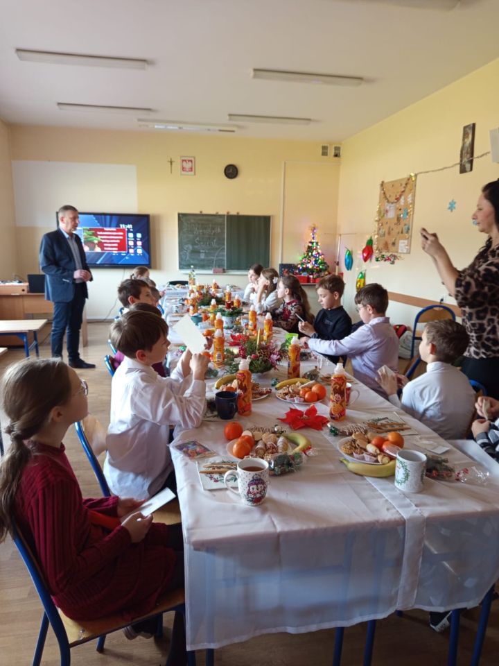 W dniach 17 grudnia i 18 grudnia 2025 roku odbyły się Wigilie klasy 4a oraz klasy 5a. Stoły przystrojono świątecznymi stroikami, a rodzice pomogli w przygotowaniu dań i słodkości na klasowe spotkania opłatkowe. Uczniowie wraz z wychowawcami złożyli sobie świąteczne życzenia i podzielili się opłatkiem. Spotkaniia przebiegały w miłej, radosnej atmosferze przy wspólnym poczęstunku i kolędach. Wigilia była okazją do integracji oraz wprowadziła wszystkich w świąteczny nastrój.