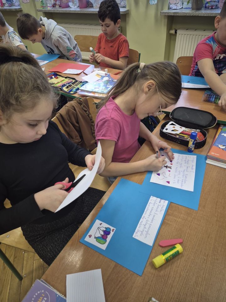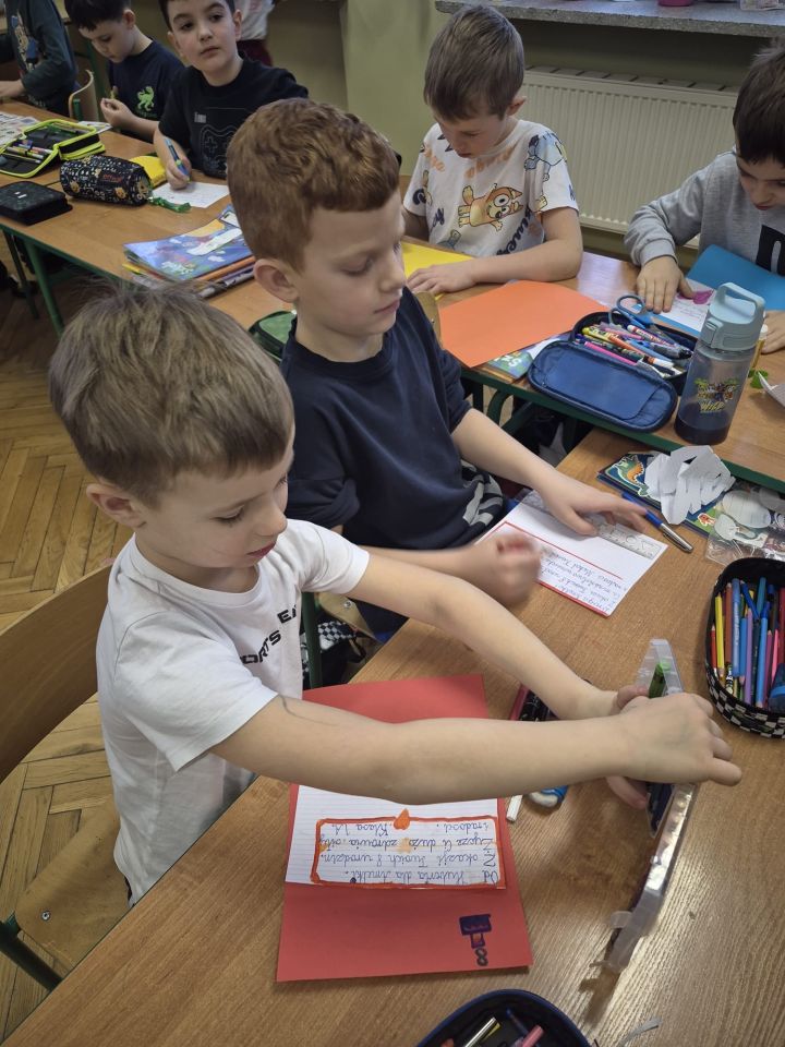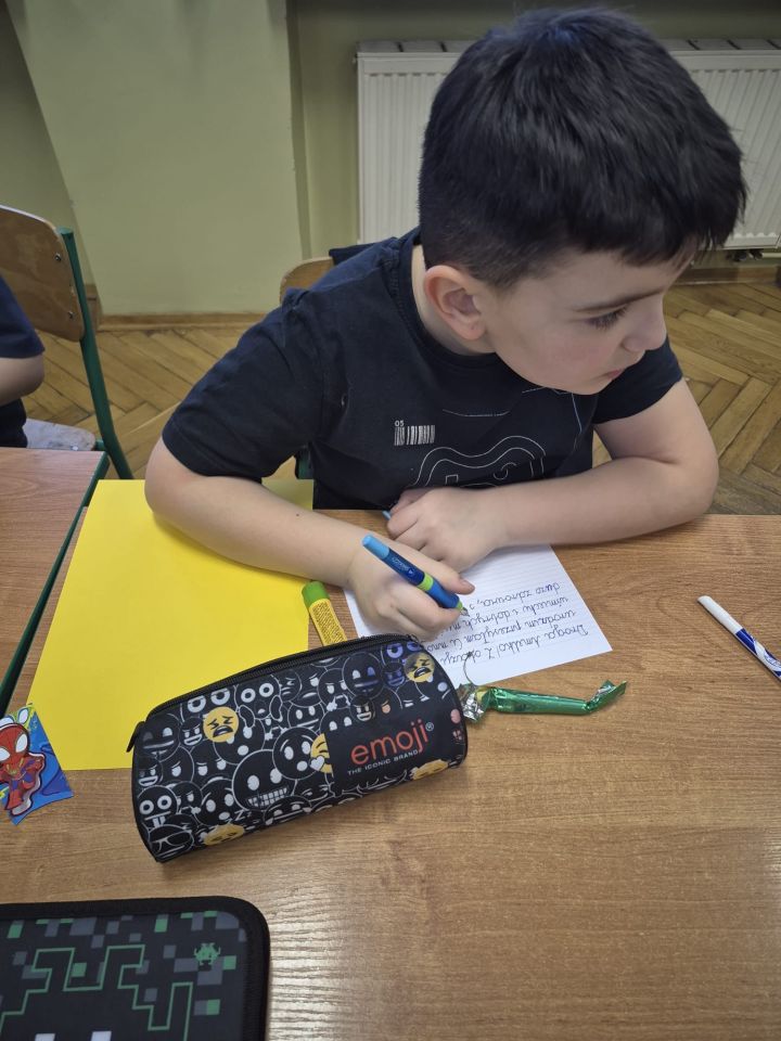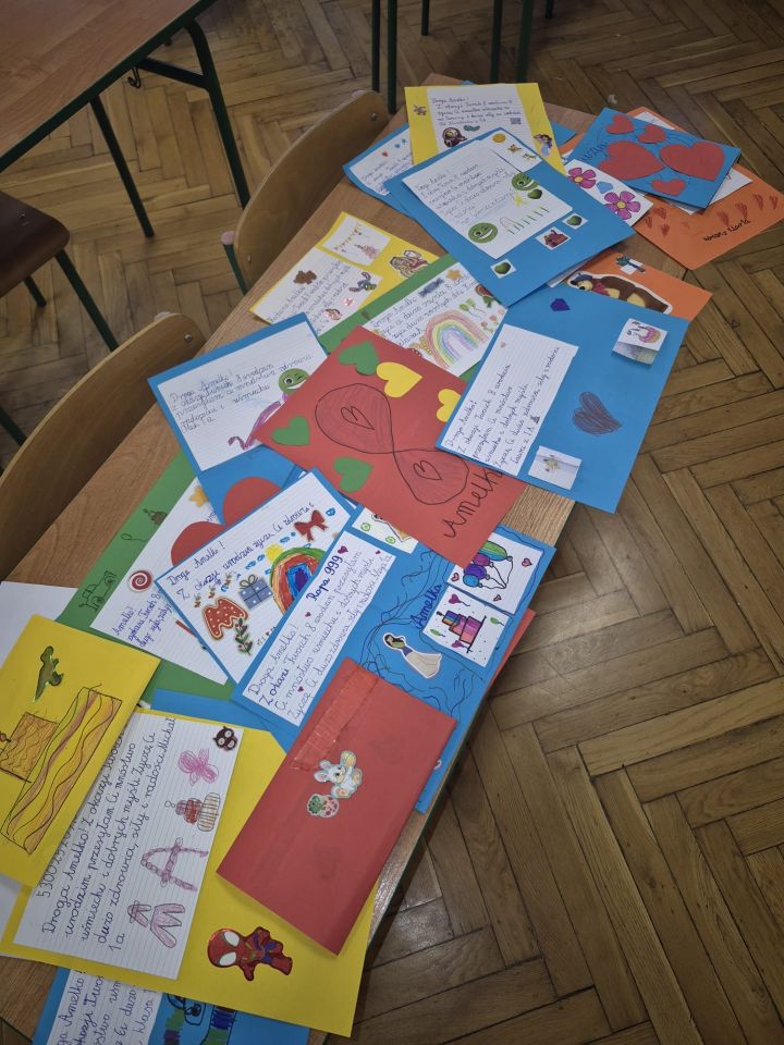 Uczniowie klasy 1a z dużym zaangażowaniem włączyli się w akcję „Kartka z życzeniami dla Amelki”. Akcja polegała na wykonaniu własnoręcznych kartek urodzinowych z życzeniami dla walczącej z chorobą nowotworową Amelki. Dzieci przygotowywały kolorowe prace, wkładając w nie serce, kreatywność i szczere emocje. Każda kartka była wyrazem wsparcia, życzliwości i troski o drugiego człowieka. Udział w tej akcji nauczył pierwszoklasistów wielu ważnych wartości. Przede wszystkim empatii i wrażliwości na potrzeby innych, zwłaszcza osób chorych i słabszych. Uczniowie zrozumieli, że nawet drobny gest może sprawić komuś radość i dodać otuchy w trudnych chwilach. Akcja rozwijała także poczucie odpowiedzialności, współpracy oraz zaangażowania społecznego, a jednocześnie kształtowała postawę otwartości i chęci niesienia pomocy. Dla uczniów była to cenna lekcja budowania świadomości, że wspólne działanie może przynieść radość i wsparcie osobom chorym, a dobro, którym się dzielimy, zawsze wraca. 💓