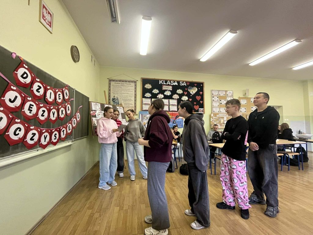 21 lutego: Międzynarodowy Dzień Języka Ojczystego Dziś świętujemy bogactwo i piękno polszczyzny! To wyjątkowy dzień, ustanowiony przez UNESCO, który przypomina nam o roli języka w kształtowaniu naszej tożsamości i kultury. Z tej okazji uczniowie klas 5a, 5b i 8b wzięli udział w „Potyczkach z polszczyzną”. Na lekcji języka polskiego zaprezentowali przygotowane przez siebie gry dydaktyczne, quizy, zabawy językowe oraz prezentacje multimedialne. Zmagali się z zadaniami, łamigłówkami, zagadkami i „łamańcami językowymi”. A wszystko po to, aby dostrzec piękno i bogactwo naszego rodzimego języka. Takie zajęcia idealnie pokazują, że język polski nie musi być tylko zbiorem sztywnych reguł, ale żywym i fascynującym narzędziem. Dbajmy o poprawność i kulturę słowa nie tylko od święta, ale każdego dnia. Pamiętajmy: język to nasza wspólna wartość!
