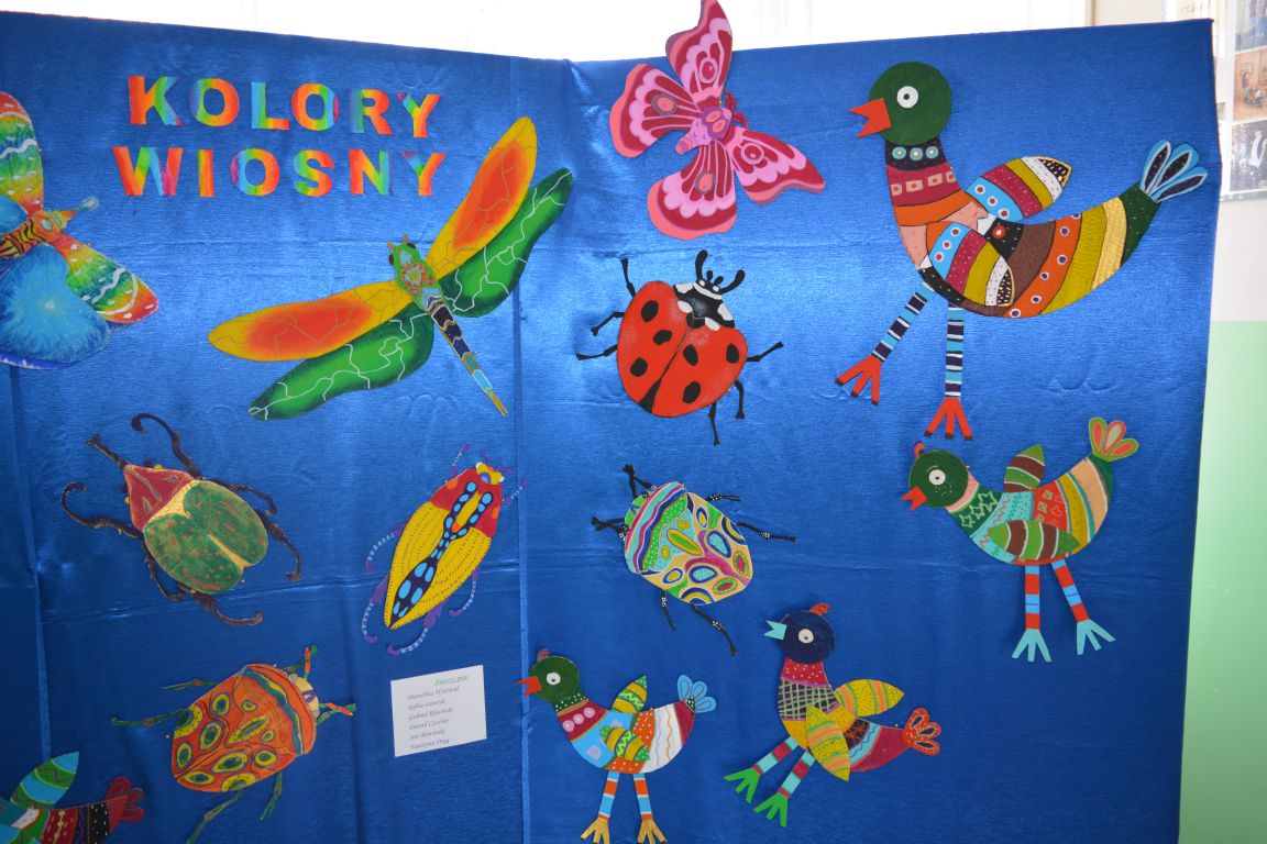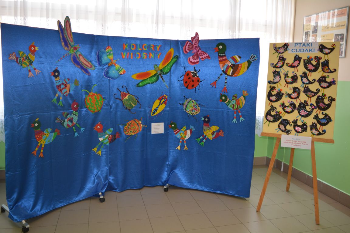 Wystawa prac plastycznych „Kolory Wiosny” to wyjątkowe wydarzenie, które w pełni odzwierciedla radość i świeżość wiosennej pory roku. Prace dzieci, pełne kolorów i pomysłowości, zachwycają różnorodnością oraz kreatywnością ich twórców. Prace przedstawiają kolorowe ptaki i owady, co idealnie wpisuje się w tematykę wiosenną. Kolorystyka prac jest niezwykle bogata – od żywych, intensywnych barw, aż po delikatniejsze odcienie. Prace dzieci są nie tylko piękne, ale również pełne pozytywnej energii, co sprawia, że każdy odwiedzający wystawę poczuje wiosenny klimat. Wystawę wzbogaciły również „Ptaki cudaki” wykonane na warsztatach plastycznych przez uczennice klasy III b.  Gratulacje dla wszystkich małych i większych artystów!
