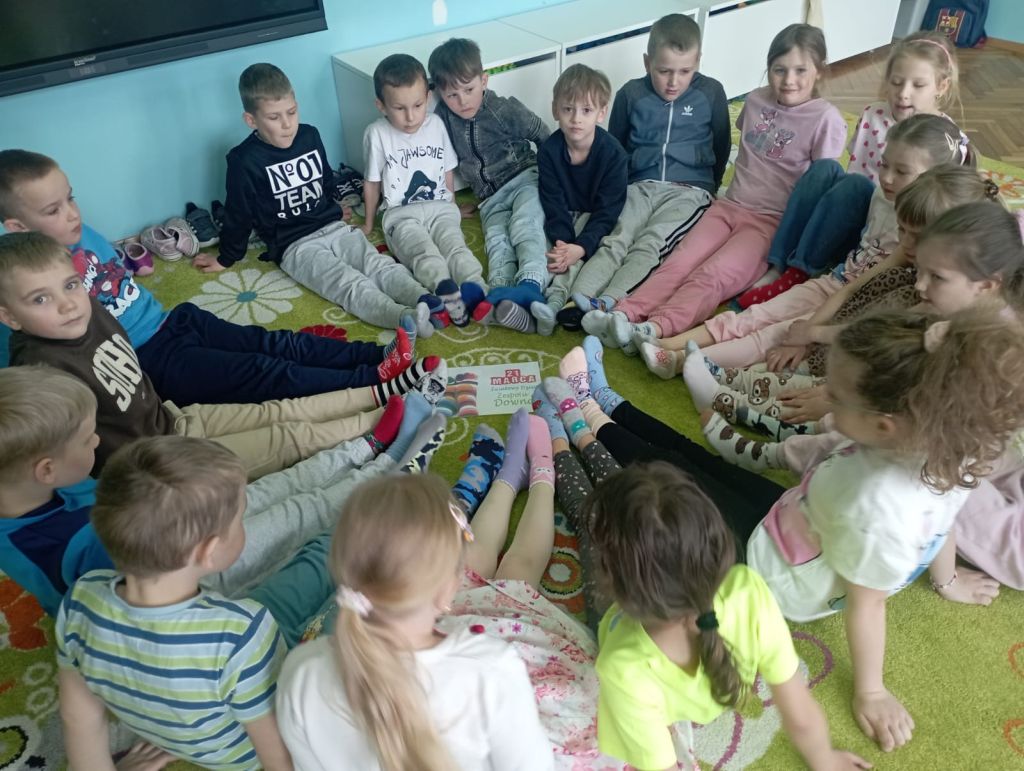 Z okazji Światowego Dnia Osób z Zespołem Downa w przedszkolu przeprowadzono akcję „Przyjaciele nie liczą chromosomów”. Przedszkolaki najpierw obejrzały animację pt. „Wyjątkowe dzieci”, a następnie ozdobiły wcześniej przygotowane skarpety w piękne, kolorowe wzory. Celem przedsięwzięcia było uwrażliwienie najmłodszych na potrzeby osób borykających się z Zespołem Downa oraz uświadomienie, iż każdy z nas chociaż inny jest tak samo ważny.