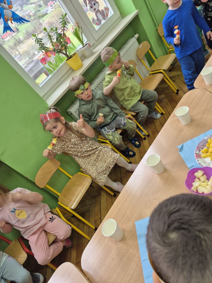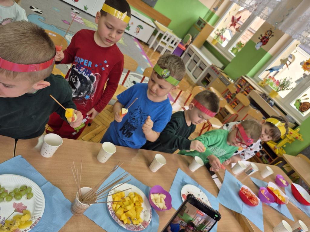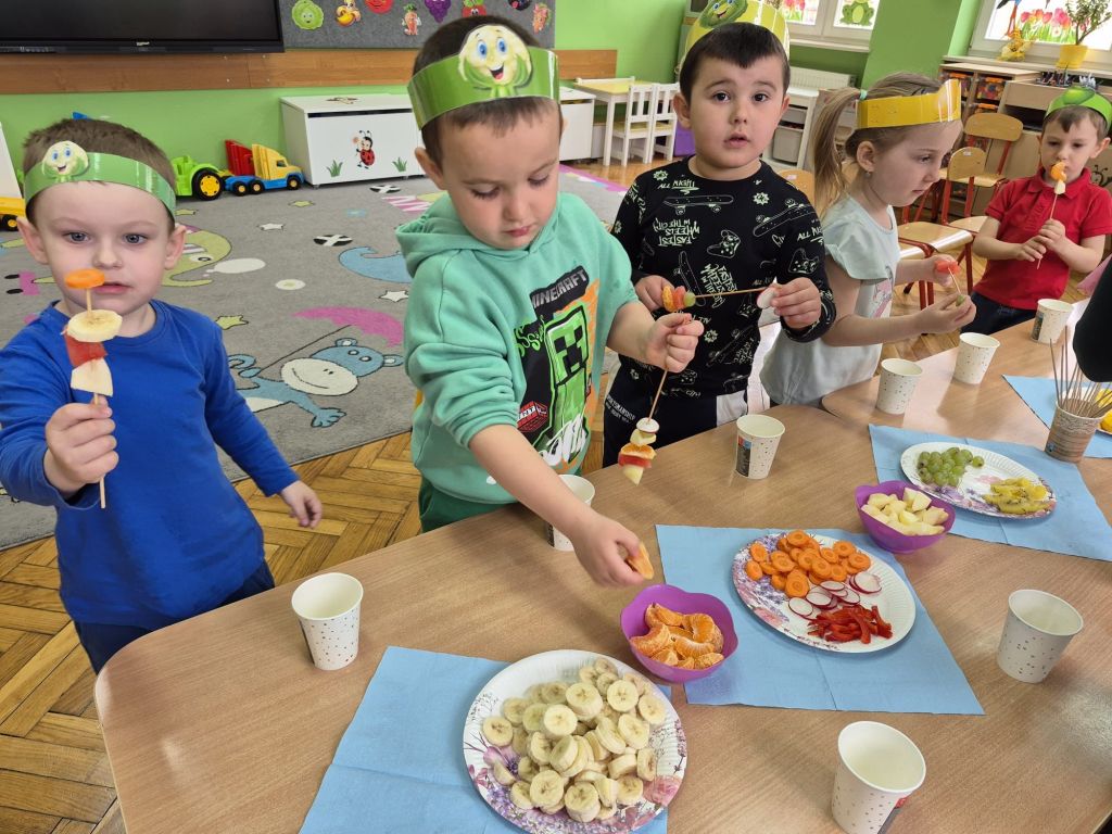 W grupie „Biedroneczki” odbył się wyjątkowy Dzień Owoców i Warzyw. Dzieci miały okazję samodzielnie przygotować pyszne owocowe szaszłyki oraz spróbować zdrowych, owocowych smoothie. Podczas zajęć dowiedziały się, jak ważną rolę w codziennej diecie odgrywają owoce i warzywa oraz jakie wartości odżywcze nam dostarczają. Na zakończenie wykonały piękne prace plastyczne inspirowane zdrową żywnością. To był dzień pełen radości, zabawy i zdrowych smaków! 🍎