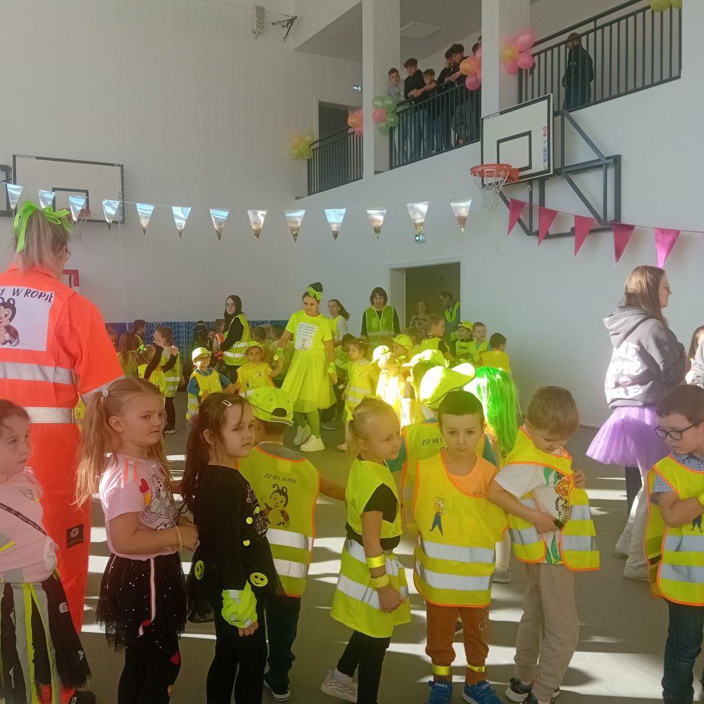 Dzieci z grup przedszkolnych: Biedroneczki, Żabki, Pszczółki i Wiewióreczki wzięły udział w wielkim finale akcji „Odblaskowa szkoła wkracza do przedszkola”, który odbył się w ZSP nr 2 w Ropie. Przedszkolaki zaprezentowały pomysłowe, kreatywne stroje odblaskowe, a dodatkowo przygotowały piosenkę o odblaskach, którą pięknie zaśpiewały przed publicznością🦺. Jedno dziecko zaprezentowało także wierszyk o bezpieczeństwie, zdobywając gromkie brawa! 👏