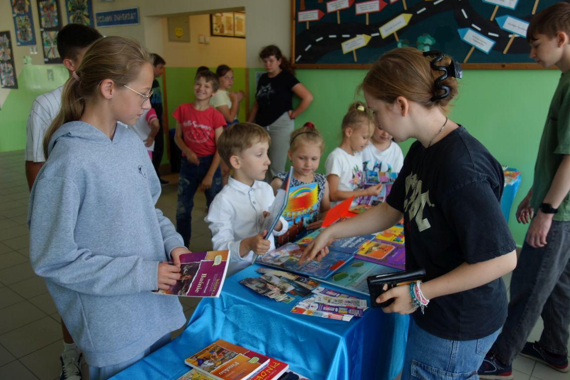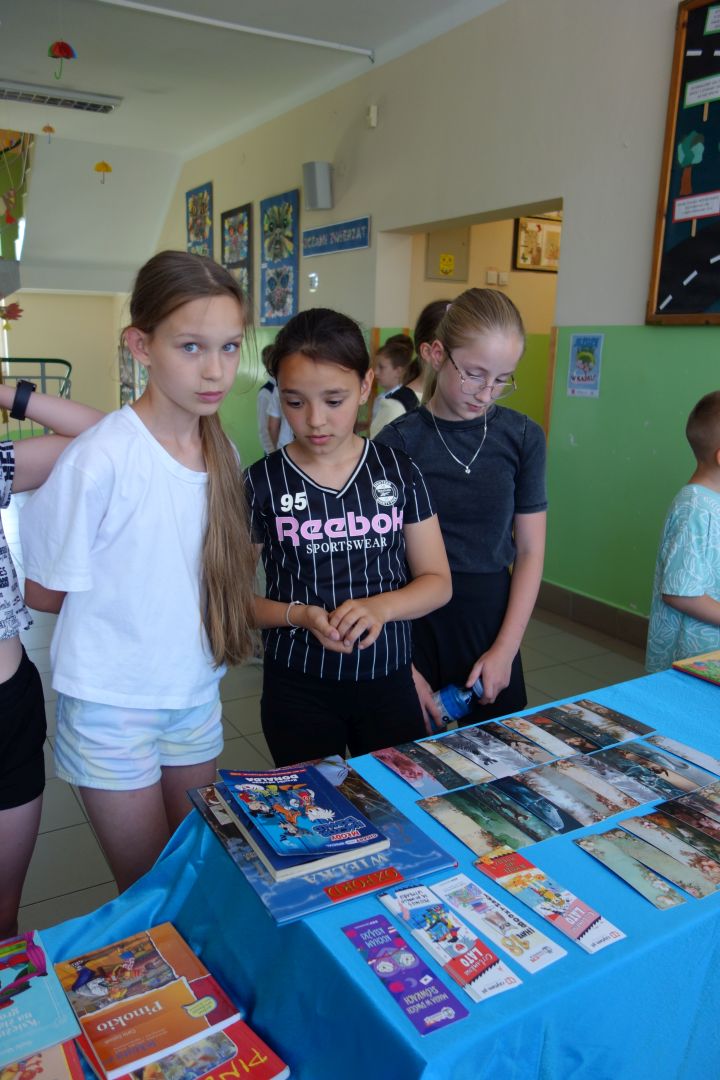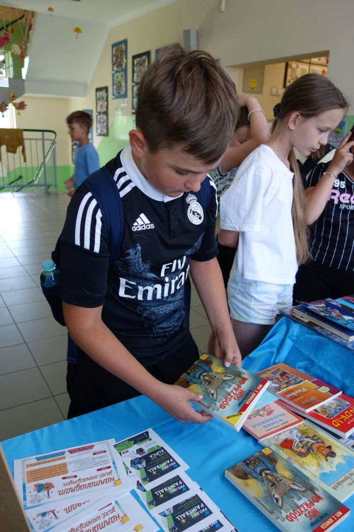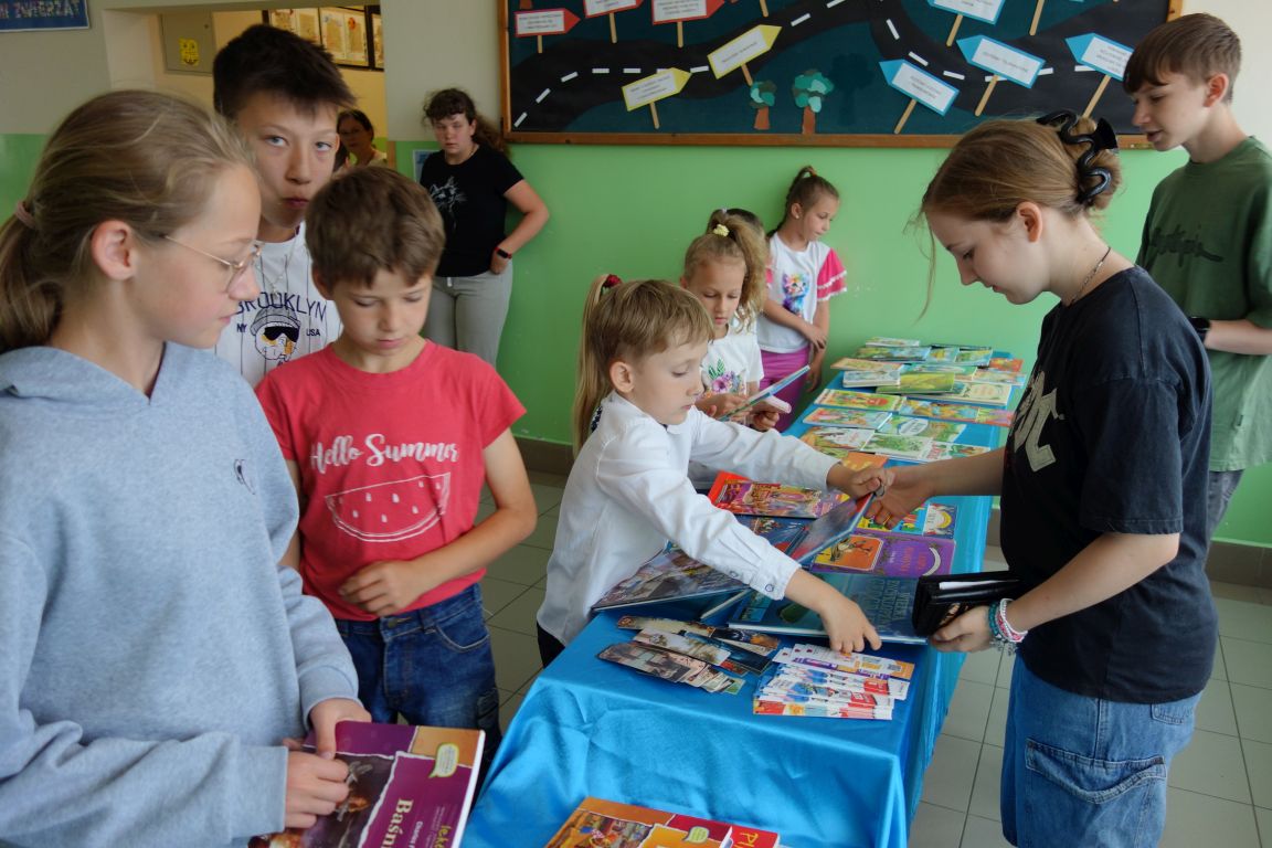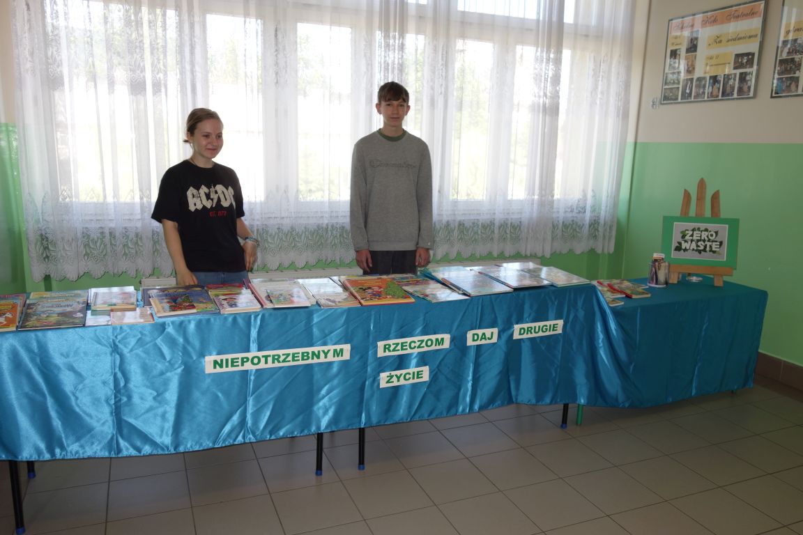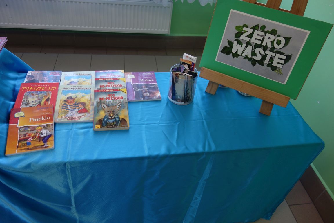 Kiermasz książek „Zero waste – daj książkom drugie życie”. W ramach akcji promującej działania ekologiczne zorganizowana została zbiórka starych książek, które zakupione za drobną sumę przyniosły radość kolejnym czytelnikom. Każdy uczeń, który przyniósł książkę lub ją zakupił otrzymał pięknie ilustrowane zakładki. Pieniądze ze sprzedaży książek przeznaczone zostały na nagrody za udział w konkursach i akcjach czytelniczych. Dziękuję wszystkim uczniom, którzy przyczynili się do zorganizowania tej akcji i przynieśli na kiermasz książki z domowej biblioteczki.