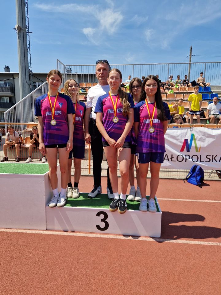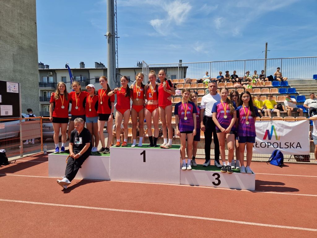 18 czerwca 2025 roku na stadionie w Tarnowie odbyły się mistrzostwa województwa w biegach sztafetowych. W kategorii Igrzyska Młodzieży Szkolnej - klasy VII - VIII naszą szkołę reprezentowały dziewczyny w biegu sztafetowym 4 x 100 metrów. Dziewczęta w składzie: Nikola Wajda, Katarzyna Kmak, Gabriela Spiżewska, Ewelina Rewak, Maja Łukaszyk zajęły 3 miejsce w województwie. Gratulacje. Przypominamy, że jest to nie pierwszy sukces Tych dziewcząt na szczeblu wojewódzkim. W tamtym roku szkolnym dziewczęta zdobyły mistrzostwo i wice mistrzostwo województwa.