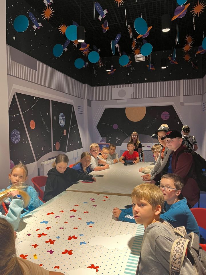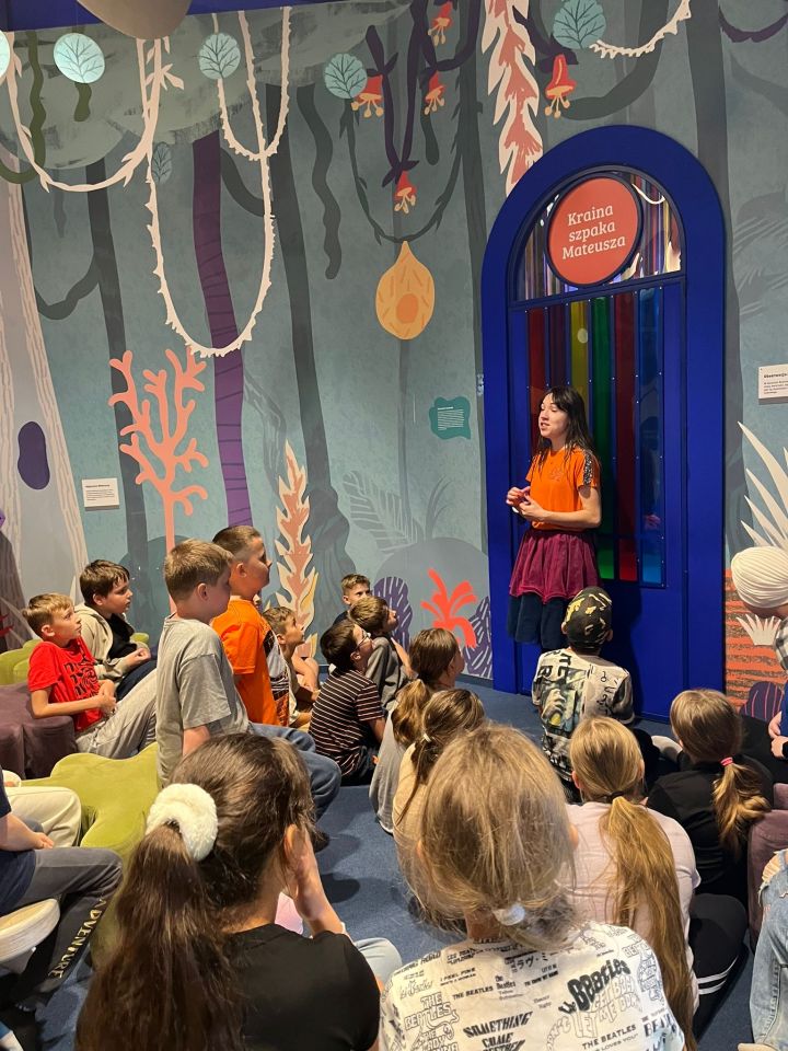 Uczniowie klasy 4a i 4b udali się na niezwykłą wycieczkę do krainy pana Kleksa w Katowicach oraz brali udział w interaktywnej lekcji poświęconej astronomii w Planetarium Śląskim w Chorzowie. Podczas zwiedzania „Bajki pana Kleksa” nasi czwartoklasiści leczyli chore sprzęty, szukali sekretów profesora Ambrożego, tańczyli do znanych i lubianych bajkowych piosenek, uczestniczyli w niezwykłych warsztatach tworzenia magicznych płynów, budowali z klocków Lego oraz aktywnie spędzali czas w sali zabaw szpaka Mateusza. Była to wspaniała możliwość przeniesienia się do świata akademii i spędzenia czasu w towarzystwie Adasia oraz uwielbianego przez wszystkich pana Kleksa. Ta podróż na długo zostanie w naszej pamięci …