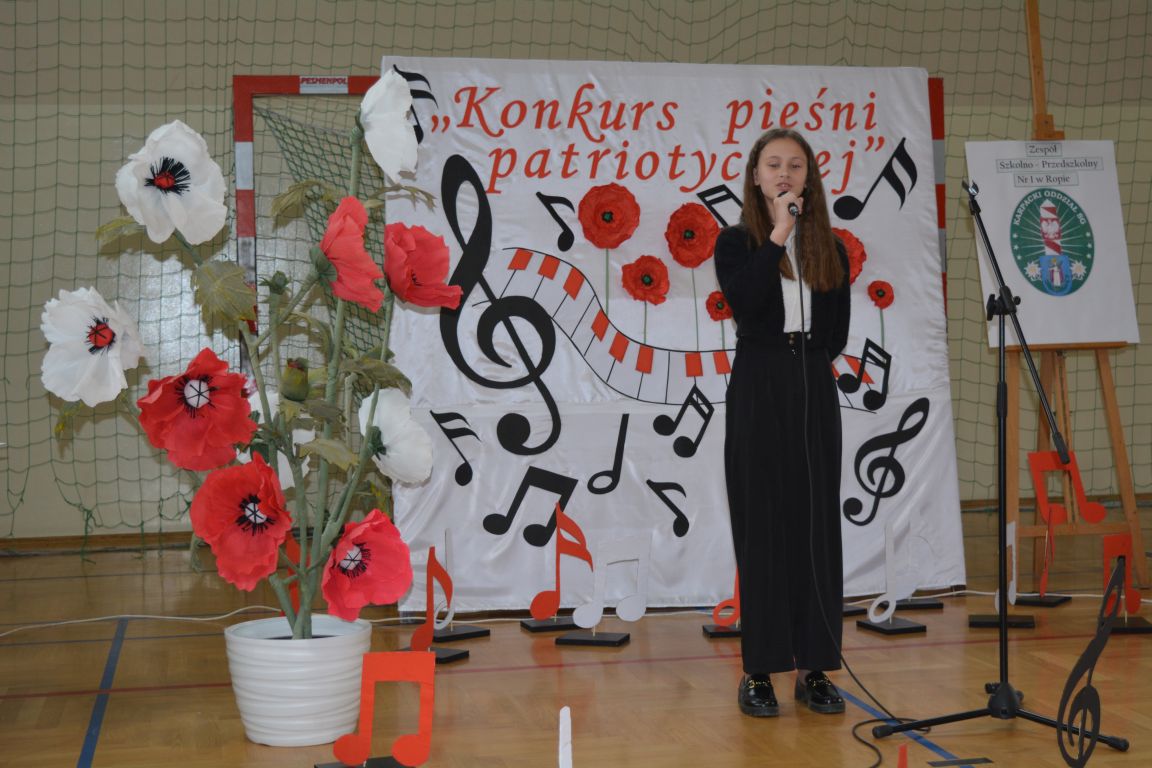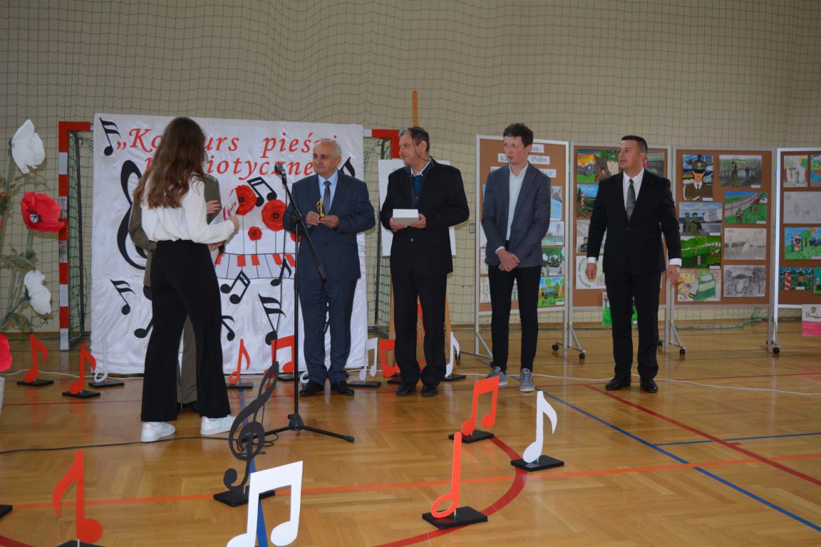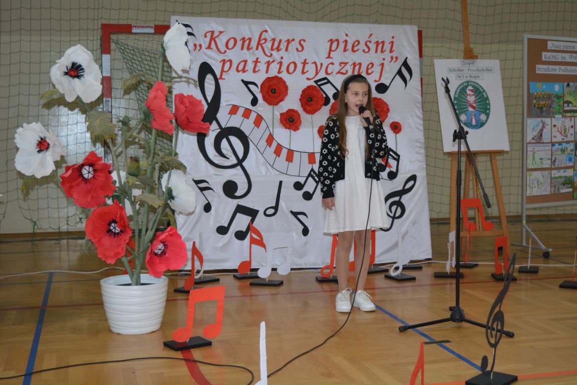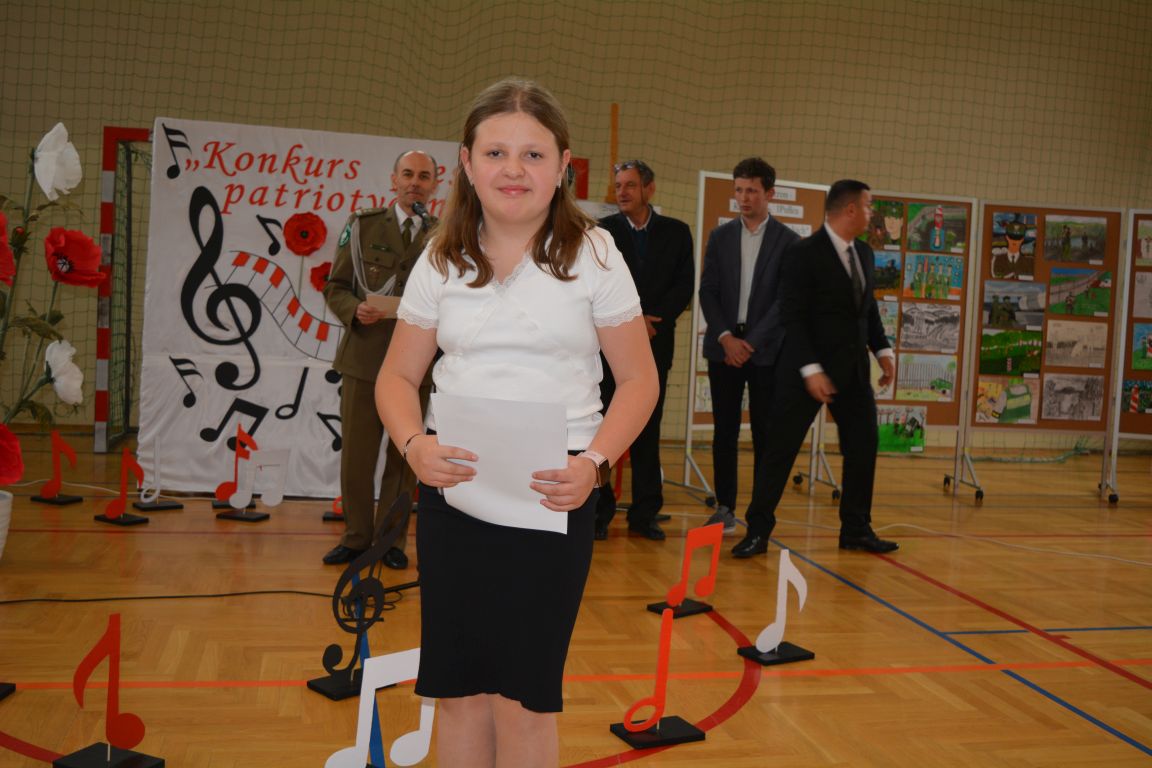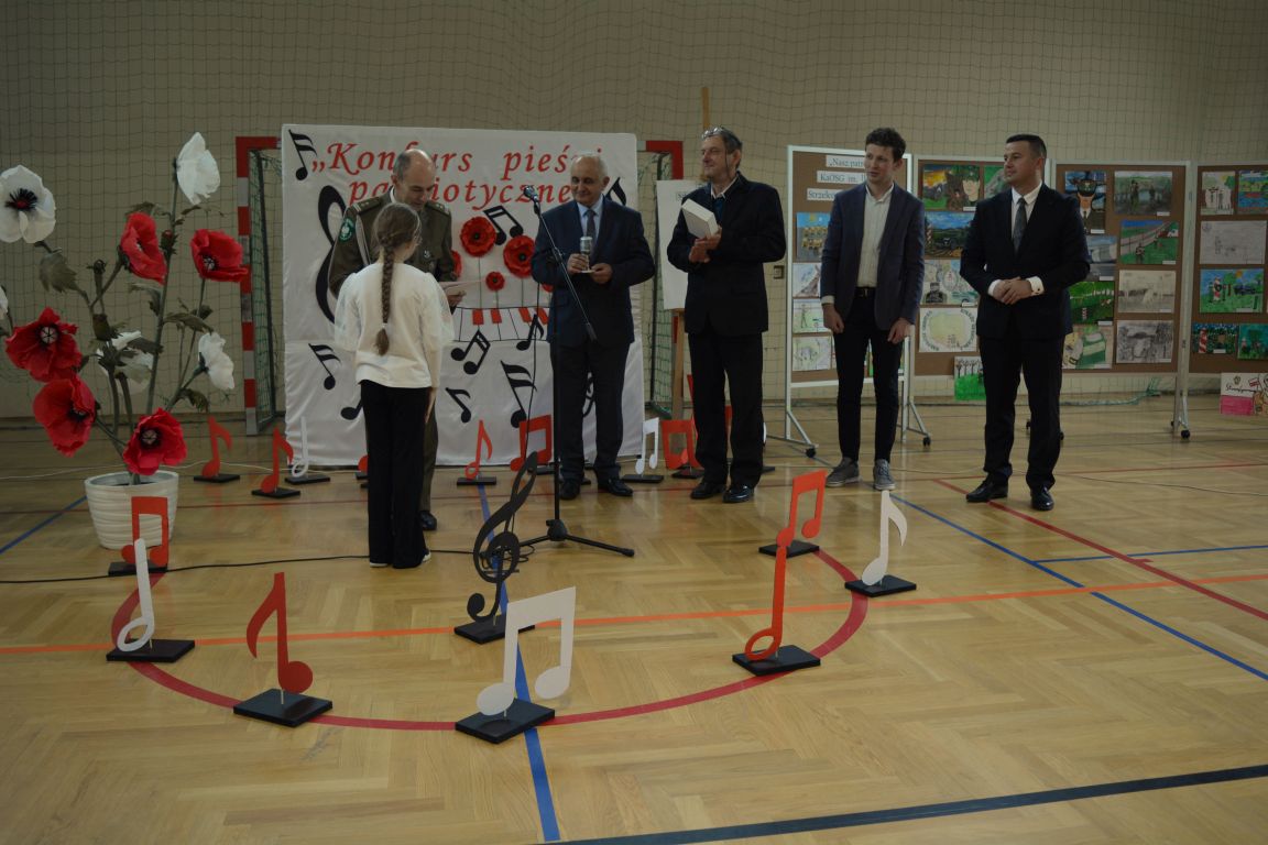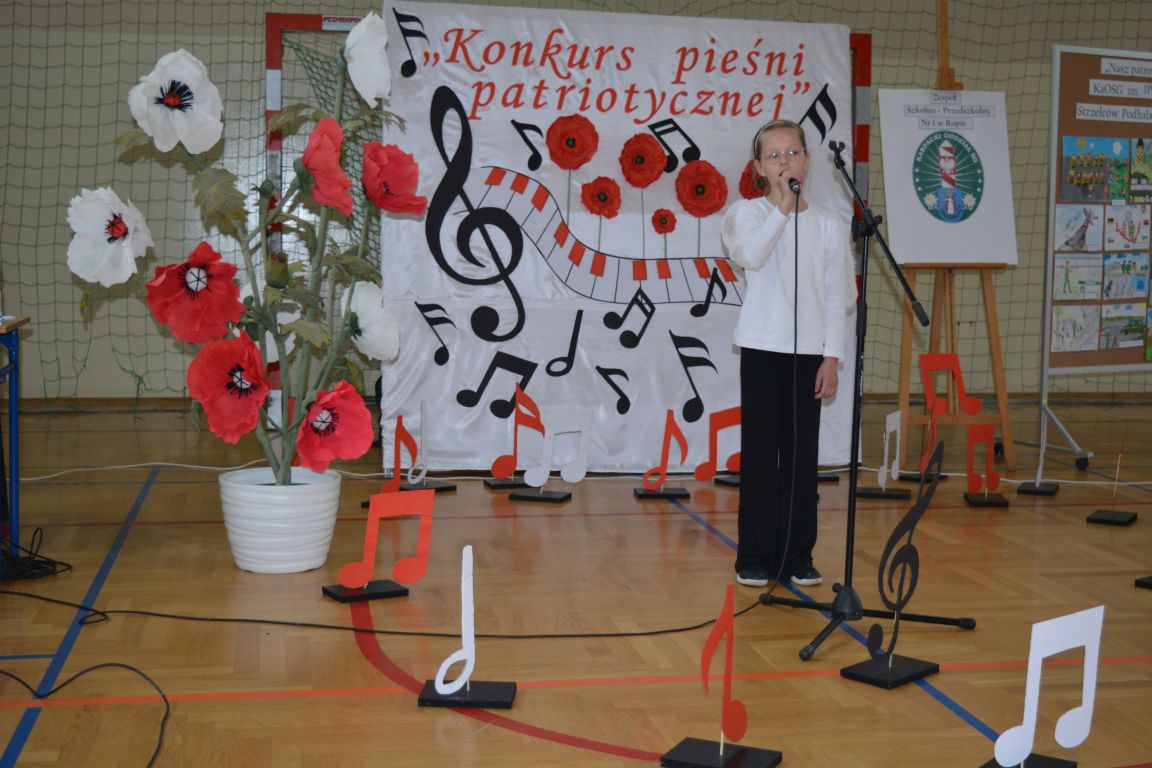 Kolejnym punktem obchodów „Dnia Patrona” był „Konkurs pieśni patriotycznej”. Do udziału w zmaganiach konkursowych zgłosiło się aż 21 uczniów z klas I -VII. Naszych gości zaprosiliśmy do komisji oceniającej występy młodych artystów. Warto pamiętać, że dla nowych pokoleń pieśni patriotyczne są nośnikiem pamięci historycznej, ucząc młodych ludzi o bohaterach narodowych, ważnych wydarzeniach historycznych i ideałach, za które walczyli nasi przodkowie. Rodzice i nauczyciele z dumą obserwowali, jak ich pociechy i wychowankowie prezentowali swoje umiejętności wokalne, a po każdym występie rozbrzmiewają gromkie brawa. Występy te były prawdziwym świętem, które na długo pozostaje w pamięci zarówno dzieci, jak i ich bliskich.