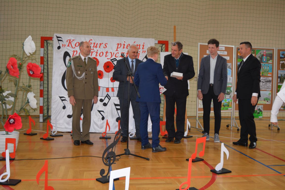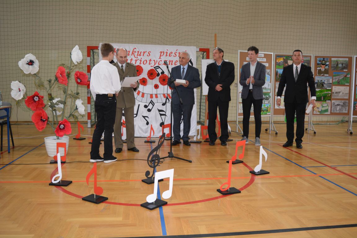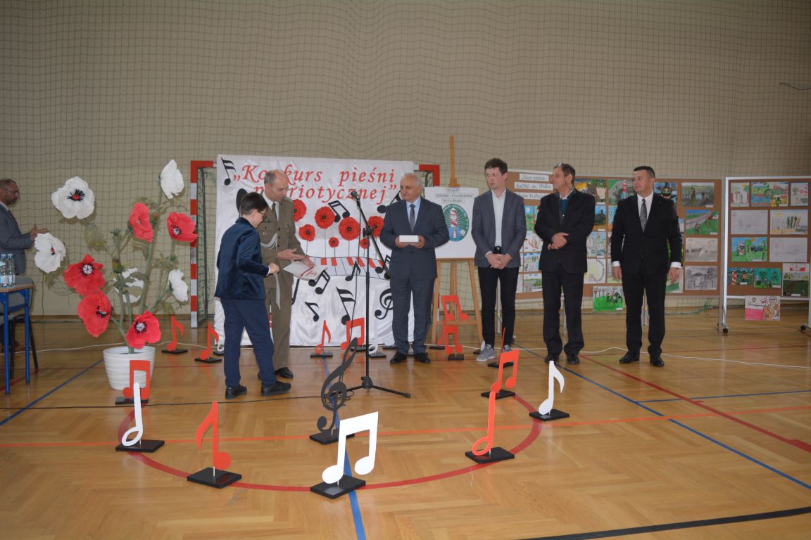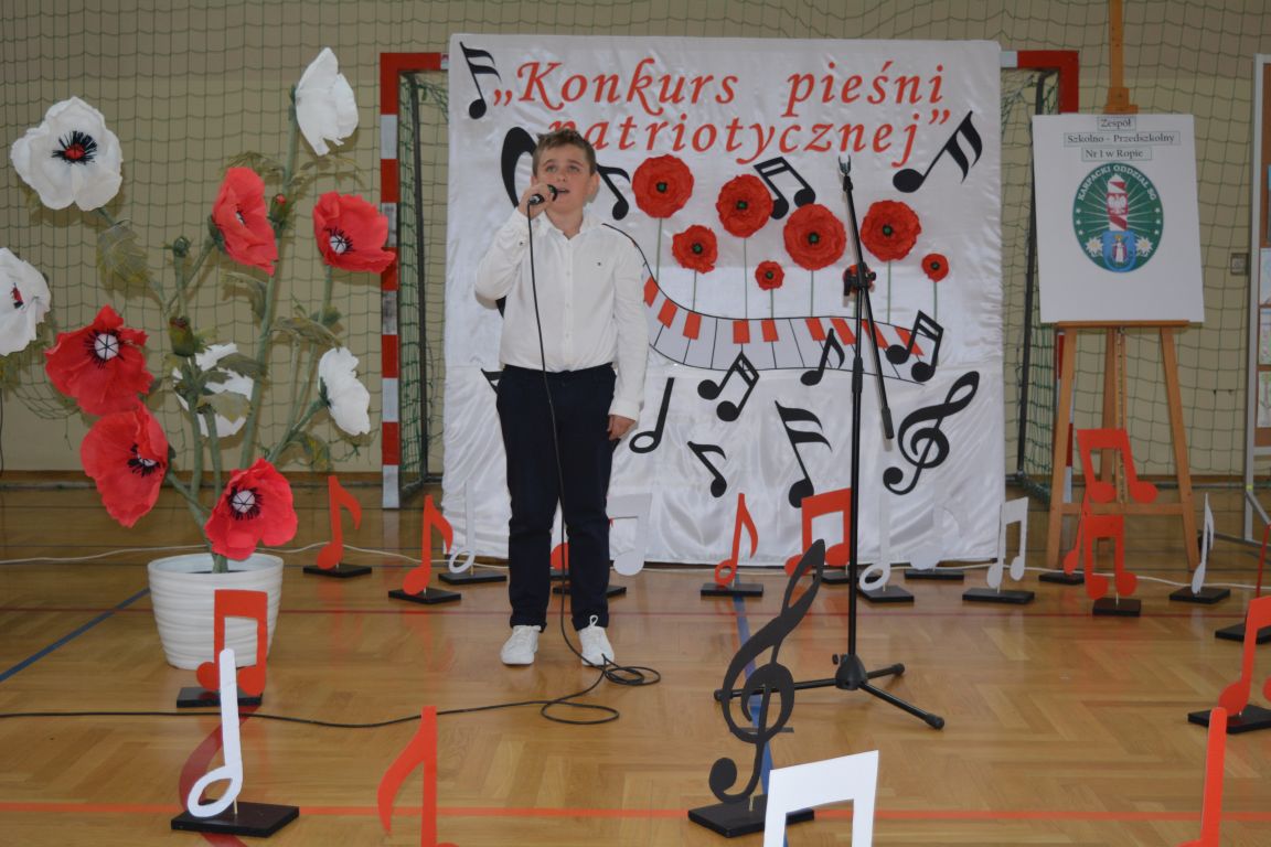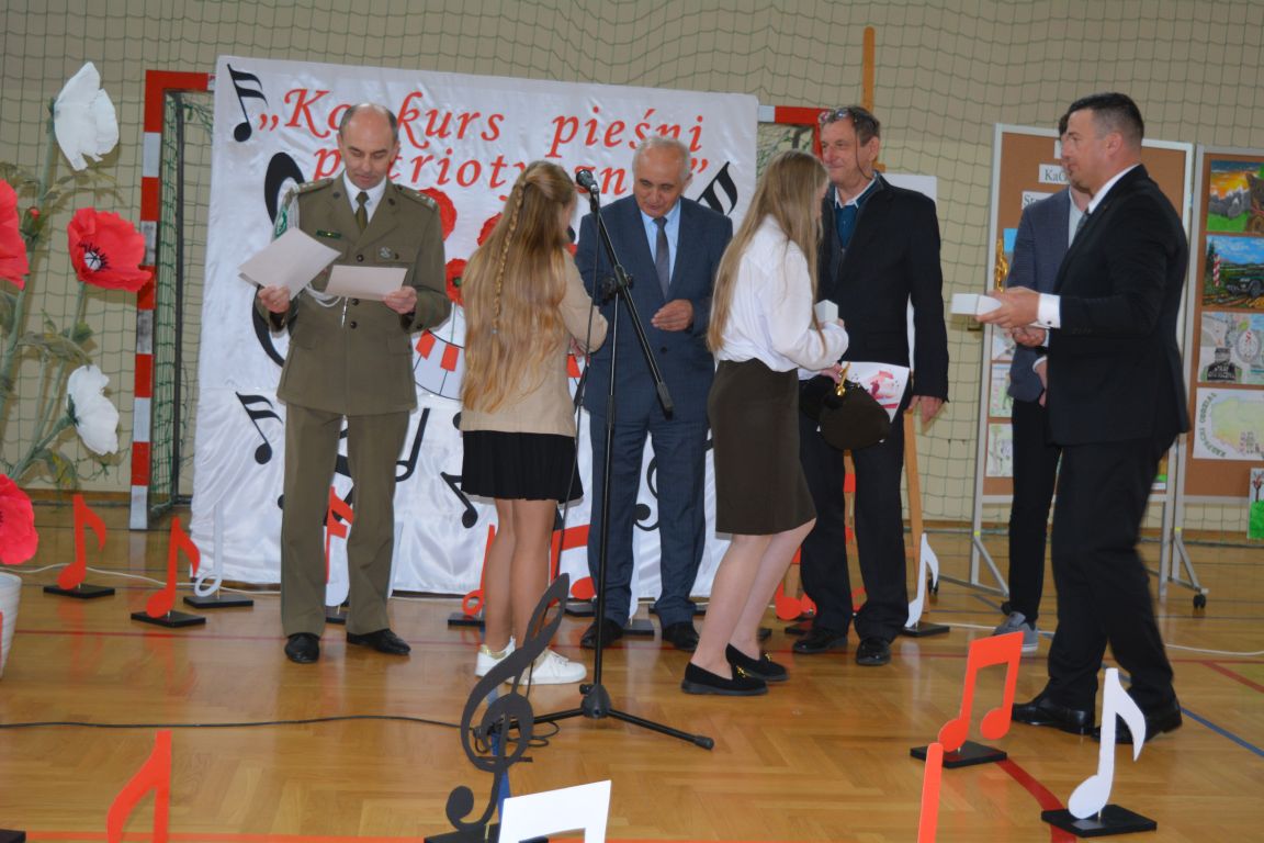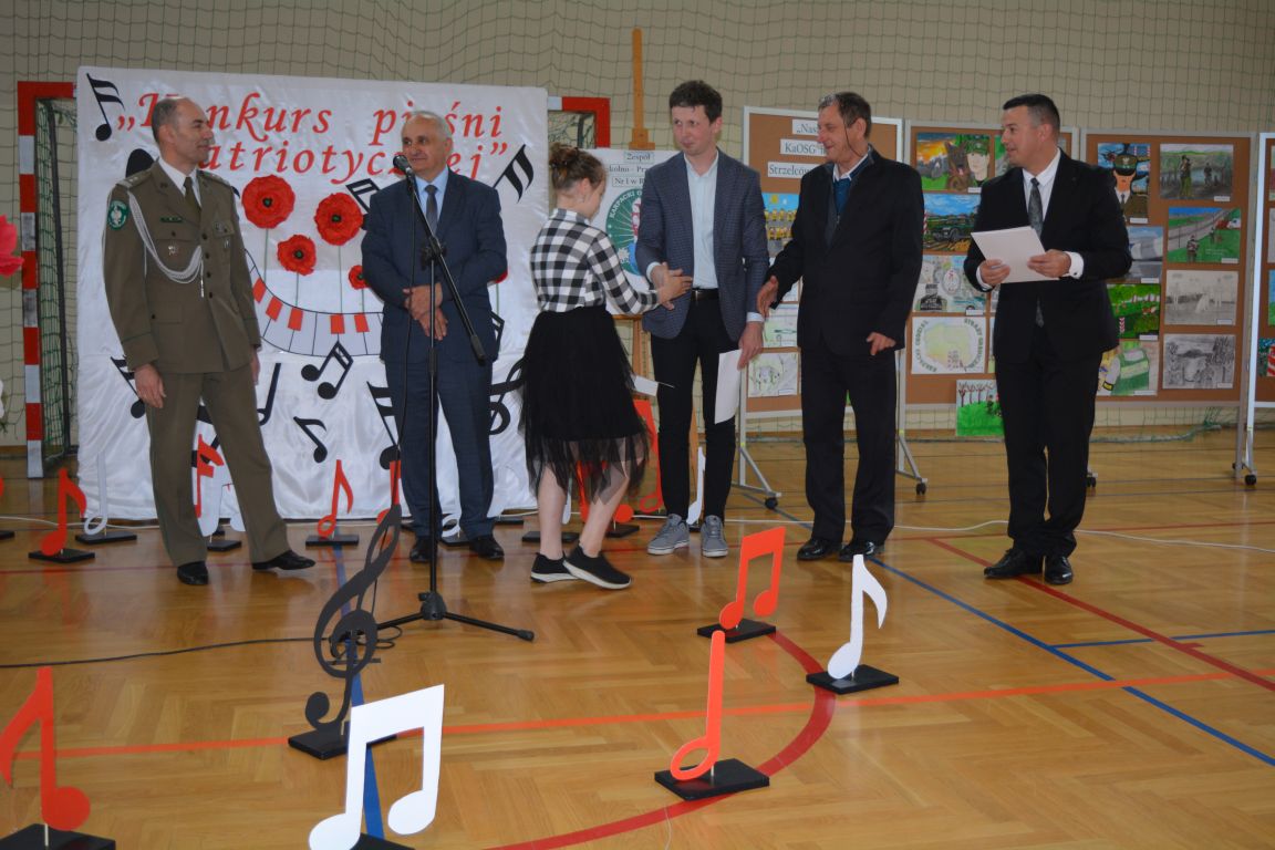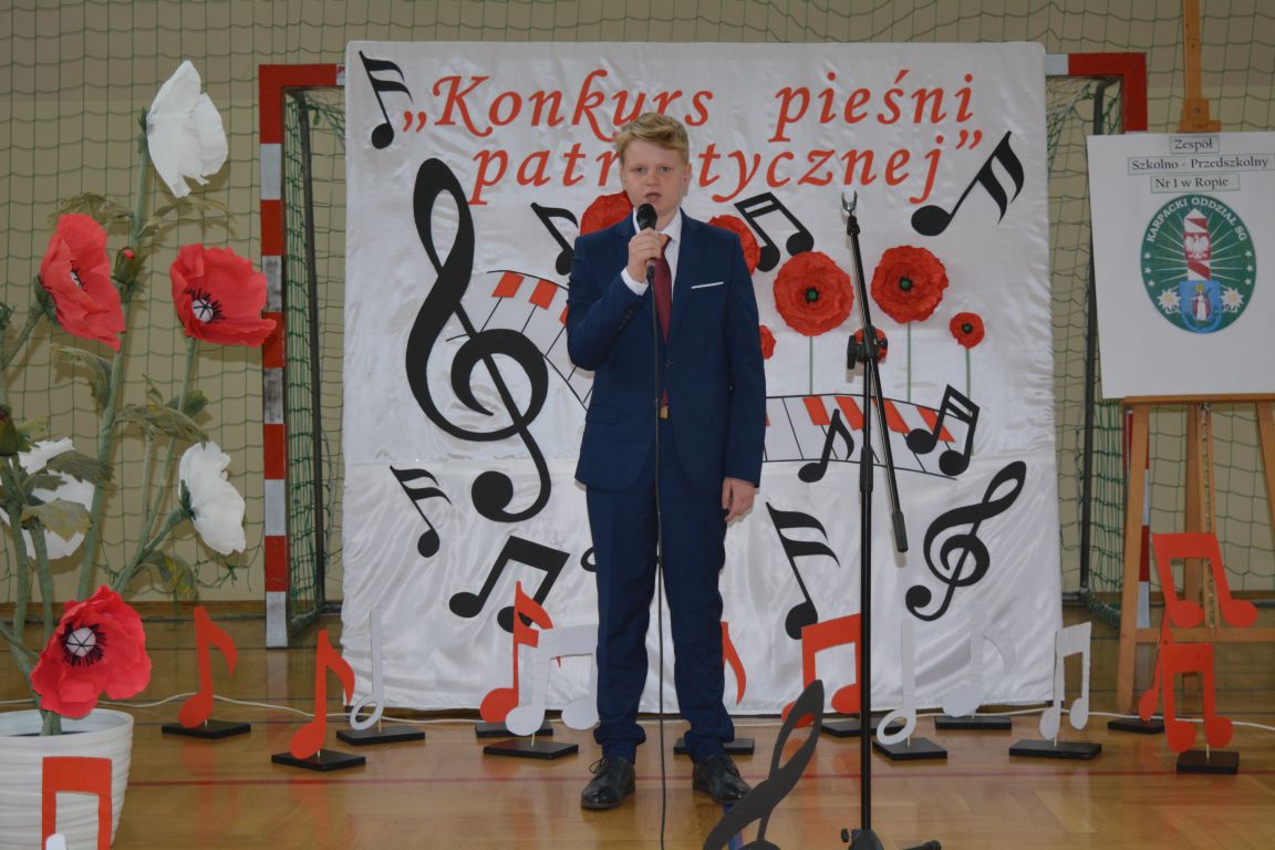 Kolejnym punktem obchodów „Dnia Patrona” był „Konkurs pieśni patriotycznej”. Do udziału w zmaganiach konkursowych zgłosiło się aż 21 uczniów z klas I -VII. Naszych gości zaprosiliśmy do komisji oceniającej występy młodych artystów. Warto pamiętać, że dla nowych pokoleń pieśni patriotyczne są nośnikiem pamięci historycznej, ucząc młodych ludzi o bohaterach narodowych, ważnych wydarzeniach historycznych i ideałach, za które walczyli nasi przodkowie. Rodzice i nauczyciele z dumą obserwowali, jak ich pociechy i wychowankowie prezentowali swoje umiejętności wokalne, a po każdym występie rozbrzmiewają gromkie brawa. Występy te były prawdziwym świętem, które na długo pozostaje w pamięci zarówno dzieci, jak i ich bliskich.