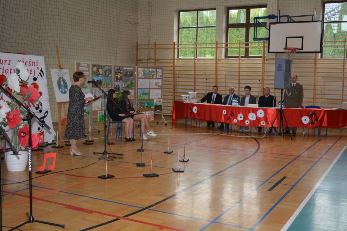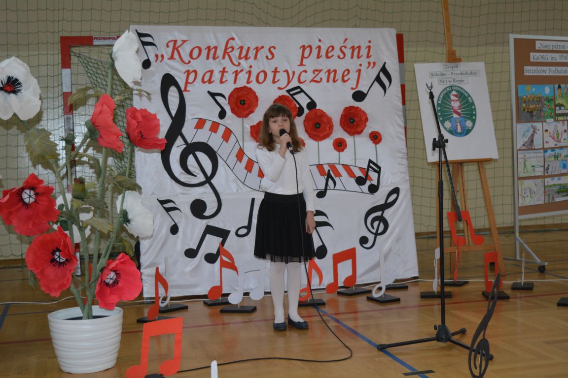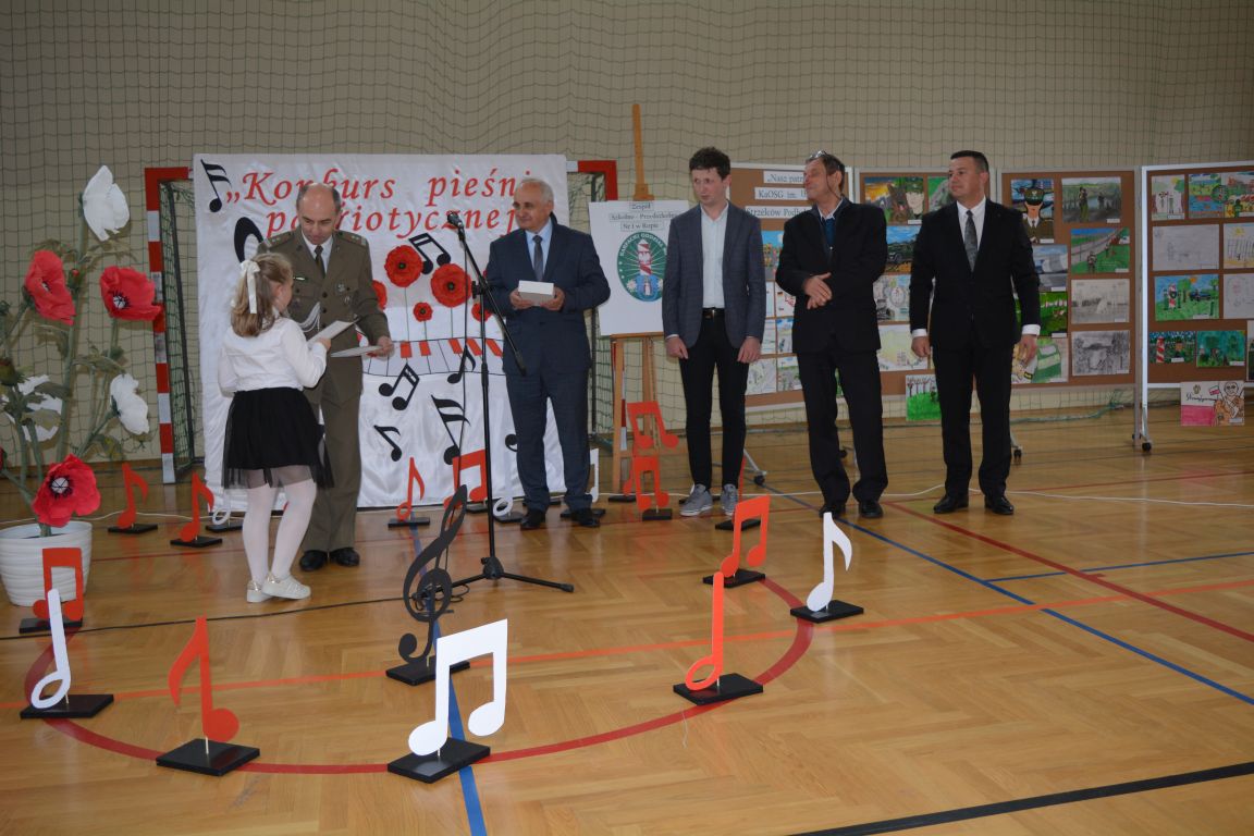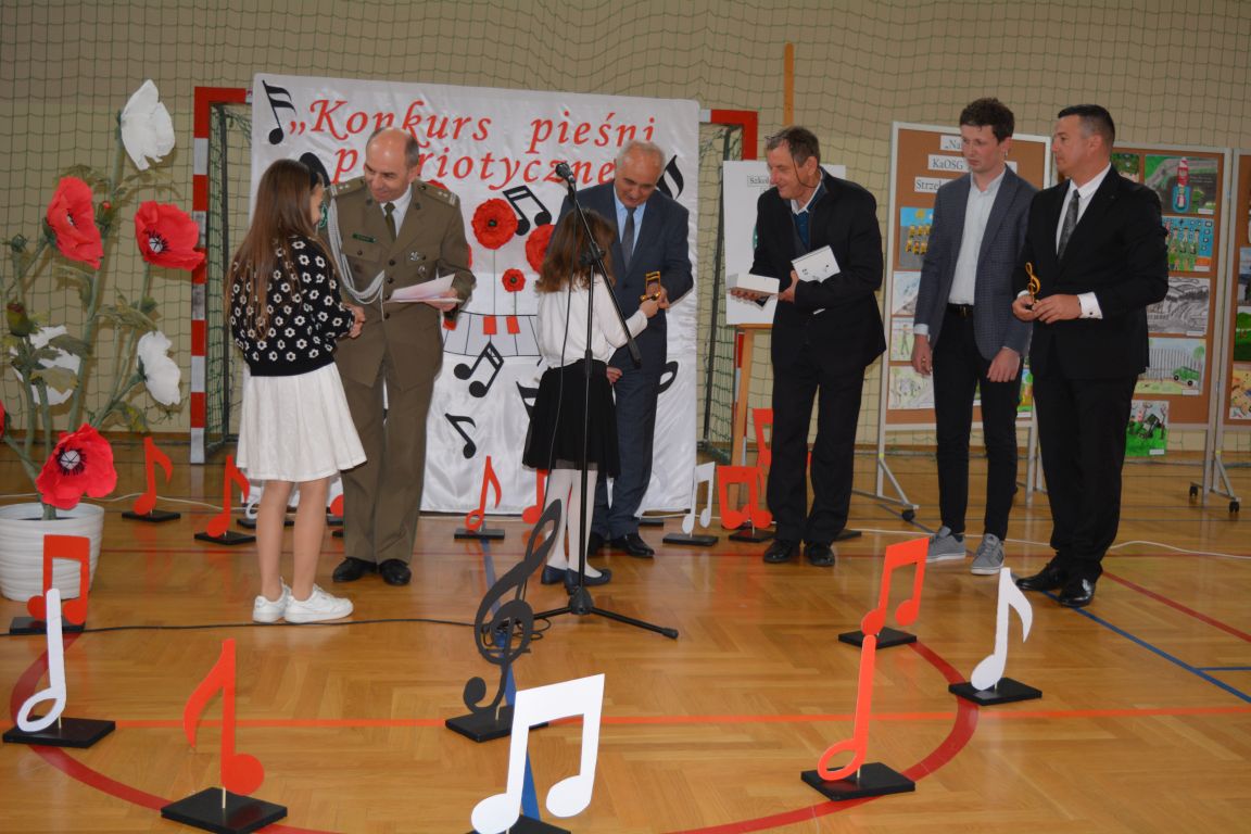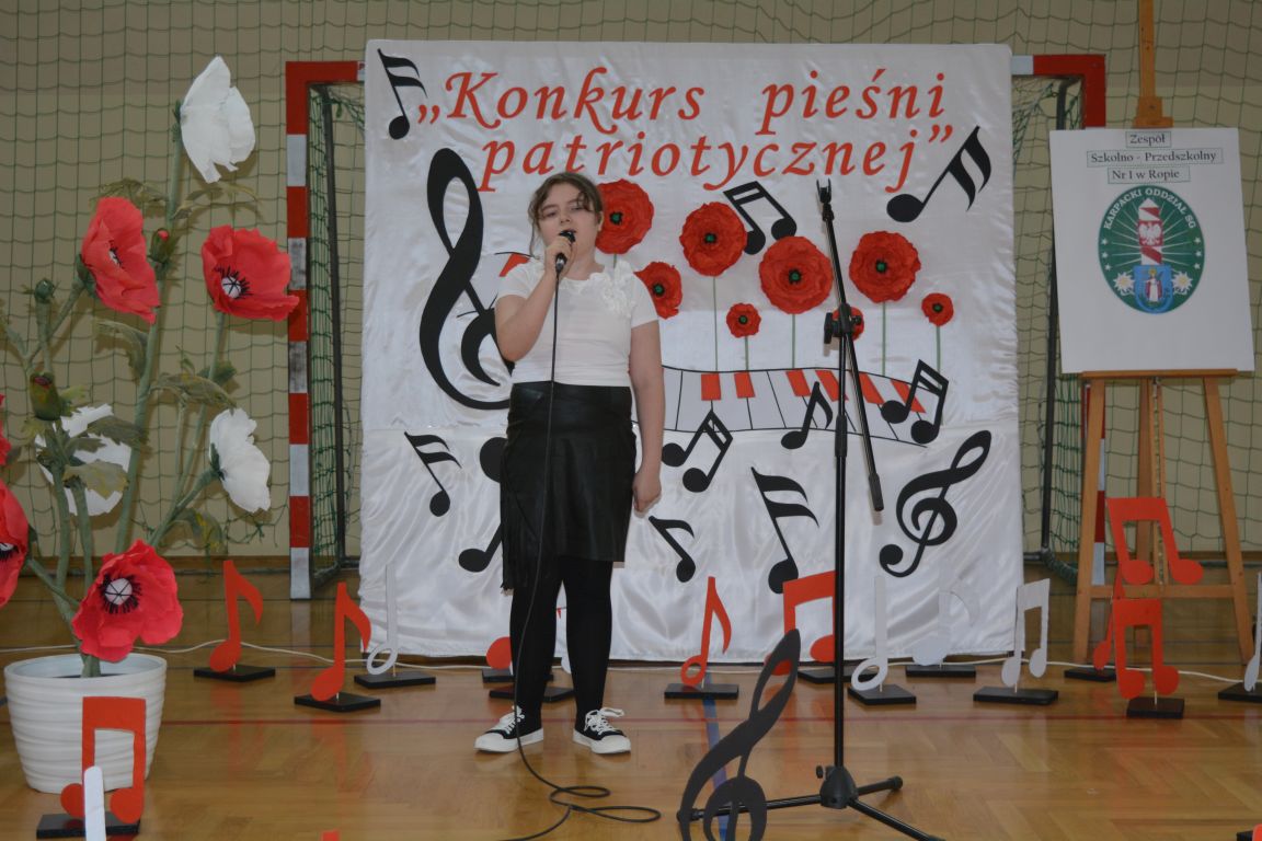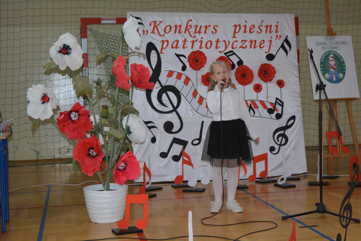 Kolejnym punktem obchodów „Dnia Patrona” był „Konkurs pieśni patriotycznej”. Do udziału w zmaganiach konkursowych zgłosiło się aż 21 uczniów z klas I -VII. Naszych gości zaprosiliśmy do komisji oceniającej występy młodych artystów. Warto pamiętać, że dla nowych pokoleń pieśni patriotyczne są nośnikiem pamięci historycznej, ucząc młodych ludzi o bohaterach narodowych, ważnych wydarzeniach historycznych i ideałach, za które walczyli nasi przodkowie. Rodzice i nauczyciele z dumą obserwowali, jak ich pociechy i wychowankowie prezentowali swoje umiejętności wokalne, a po każdym występie rozbrzmiewają gromkie brawa. Występy te były prawdziwym świętem, które na długo pozostaje w pamięci zarówno dzieci, jak i ich bliskich.