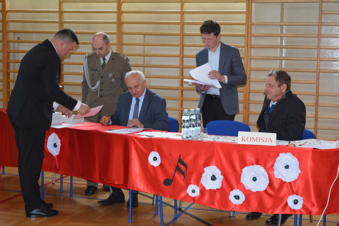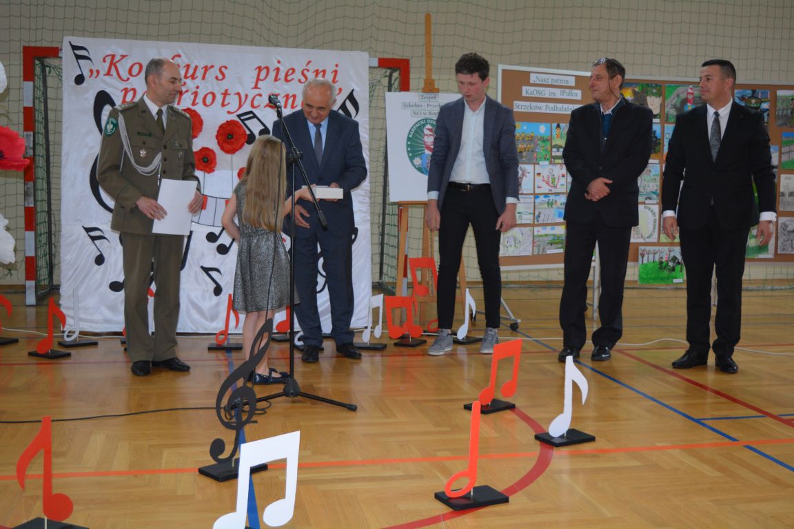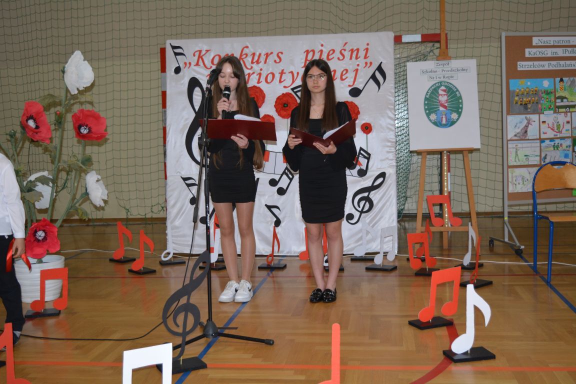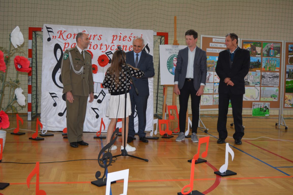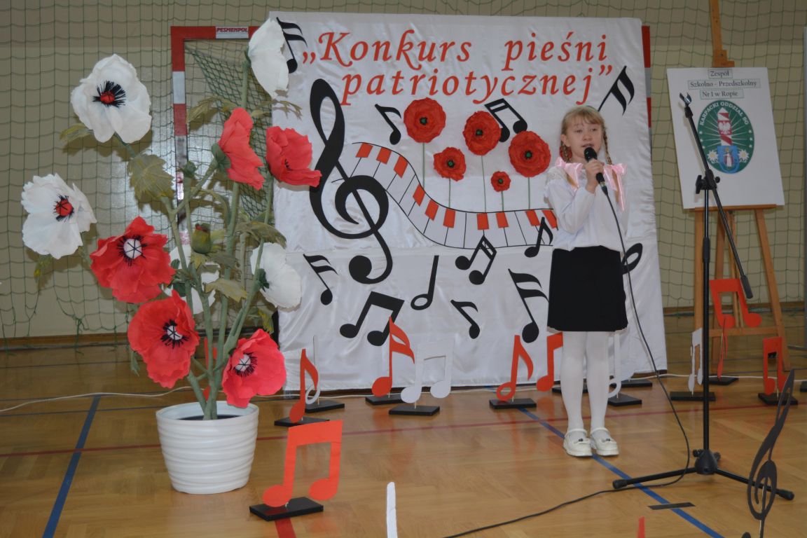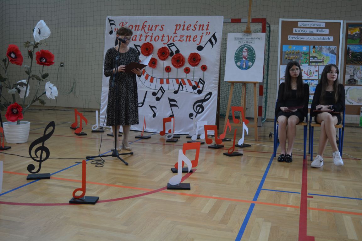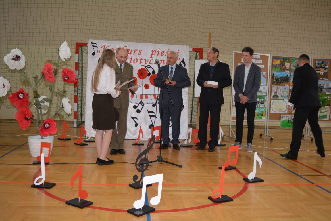 Kolejnym punktem obchodów „Dnia Patrona” był „Konkurs pieśni patriotycznej”. Do udziału w zmaganiach konkursowych zgłosiło się aż 21 uczniów z klas I -VII. Naszych gości zaprosiliśmy do komisji oceniającej występy młodych artystów. Warto pamiętać, że dla nowych pokoleń pieśni patriotyczne są nośnikiem pamięci historycznej, ucząc młodych ludzi o bohaterach narodowych, ważnych wydarzeniach historycznych i ideałach, za które walczyli nasi przodkowie. Rodzice i nauczyciele z dumą obserwowali, jak ich pociechy i wychowankowie prezentowali swoje umiejętności wokalne, a po każdym występie rozbrzmiewają gromkie brawa. Występy te były prawdziwym świętem, które na długo pozostaje w pamięci zarówno dzieci, jak i ich bliskich.