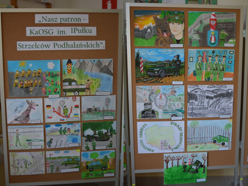 Wystawa prac uświetniła „Dzień Patrona”, a zaproszony na to święto przedstawiciel KaOSG podpułkownik Kazimierz Jarosz wraz z pozostałymi gośćmi wręczył nagrody młodym twórcom za pięknie zilustrowane codzienne działania funkcjonariuszy Straży Granicznej, które zapewniają bezpieczeństwo nam i strzegą granic naszego kraju.