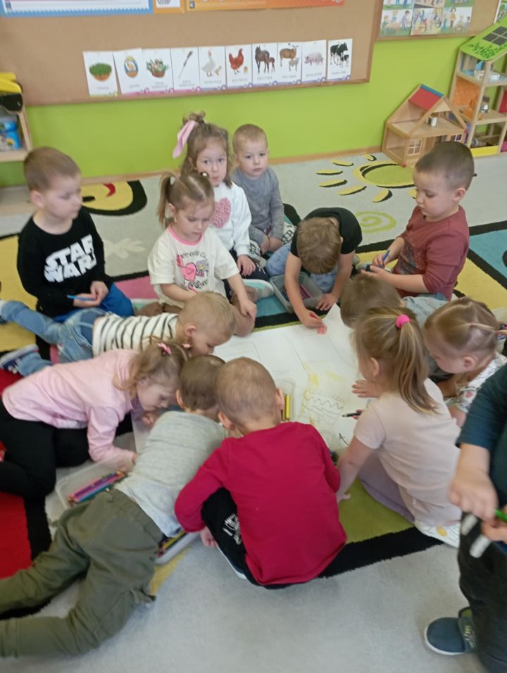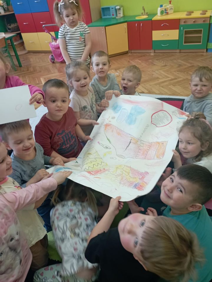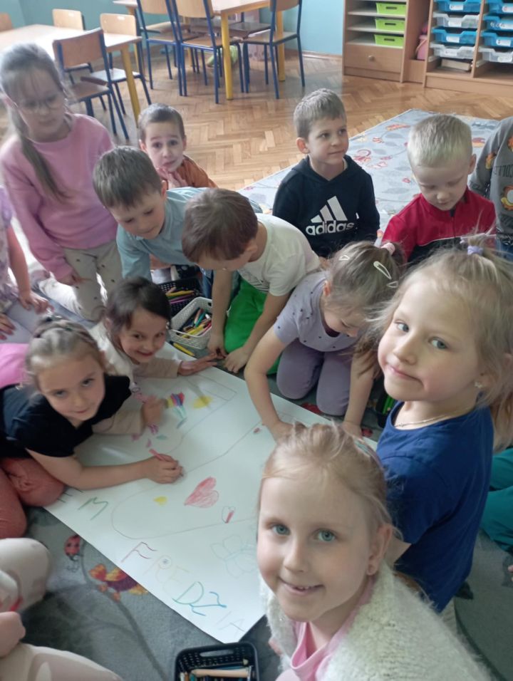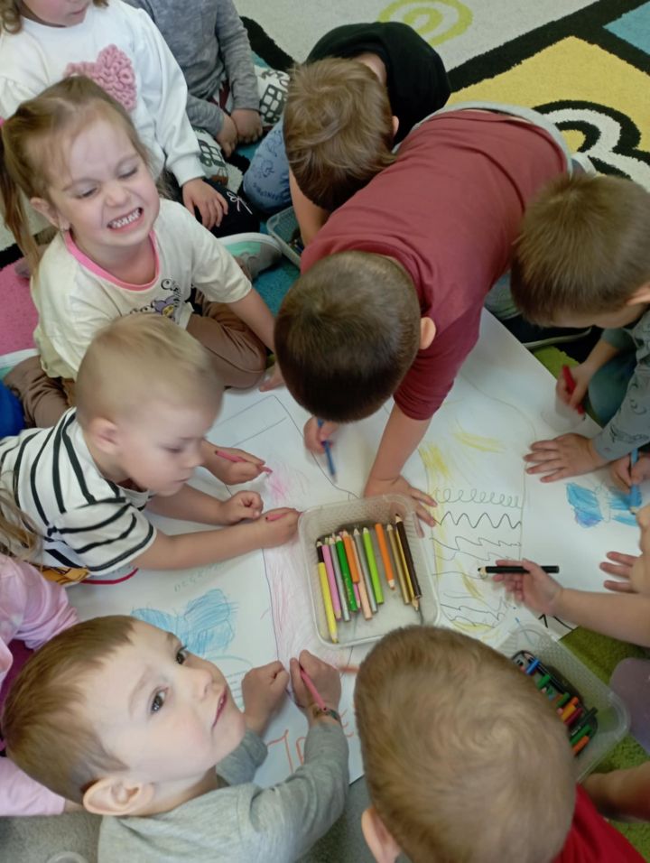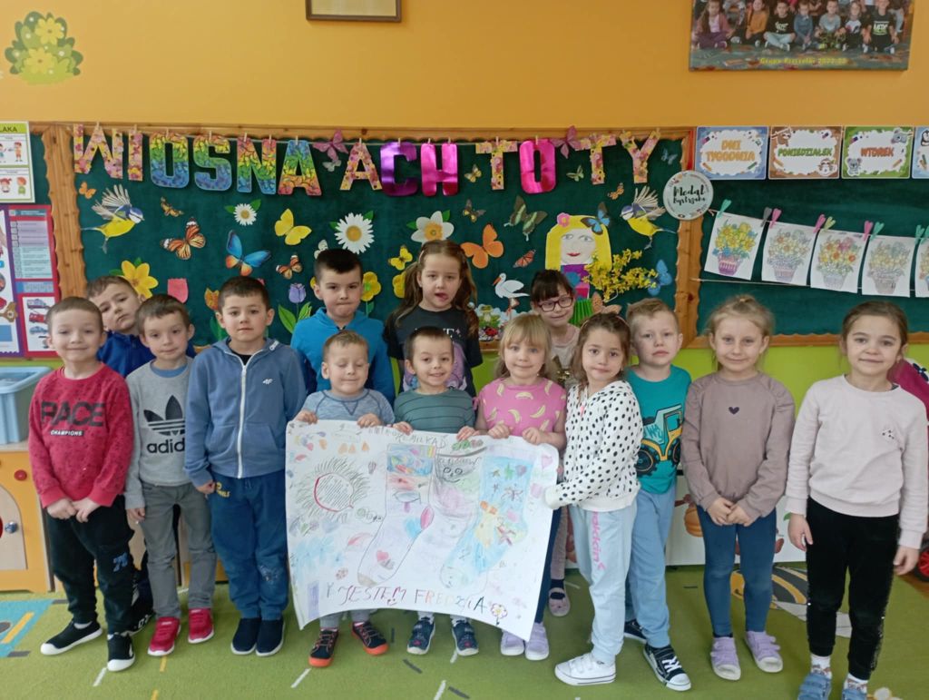 W dzień "kolorowej skarpetki" i dzień "niebieskiego motyla" przedszkolaki wspólnie wykonały piękny kolorowy plakat symbolizujący Dzień świadomości autyzmu i Zespołu Downa. Wysłuchały również historię o zagubionej skarpecie Fredzi.