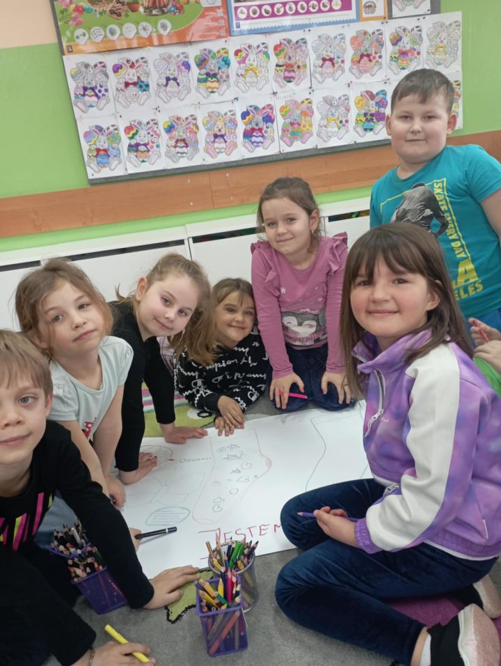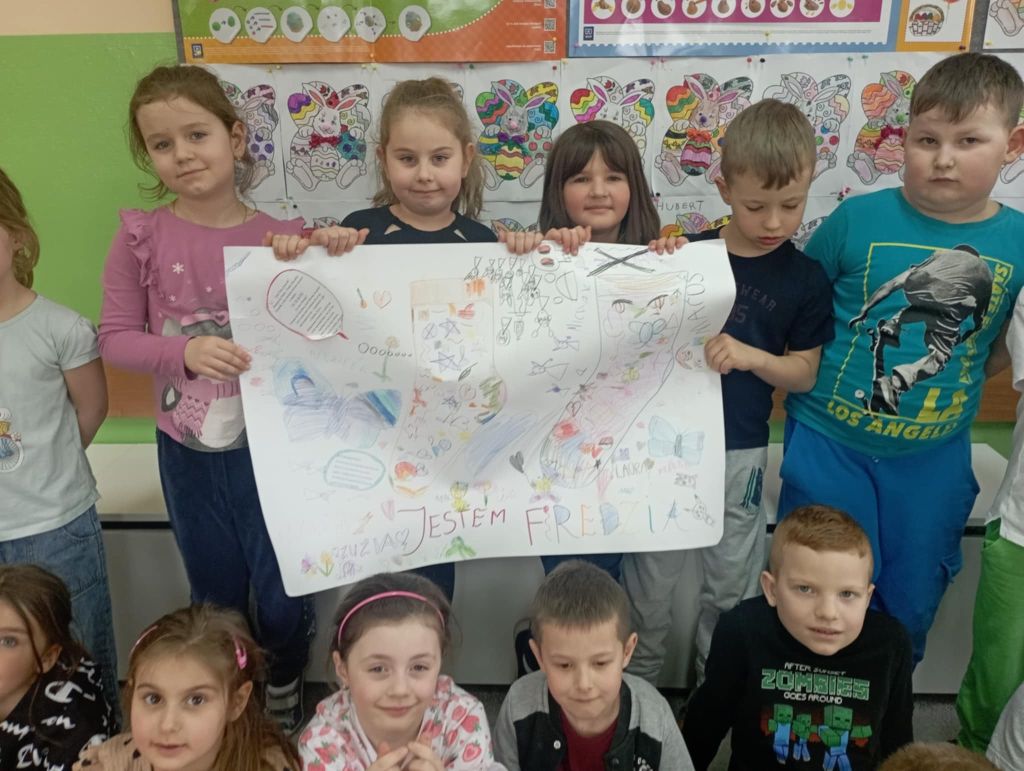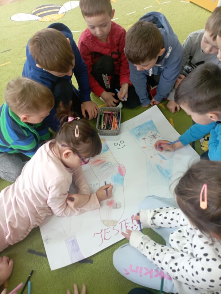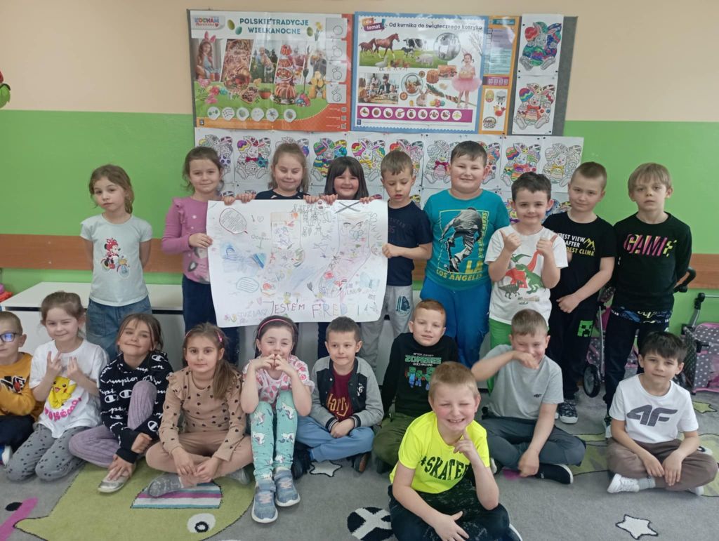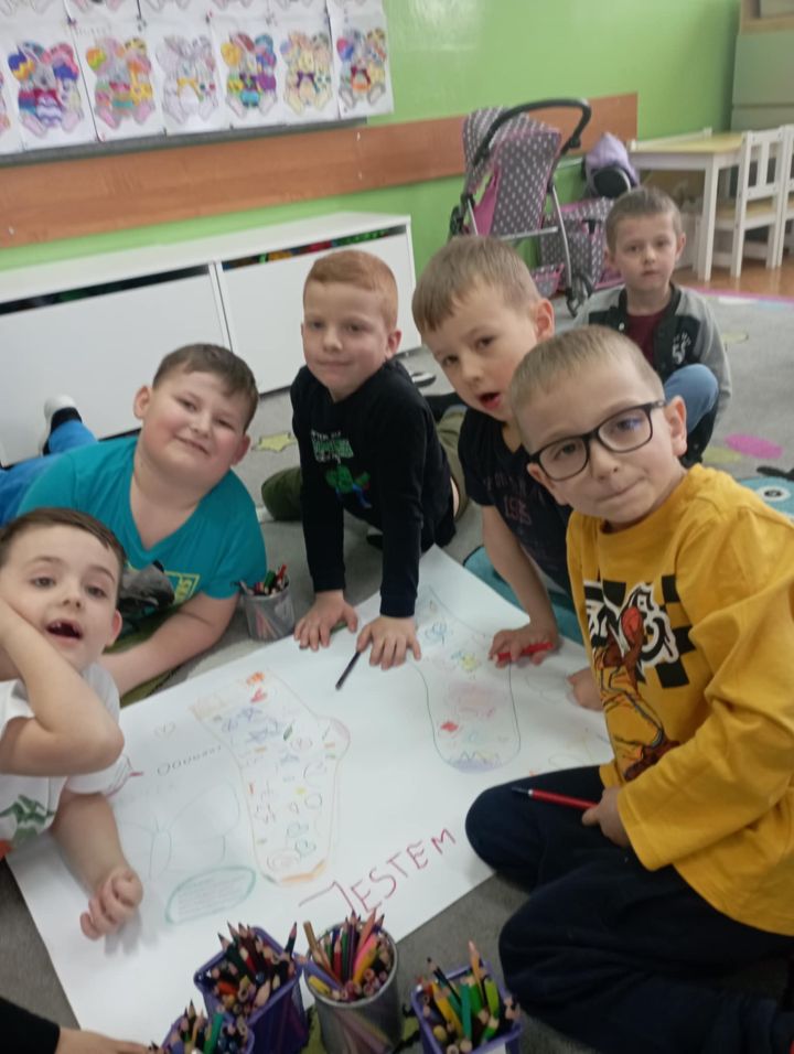 W dzień "kolorowej skarpetki" i dzień "niebieskiego motyla" przedszkolaki wspólnie wykonały piękny kolorowy plakat symbolizujący Dzień świadomości autyzmu i Zespołu Downa. Wysłuchały również historię o zagubionej skarpecie Fredzi.