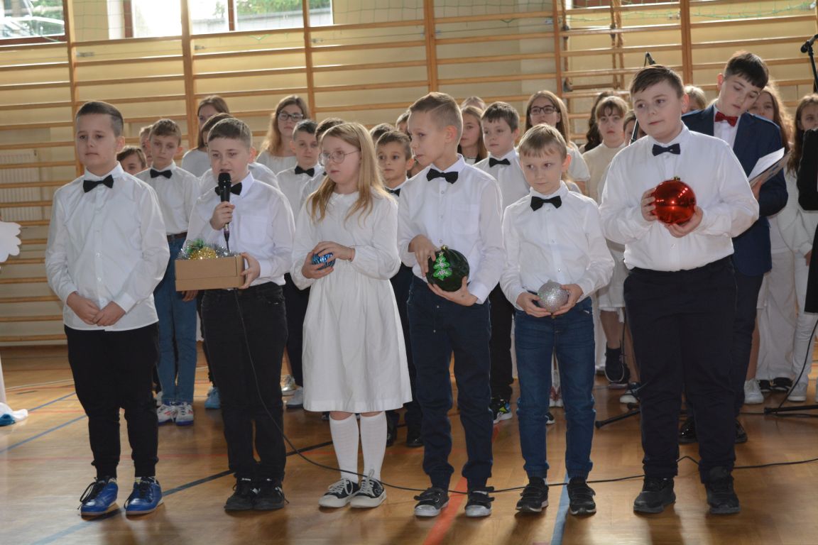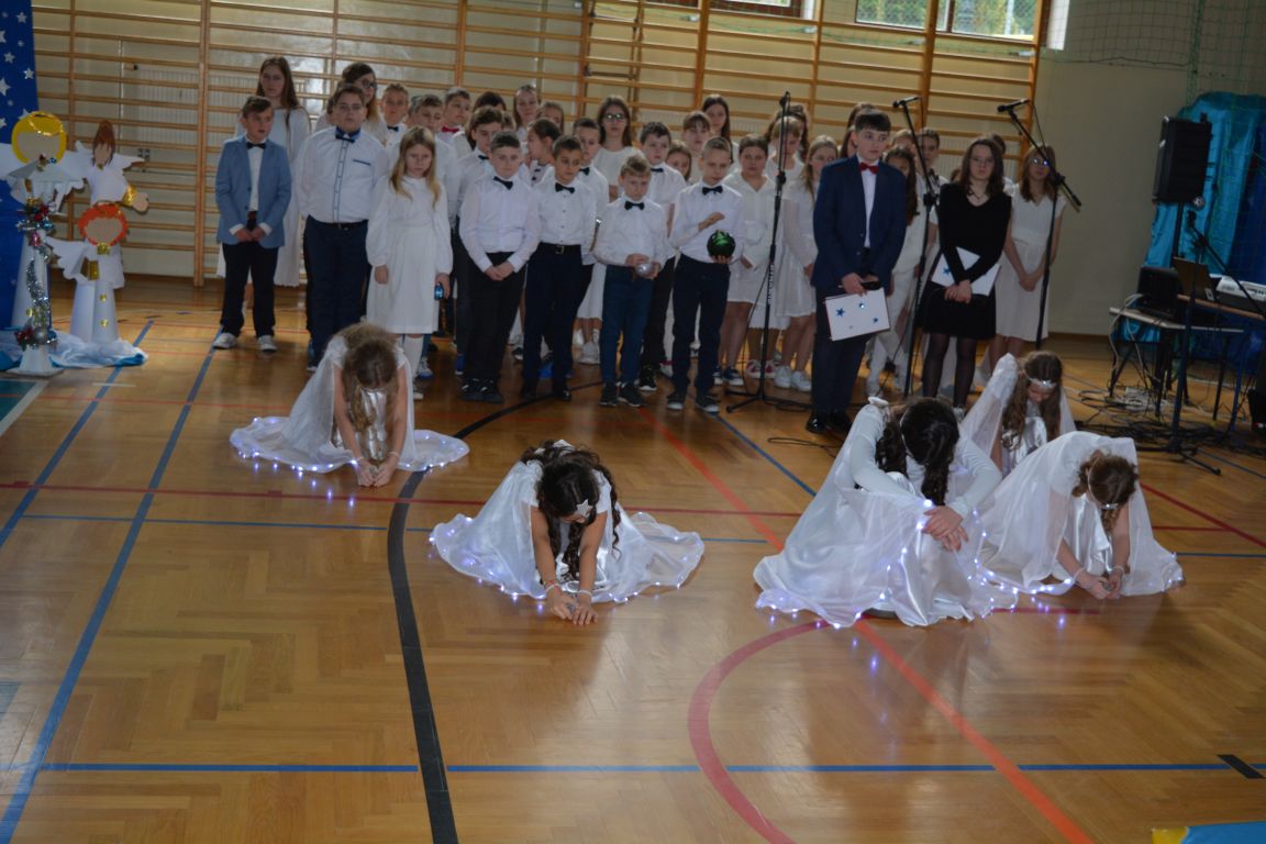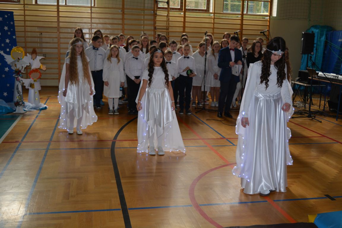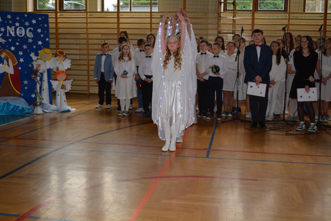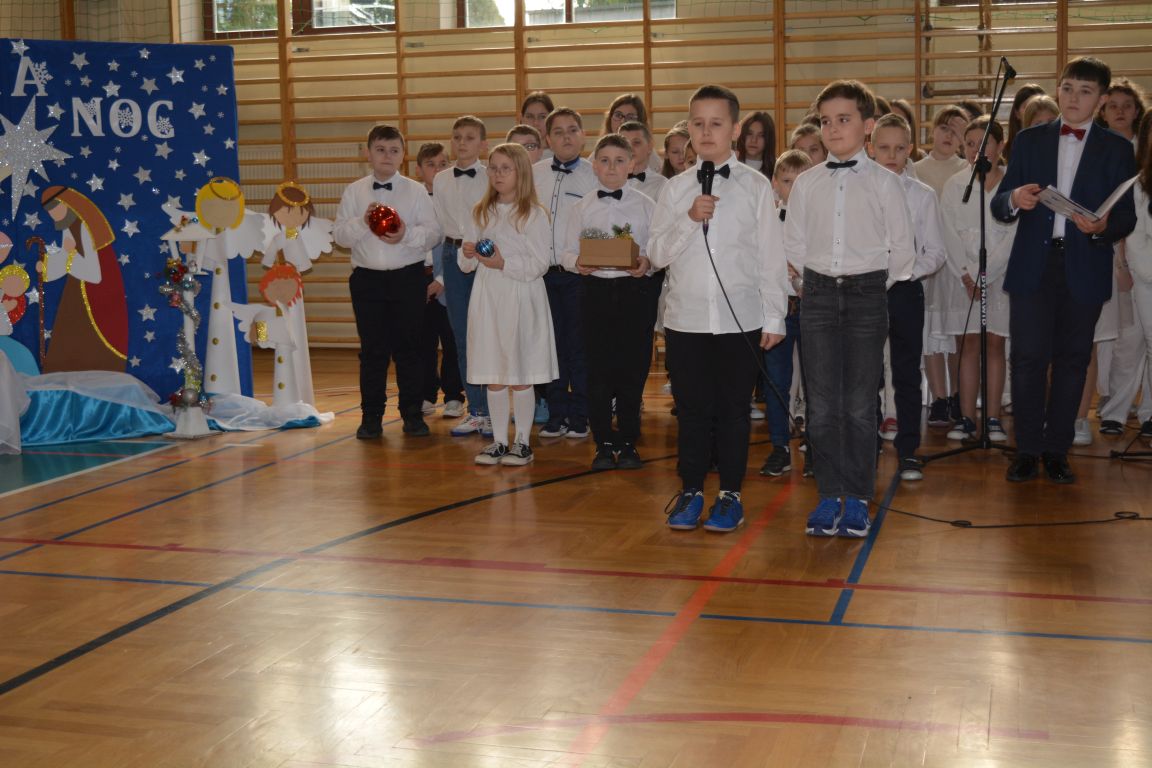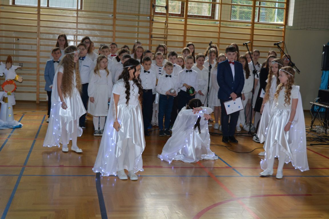 Czas Bożego Narodzenia to okres szczególny, czas magiczny. Obdarzamy się wzajemną życzliwością, łamiemy się opłatkiem, składamy życzenia. W tym czasie zapominamy o wszystkich sporach, a poddajemy się magii świąt, o czym w uroczystym, świątecznym  przedstawieniu  przypomnieli nam uczniowie klasy 4a i 6b oraz chór szkolny „Amadeus”. W  patorałkowych rytmach, w tańcu aniołów oraz w przekazanym słowie ukazali to, co w świętach jest najważniejsze. W uroczystości uczestniczyli rodzice, nauczyciele, emeryci, pracownicy administracyjni oraz zaproszeni goście w osobach pana Wójta Karola Górskiego, przewodniczącego Rady Gminy Bogdana Łukaszyka, skarbnika gminy pani Renaty Lisowicz oraz dyrektor CUO pani Anny Łukaszyk. Program artystyczny został przygotowany przez panią Dorotę Wierzchanowską oraz Monikę Pękalę. Dekoracje przygotowały: pani Lucyna Woch, Barbara Malisz oraz Sylwia Wrońska, a o oprawę muzyczną zadbał pan Mirosław Kawa. Przedstawienie dostarczyło wszystkim uczestnikom wielu wrażeń i wprowadziło w niezwykłą atmosferę świąt. Wszystkim uczniom, rodzicom, nauczycielom oraz pracownikom szkoły składamy najserdeczniejsze życzenia. Wesołych Świąt Bożego Narodzenia oraz szczęśliwego Nowego Roku 2025!