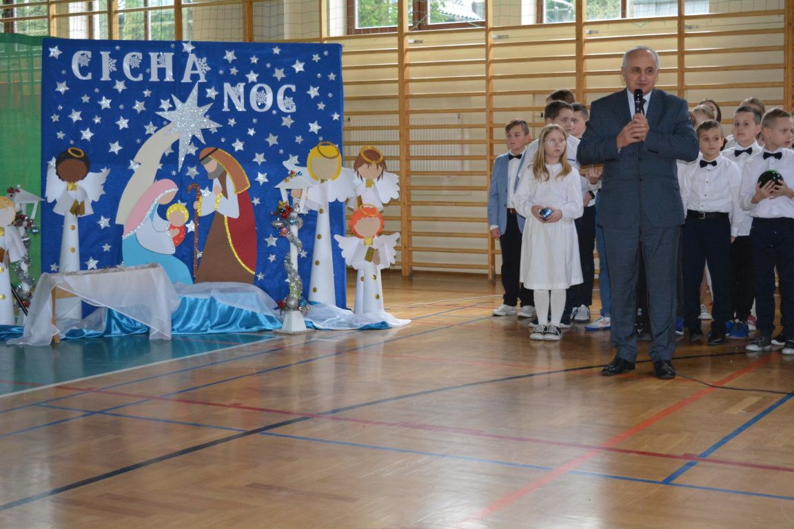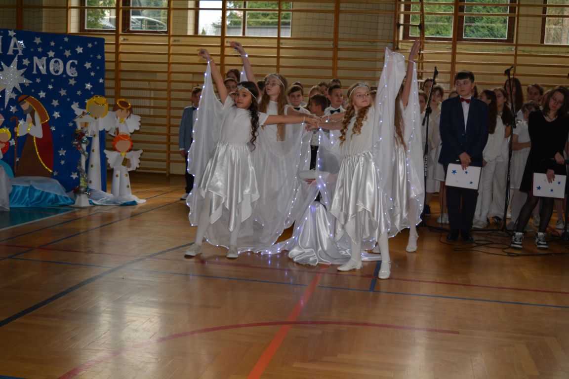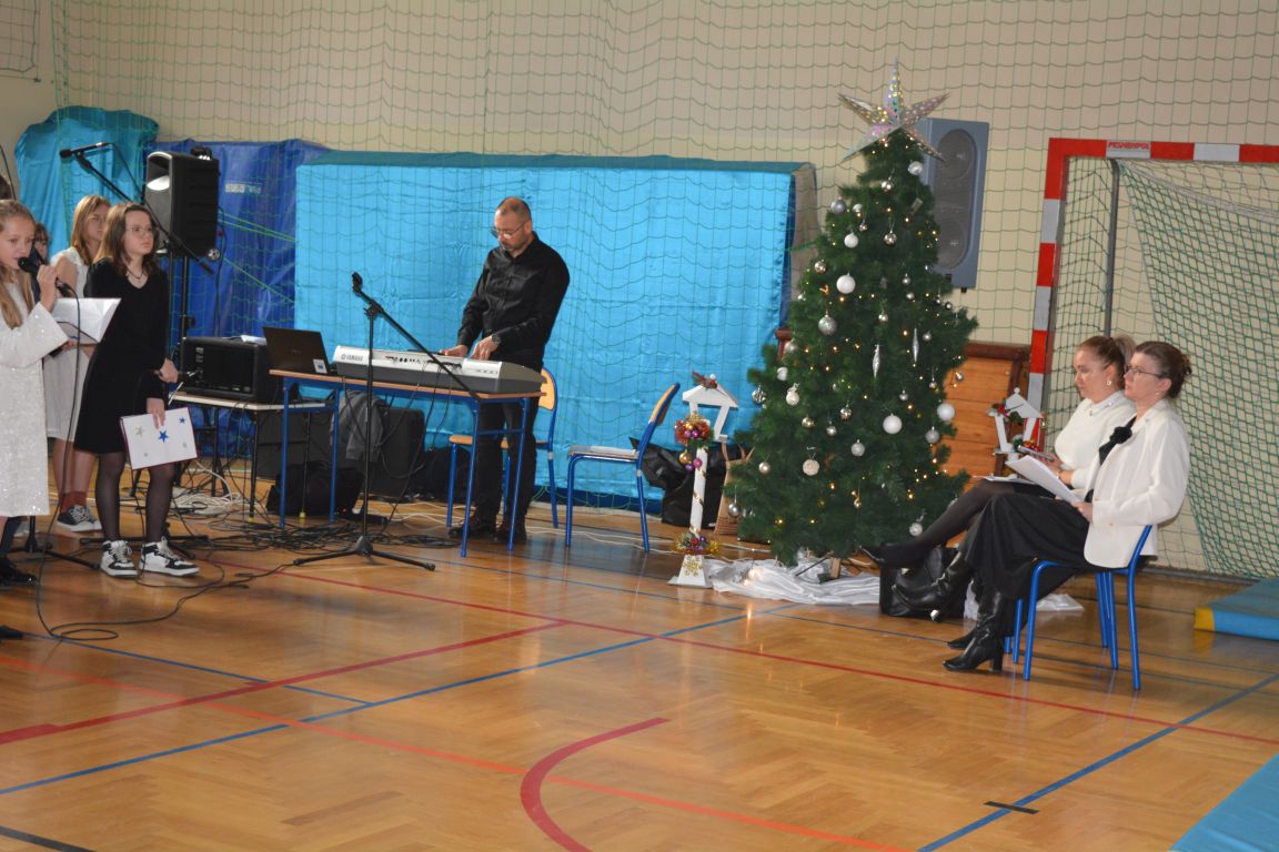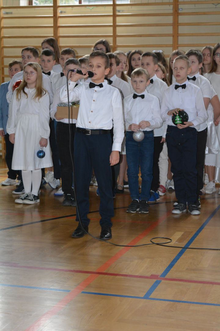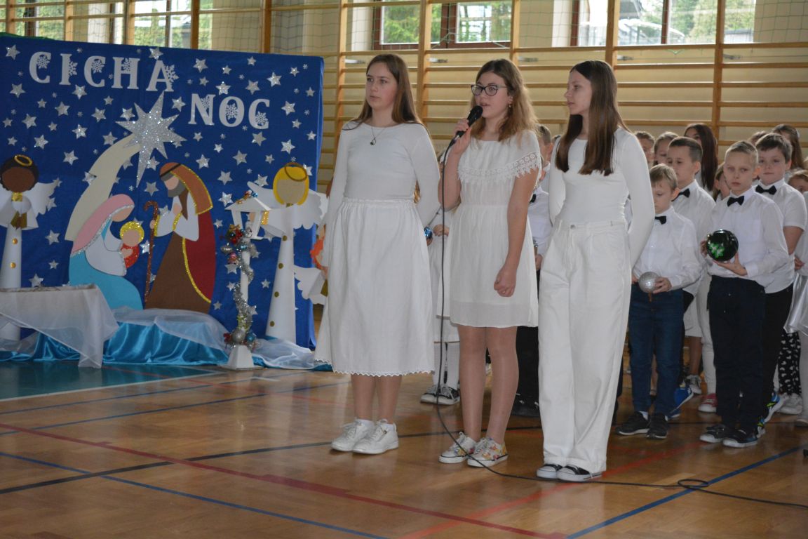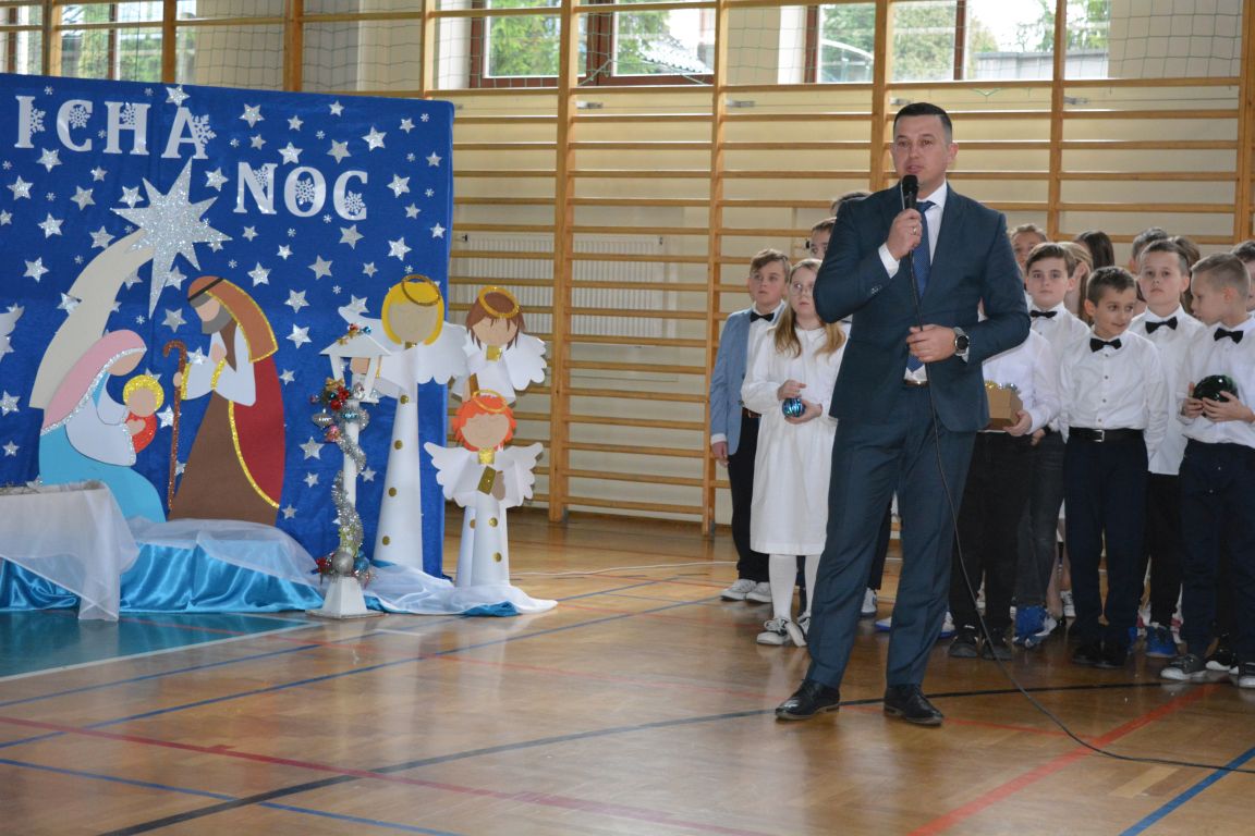Czas Bożego Narodzenia to okres szczególny, czas magiczny. Obdarzamy się wzajemną życzliwością, łamiemy się opłatkiem, składamy życzenia. W tym czasie zapominamy o wszystkich sporach, a poddajemy się magii świąt, o czym w uroczystym, świątecznym  przedstawieniu  przypomnieli nam uczniowie klasy 4a i 6b oraz chór szkolny „Amadeus”. W  patorałkowych rytmach, w tańcu aniołów oraz w przekazanym słowie ukazali to, co w świętach jest najważniejsze. W uroczystości uczestniczyli rodzice, nauczyciele, emeryci, pracownicy administracyjni oraz zaproszeni goście w osobach pana Wójta Karola Górskiego, przewodniczącego Rady Gminy Bogdana Łukaszyka, skarbnika gminy pani Renaty Lisowicz oraz dyrektor CUO pani Anny Łukaszyk. Program artystyczny został przygotowany przez panią Dorotę Wierzchanowską oraz Monikę Pękalę. Dekoracje przygotowały: pani Lucyna Woch, Barbara Malisz oraz Sylwia Wrońska, a o oprawę muzyczną zadbał pan Mirosław Kawa. Przedstawienie dostarczyło wszystkim uczestnikom wielu wrażeń i wprowadziło w niezwykłą atmosferę świąt. Wszystkim uczniom, rodzicom, nauczycielom oraz pracownikom szkoły składamy najserdeczniejsze życzenia. Wesołych Świąt Bożego Narodzenia oraz szczęśliwego Nowego Roku 2025!