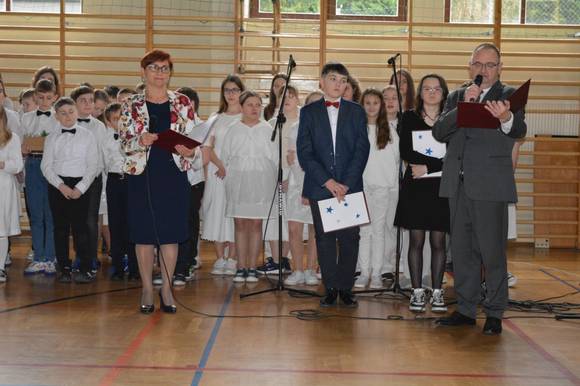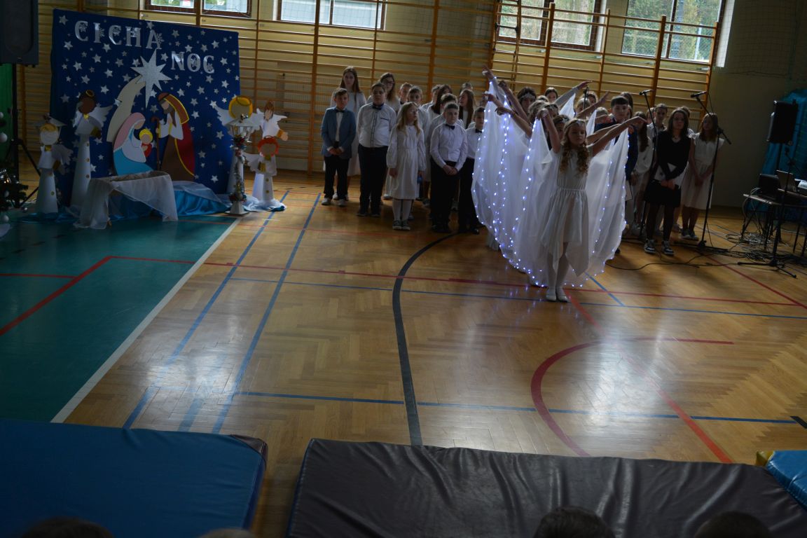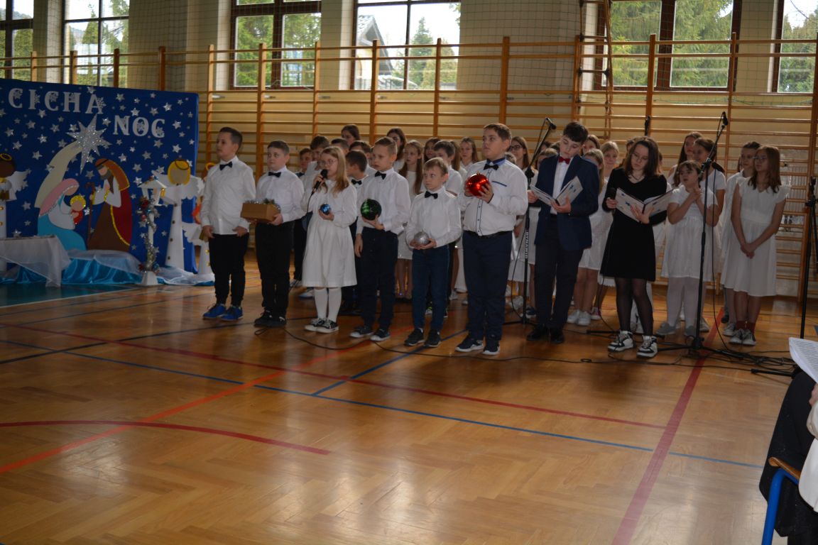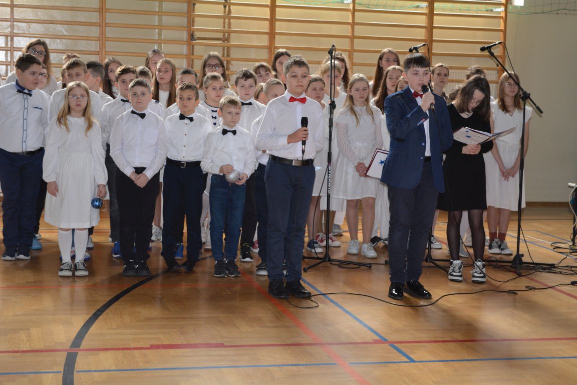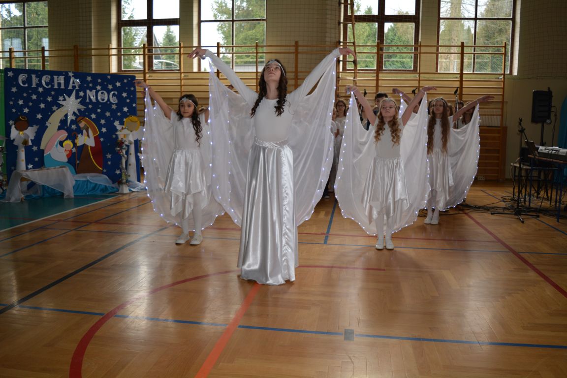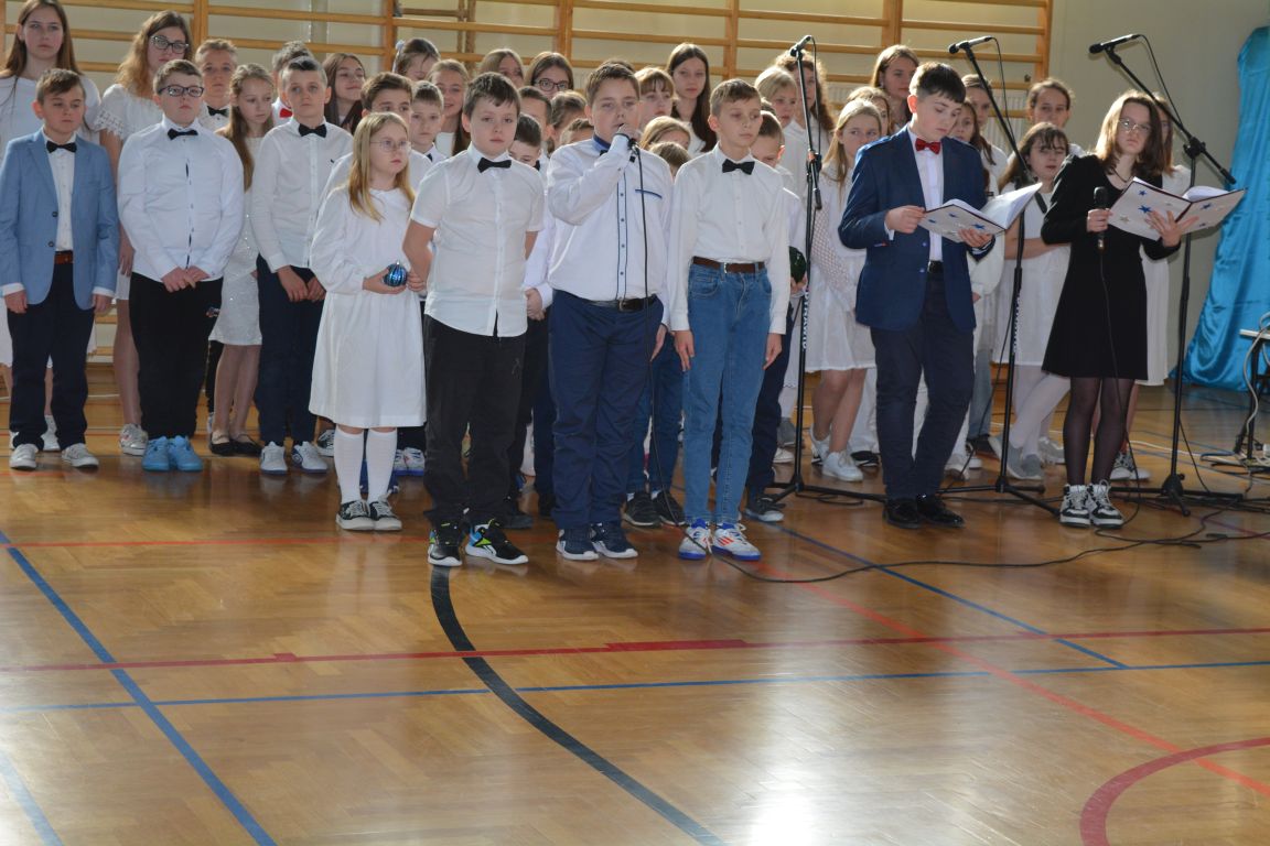 Czas Bożego Narodzenia to okres szczególny, czas magiczny. Obdarzamy się wzajemną życzliwością, łamiemy się opłatkiem, składamy życzenia. W tym czasie zapominamy o wszystkich sporach, a poddajemy się magii świąt, o czym w uroczystym, świątecznym  przedstawieniu  przypomnieli nam uczniowie klasy 4a i 6b oraz chór szkolny „Amadeus”. W  patorałkowych rytmach, w tańcu aniołów oraz w przekazanym słowie ukazali to, co w świętach jest najważniejsze. W uroczystości uczestniczyli rodzice, nauczyciele, emeryci, pracownicy administracyjni oraz zaproszeni goście w osobach pana Wójta Karola Górskiego, przewodniczącego Rady Gminy Bogdana Łukaszyka, skarbnika gminy pani Renaty Lisowicz oraz dyrektor CUO pani Anny Łukaszyk. Program artystyczny został przygotowany przez panią Dorotę Wierzchanowską oraz Monikę Pękalę. Dekoracje przygotowały: pani Lucyna Woch, Barbara Malisz oraz Sylwia Wrońska, a o oprawę muzyczną zadbał pan Mirosław Kawa. Przedstawienie dostarczyło wszystkim uczestnikom wielu wrażeń i wprowadziło w niezwykłą atmosferę świąt. Wszystkim uczniom, rodzicom, nauczycielom oraz pracownikom szkoły składamy najserdeczniejsze życzenia. Wesołych Świąt Bożego Narodzenia oraz szczęśliwego Nowego Roku 2025!