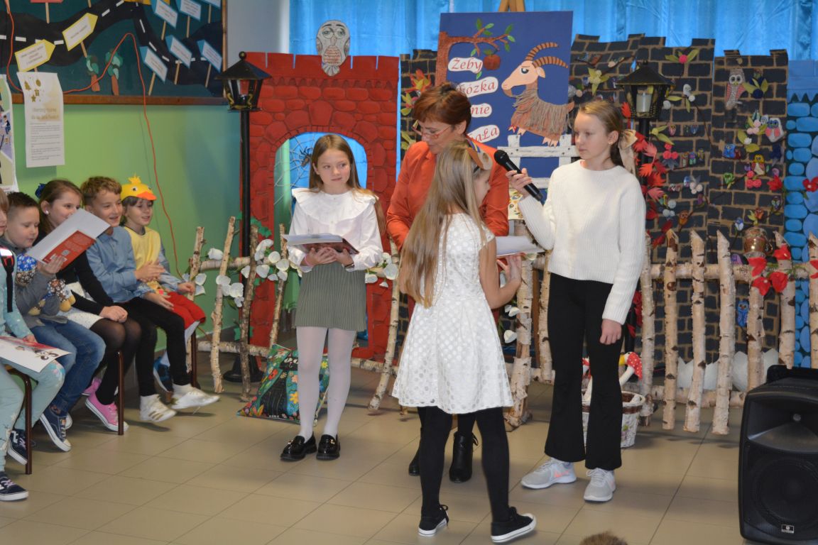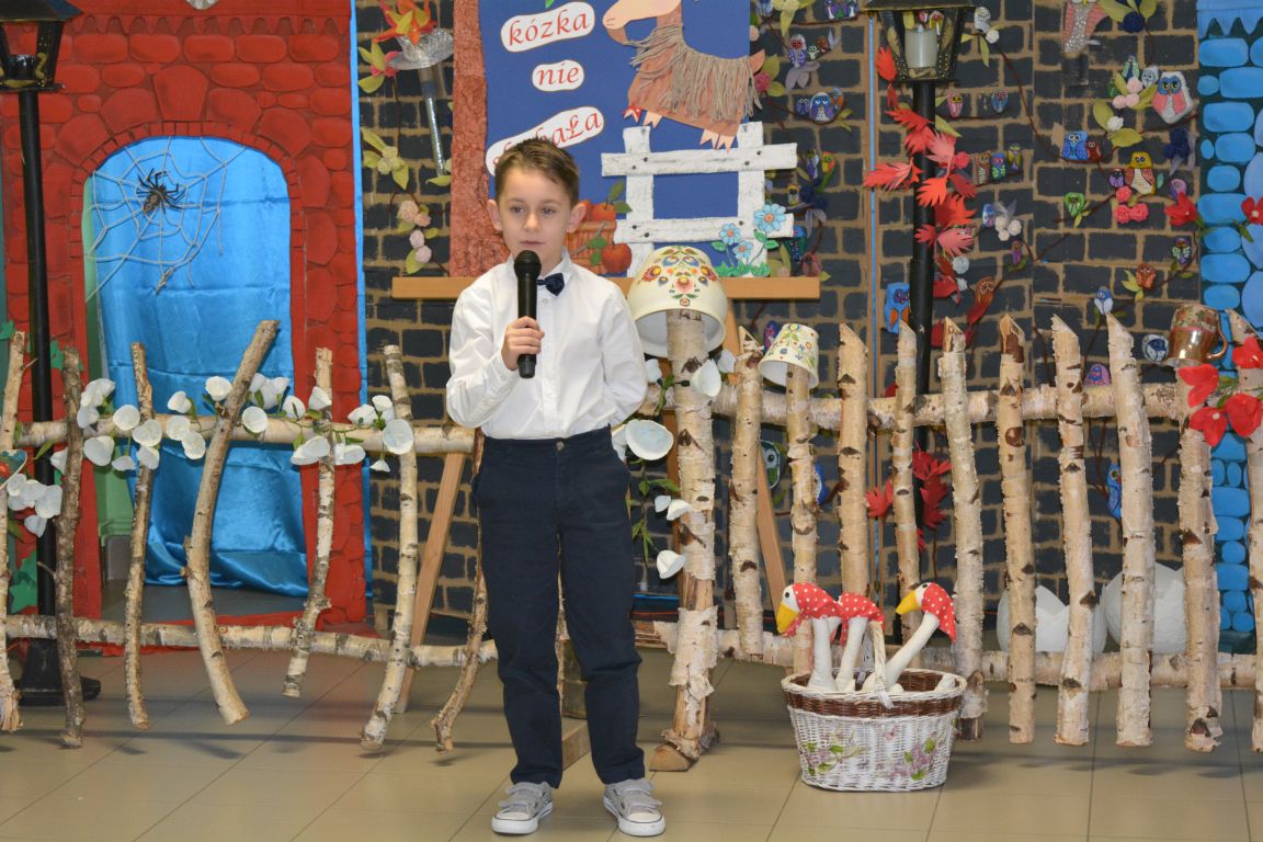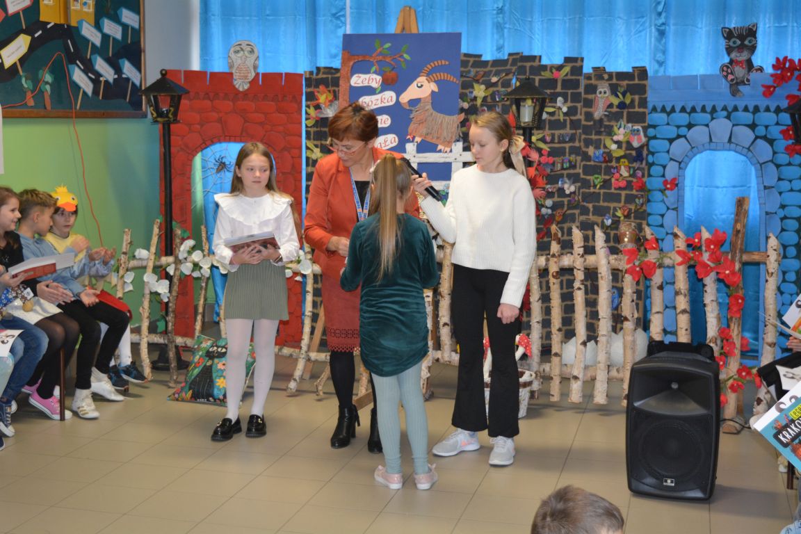 12 i 13 grudnia 2024 r. uczniowie klas I - IV wzięli udział w niezwykłej recytatorskiej rywalizacji. Przygotowany został dla nich konkurs pt. „Żeby kózka nie skakała..” Nawiązując do tematu konkursu, bohaterami prezentowanych przez uczniów wierszy były zwierzęta zarówno egzotyczne, jak i te zamieszkujące nasze podwórka i drzemiące w domowym zaciszu. Poziom konkursu okazał się bardzo wysoki, ale wszyscy reprezentanci poradzili sobie z tym wyzwaniem wspaniale. Komisja oceniająca występy miała przed sobą bardzo trudne zadanie. Ostatecznie przyznano nagrody i wyróżnienia następującym uczniom: