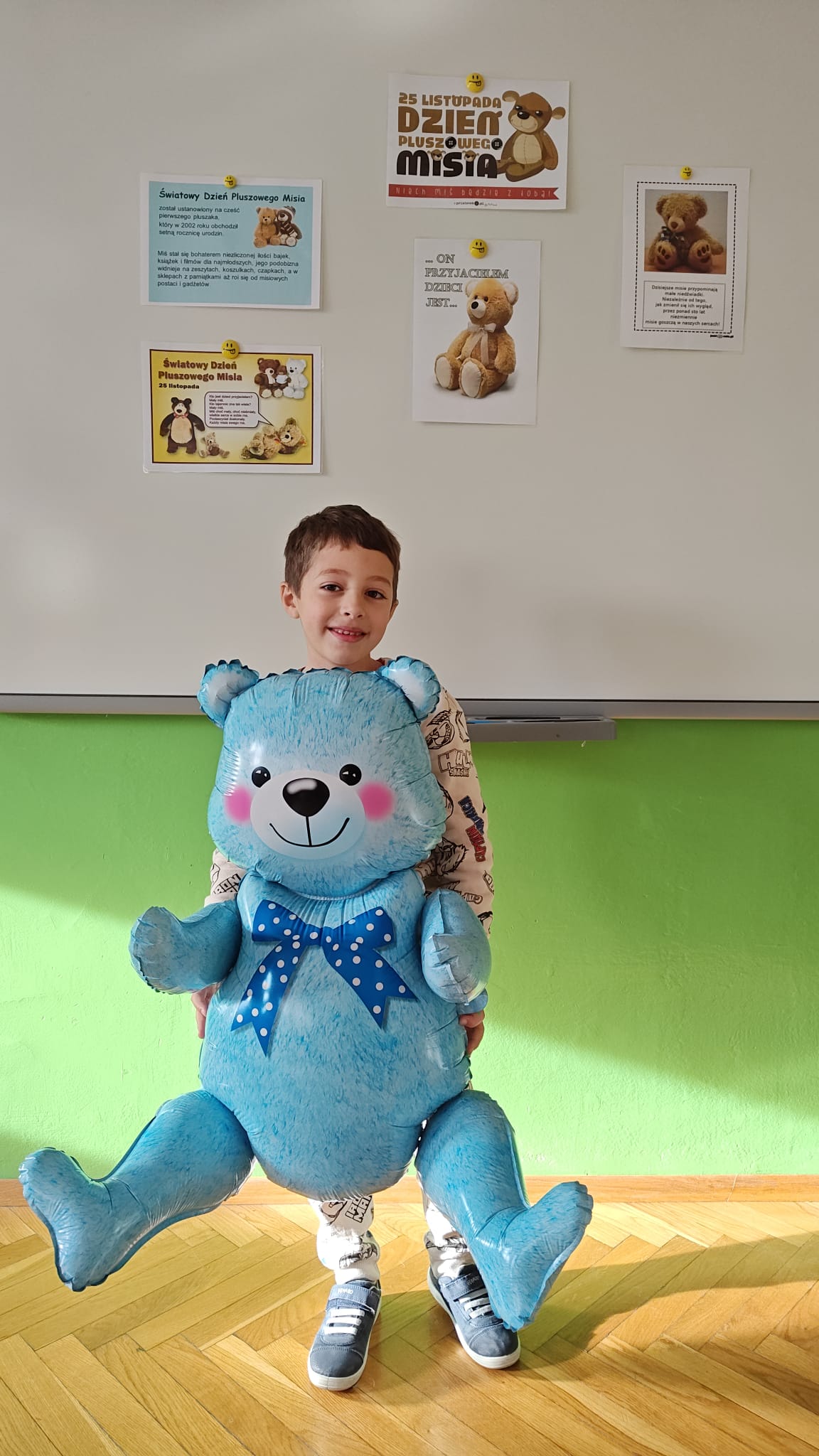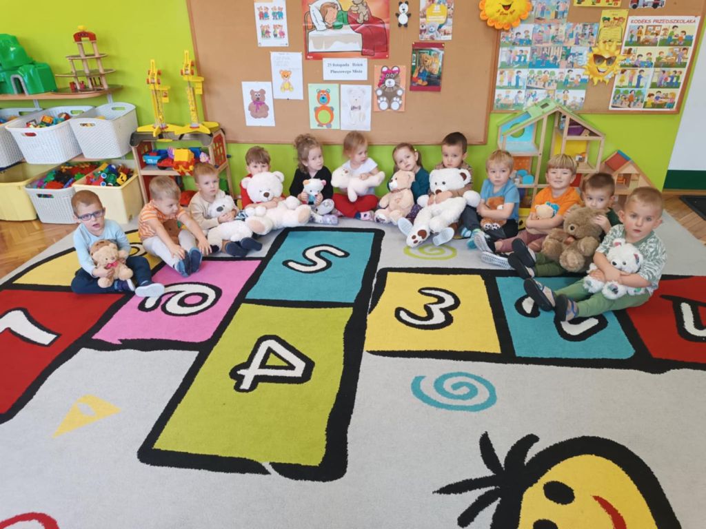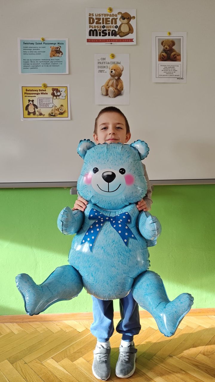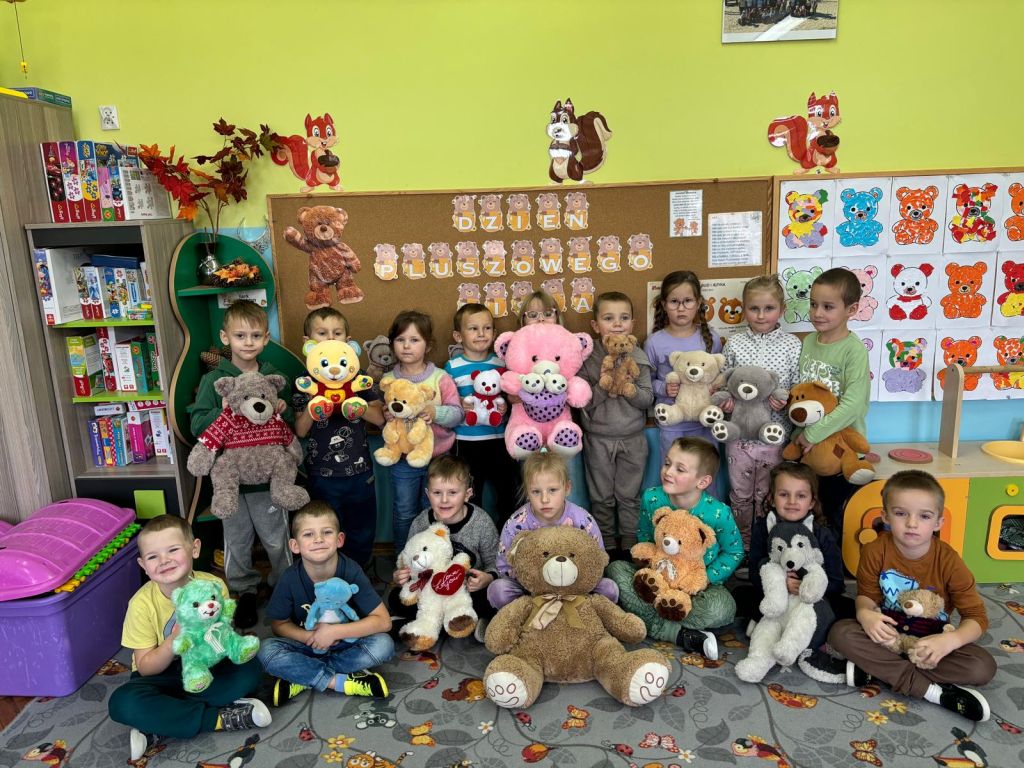 Pluszowy miś to najlepszy przyjaciel każdego dziecka, ukochana maskotka na dobre i złe chwile. Można go przytulić, a nawet powiedzieć mu o czymś bardzo ważnym. Z okazji Światowego Dnia Misia Pluszowego każde dziecko przyszło do przedszkola ze swoim ,,milutkim przyjacielem". Można było zobaczyć misie małe, średnie, duże, brązowe, różowe, białe itd. Wszystkie były śliczne i wyjątkowe. W tym wesołym dniu przedszkolaki czekało wiele atrakcji. Zostały zaproszone do wspólnej zabawy ze swoimi misiami, poznały również historię ich święta i bawiły się do znanych misiowych przebojów. Dzieci również wykonały misiowe prace plastyczne. Ten wyjątkowy dzień był pełen uśmiechu i świetnej zabawy. Dzieci były szczęśliwe, iż mogły spędzić tyle czasu ze swoimi pluszowymi ulubieńcami oraz pokazać ich swoim koleżankom i kolegom z grupy. Na pamiątkę dzieci otrzymały drobne upominki.