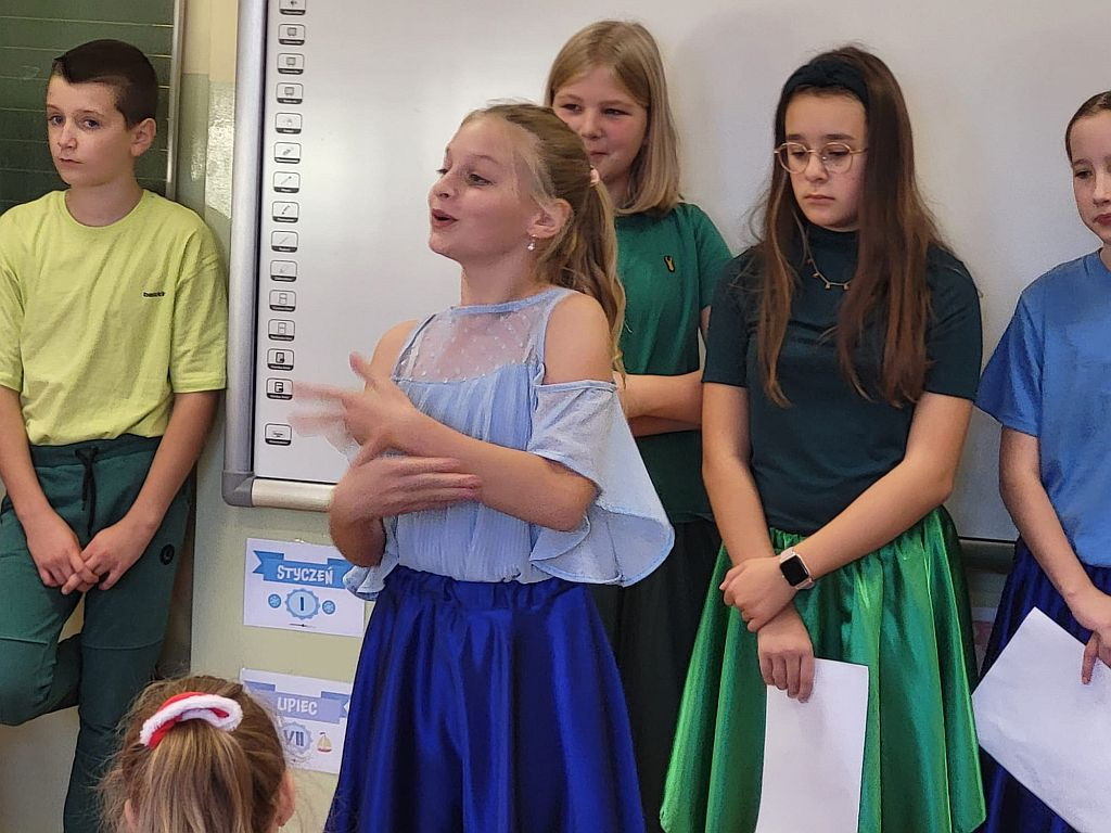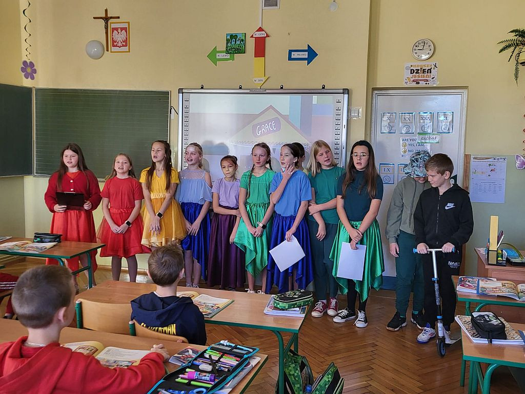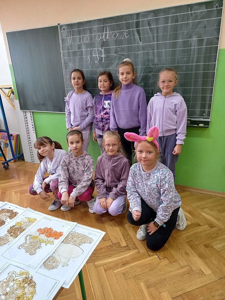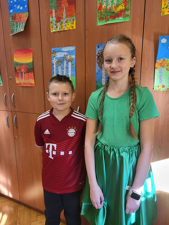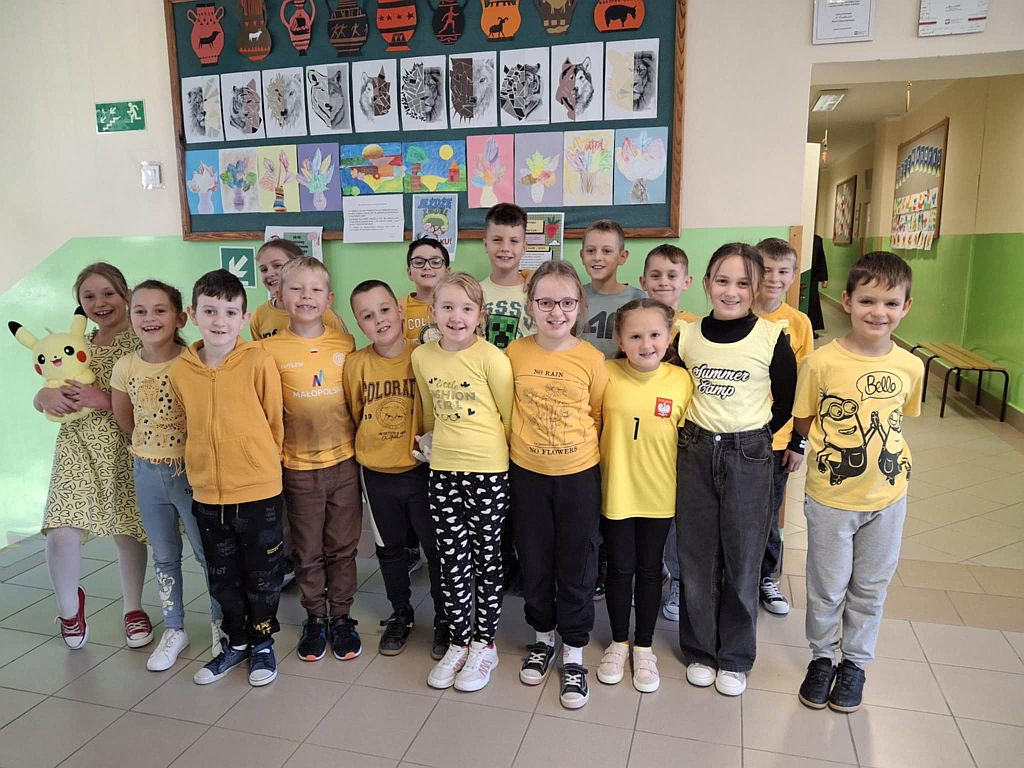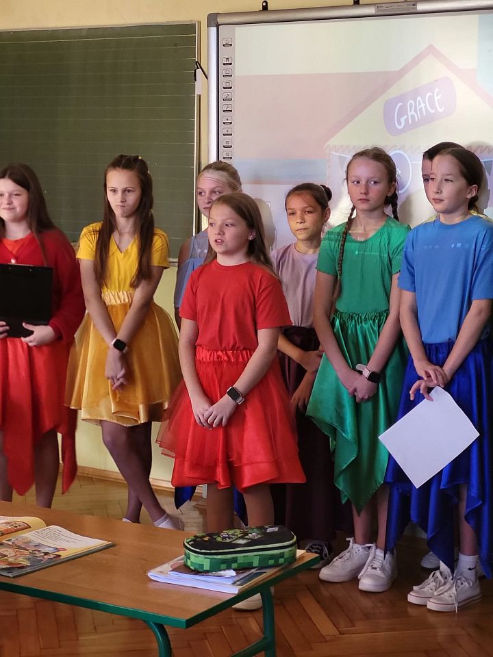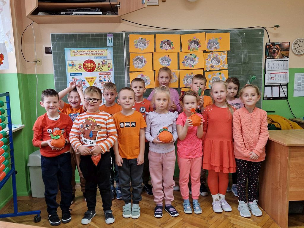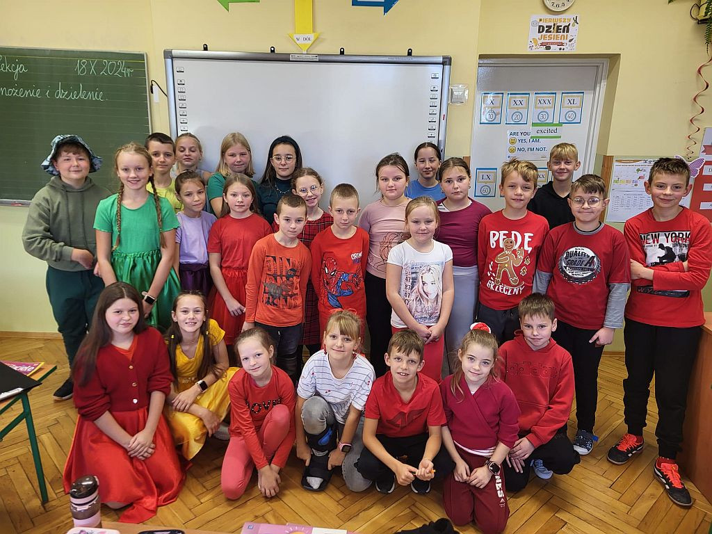 Dnia 18 października 2024 roku uczniowie naszej szkoły obchodzili Światowy Dzień Owoców i Warzyw. Z tej okazji klasa 5b przygotowała mini-teatrzyk dla klas 1 - 4 pt. „W świecie witamin”. Tego samego dnia rozpoczęliśmy też Tydzień Kolorów i Witamin, czyli akcję propagującą bogate w witaminy i potrzebne do prawidłowego rozwoju zdrowe odżywianie. Do zabawy zaproszeni zostali wszyscy uczniowie oraz nauczyciele i pracownicy szkoły. Ich zadaniem było założenie w kolejnych dniach stroju w odpowiednim kolorze. Samorząd Uczniowski przypominał także o spożyciu na drugie śniadanie owoców lub warzyw bogatych w wyznaczoną na dany dzień witaminę.