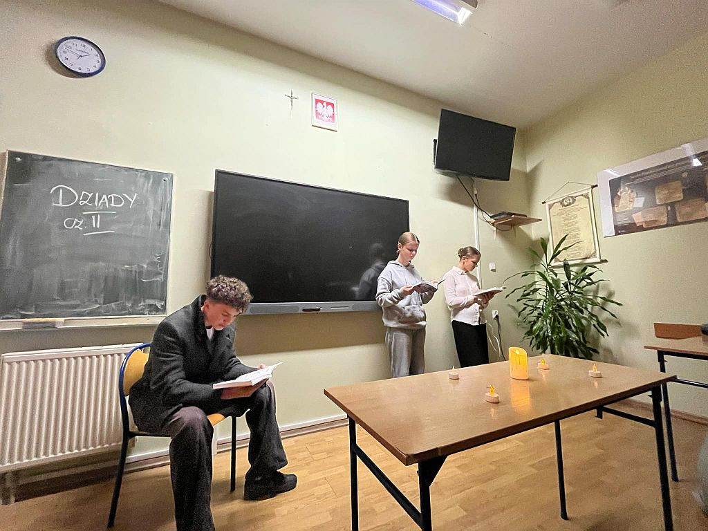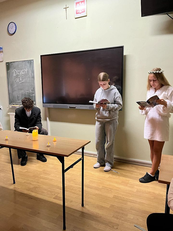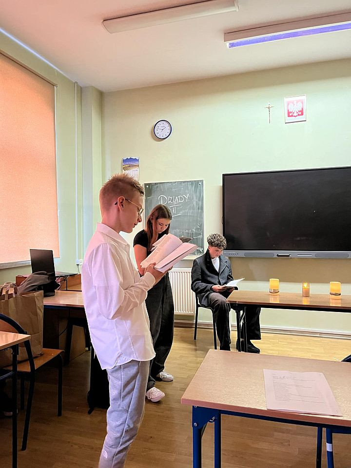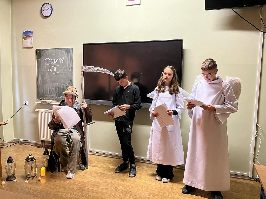 Drukuj Powrót do poprzedniej strony Inscenizacja „Dziadów cz. II” w wykonaniu uczniów z klasy 7B 30.10.2024 16:50 Treść