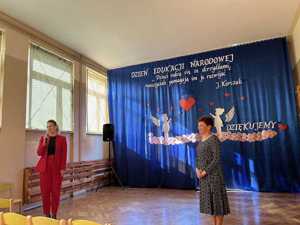 14 października 2024 r. w ZSP nr 1 w Ropie odbyła się uroczysta akademia z okazji Dnia Edukacji Narodowej. Humorystyczną inscenizację teatralną przygotowały dzieci z grupy Biedroneczki i Pszczółki. Młodzi artyści piosenką, słowem i tańcem uświetnili ten wyjątkowy w roku szkolnym dzień. Na zakończenie uroczystości głos zabrali pani dyrektor Anna Maczuga oraz zaproszeni goście, którzy dziękowali wszystkim nauczycielom za zaangażowanie oraz życzyli wielu sił i wytrwałości w tym wyjatkiwym zawodzie.