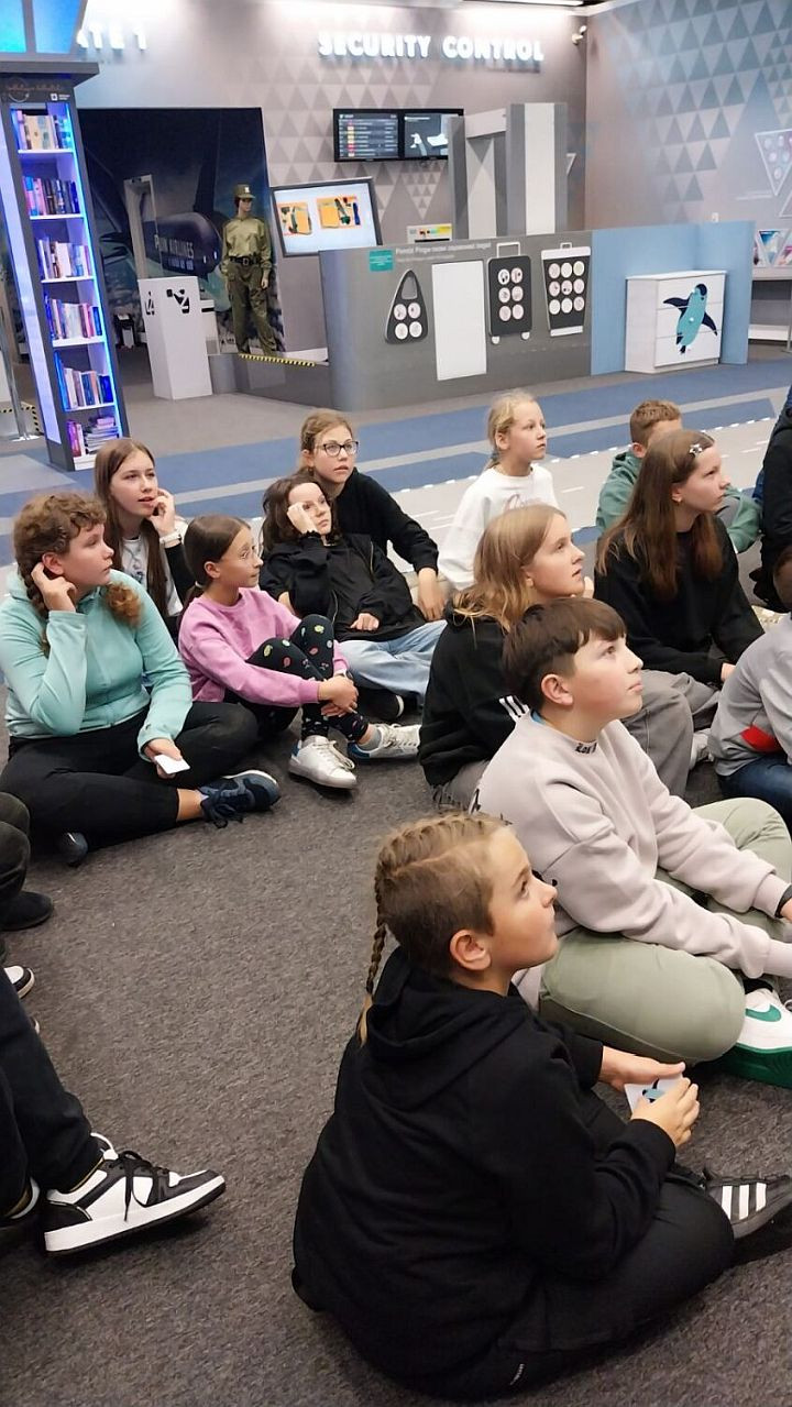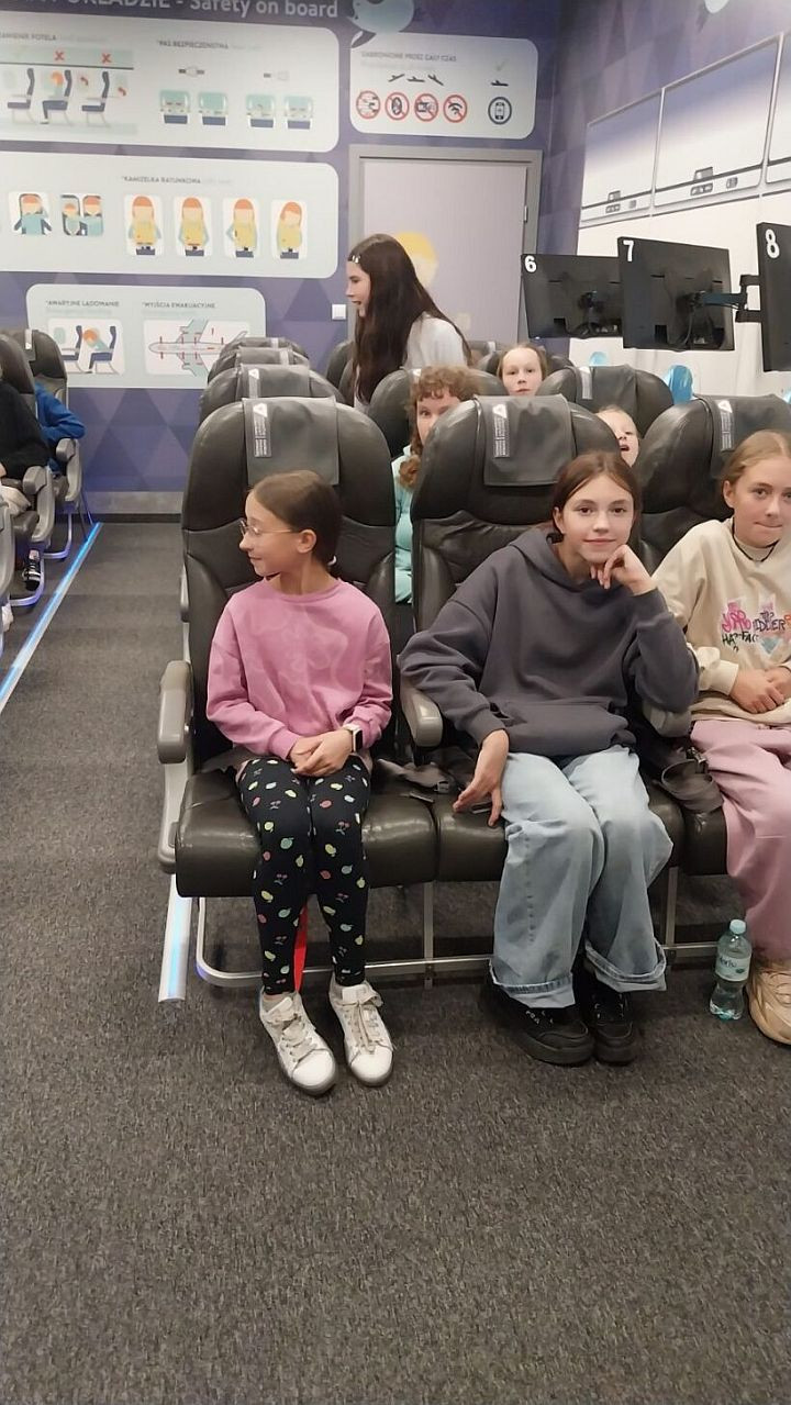 Następnie po krótkiej podróży zawitali na lotnisku w Balicach, gdzie w Centrum Edukacji Lotniczej oprowadzani przez przewodników, zapoznali się z zasadami funkcjonowania lotniska oraz z zakresem obowiązków służb kontroli lotów. Mogli również zobaczyć jak w praktyce wygląda ścieżka odlotowo - przylotowa pasażera tzn. jak pakować bagaż do samolotu oraz jak działają punkty check-in i kontroli bezpieczeństwa. Na koniec usiedli w fotelach z prawdziwego Airbusa A320.