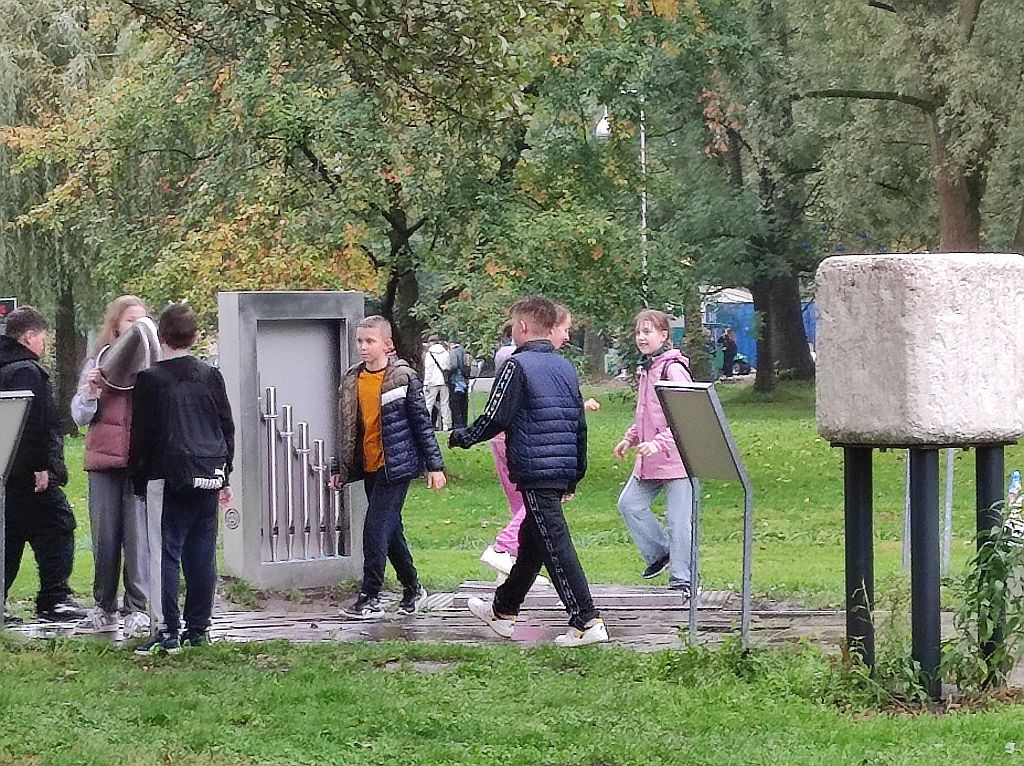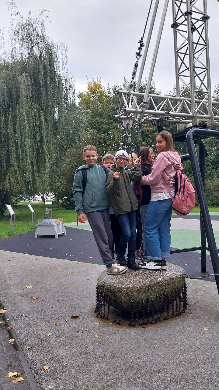 Dnia 9 października 2024 r. uczniowie klas V a i VI b udali się pod opieką nauczycieli na wycieczkę. Pierwszy punkt programu stanowiło zwiedzanie Ogrodu Doświadczeń, w którym urządzenia interaktywne rozmieszczone są w grupach tematycznych obejmujących optykę, hydrostatykę, akustykę i mechanikę. Poprzez zabawę i samodzielne wykonywanie doświadczeń uczniowie mogli wzbogacić swoja wiedzę o otaczającym świecie.