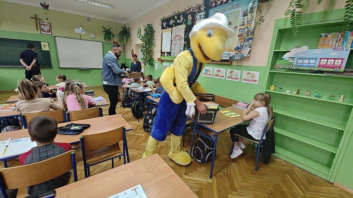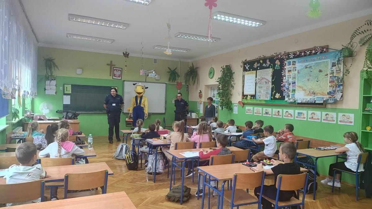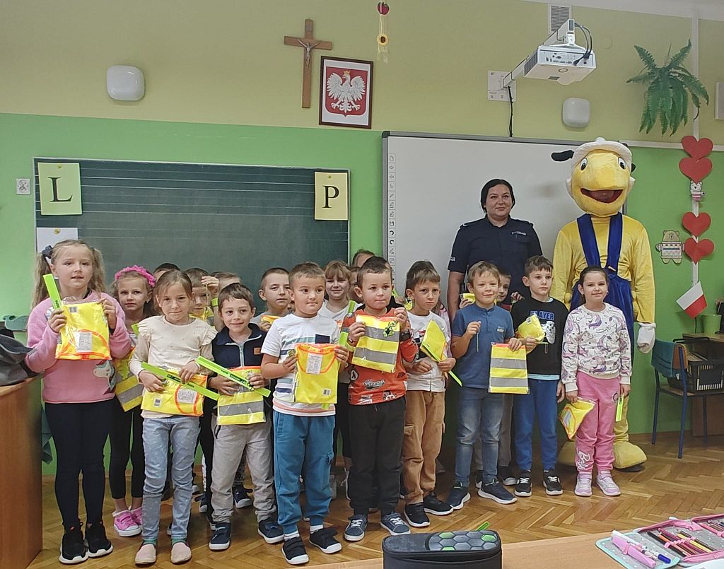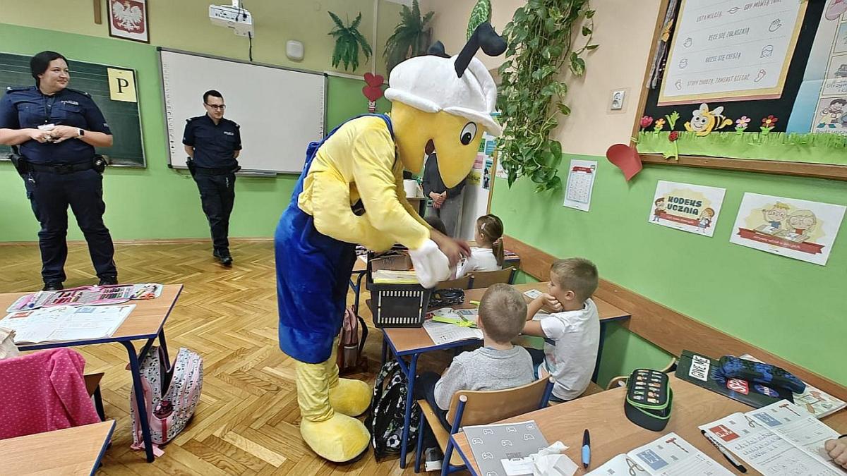 19 września klasy Ia i Ib uczestniczyły w spotkaniu z policjantami i Mrówką. Policjanci przybliżyli najmłodszym zasady bezpiecznego poruszania się po drogach i przypomnieli, jak ważne jest noszenie odblasków. Na koniec uczniowie otrzymali od Mrówki gadżety w formie kamizelki odblaskowej, opaski odblaskowej na rękę i zawieszki odblaskowej w kształcie mrówki. Serdecznie dziękujemy za to miłe spotkanie i upominki, które sprawiły dzieciakom dużo radości.